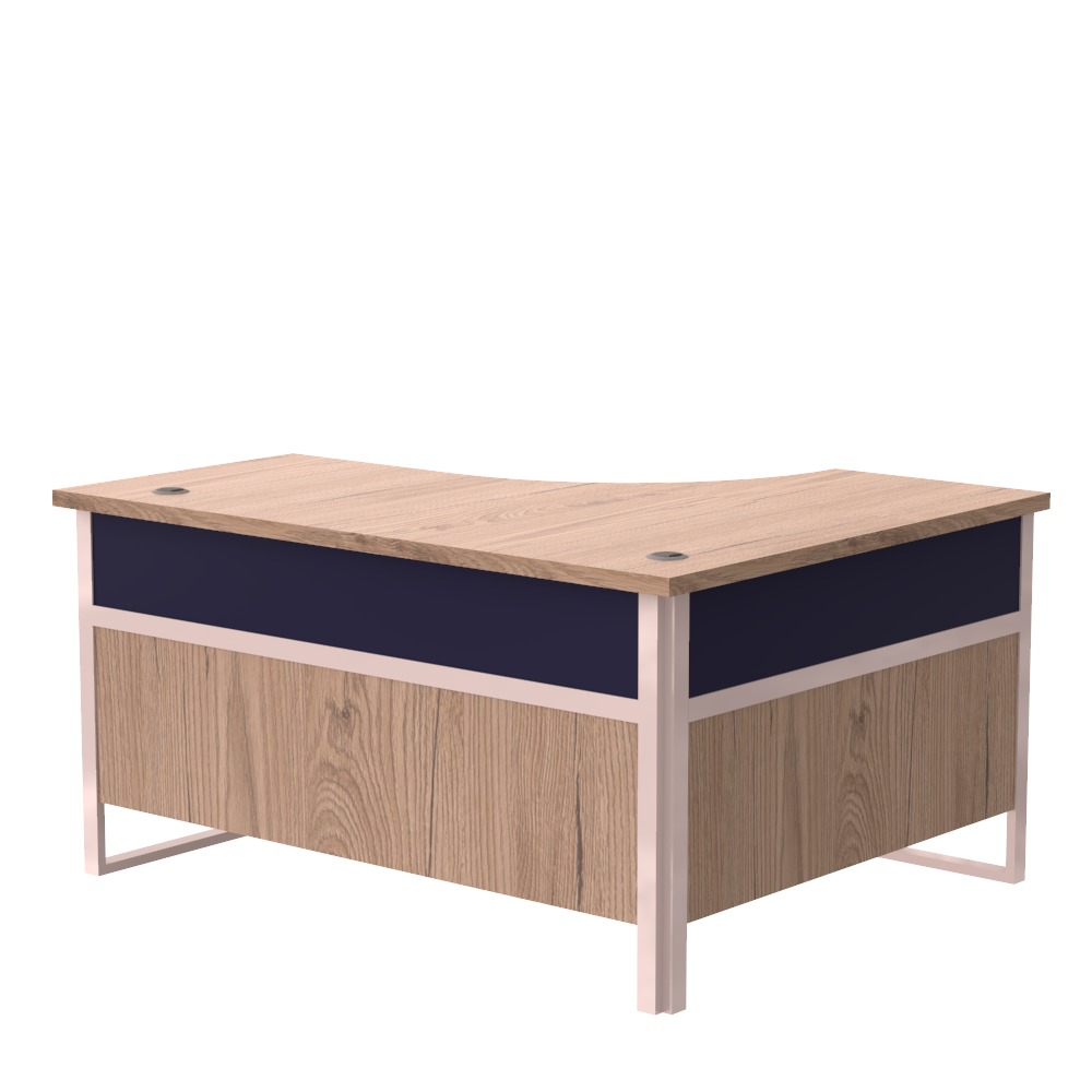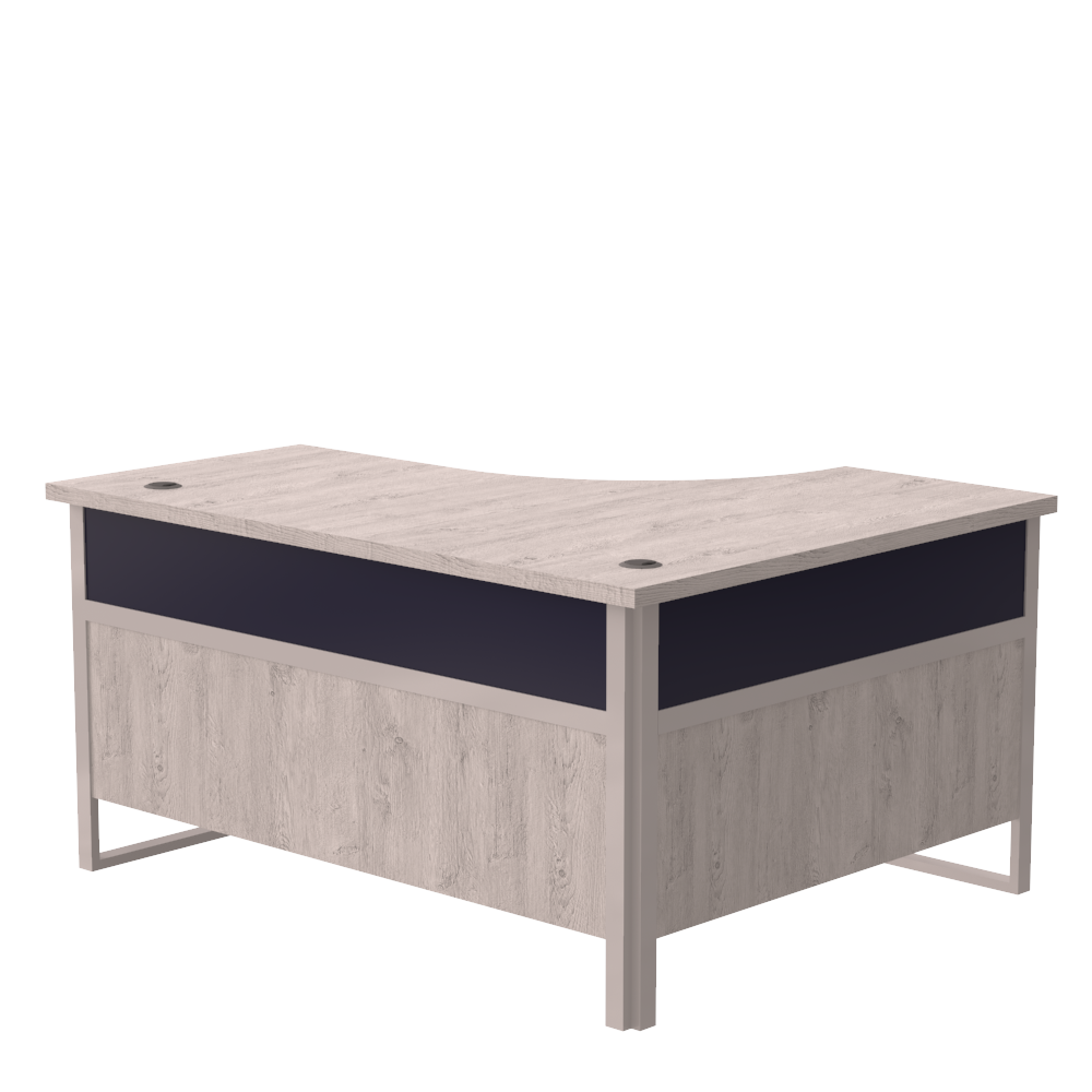 Стол письменный угловой из новой коллекции офисной мебели ?Sky? представлен в нескольких новомодных цветовых сочетаниях 2019 года: фиолетовый/Санторини Грей, фиолетовый/Дуб Сан-Марино. Представленные в коллекции позиции отличаются уникальным сочетанием дизайна, элегантности и функциональности. За счет своей формы стол экономит пространство, позволяя установить его в любом уголке помещения. Решает проблему установки гарнитура в маленьких помещениях. Линии столешницы плавные, специальная выемка обеспечивает удобство посадки.Главные характеристики моделиПоверхность офисного стола предусмотрена для работы, а также размещения оргтехники, монитора, канцелярских принадлежностей, документов, папок.Выполнен из износостойкого ЛДСП толщиной 16 мм. Толщина столешницы ? 32 мм.Оборудован несколькими заглушками электро-разъема, которые позволяют устранить проблему хаотичного размещения проводов к электропитанию.Стильные открытые металлические опоры равномерно распределяют вес стола со всеми предметами, предусматривают простоту уборки и мытья пола под гарнитуром. Имеют пластиковые ножки, что защищает пол от повреждений. Визуально увеличивают свободное пространство.Соответствует концепции ?open office? ? сидя за столом, сотрудники не чувствуют себя словно они в коробке.Особенности оформления заказаУ нас вы можете купить угловой письменный стол по оптимальной цене, поскольку мы являемся прямым производителем мебели. Поэтому все товары в наличии продаются без наценки. Для оформления заказа заполните соответствующие поля на сайте, выберите удобный для себя способ оплаты и доставки. Стоимость транспортировки и сборки оплачивается отдельно. В случае возникновения вопросов свяжитесь с нашими менеджерами по указанным на сайте номерам телефонов.
