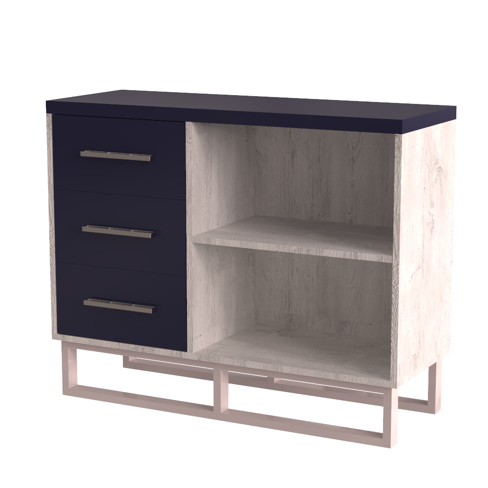 Данная тумба офисная входит в линейку мебели ?Sky? 2019 года, которая помогает показать уникальный стиль и характер фирмы. Коллекция сочетает в себе лучшие разработки дизайнеров для обустройства офисных помещений с максимальным комфортом для сотрудников. Имеет качественную фурнитуру, две открытые полки для хранения папок, документов, оргтехники, канцелярии и других вещей. А также три выдвижных шкафчика, декорированных стильными металлическими ручками.Наполняет рабочую зону функциональностью, ставит логическую точку в оформлении дизайна помещения. Модель отлично сочетается с мебелью из коллекции ?Sky? и другим рабочим гарнитуром. Выдержанный стиль и отсутствие лишних деталей, делают ее наиболее популярной и востребованной среди покупателей.Характеристики и преимуществаКомпактные размеры: 950х350х750 мм. Вы можете разместить тумбочку офисную в любой части помещения.Оборудована металлическими опорами, которые не только равномерно распределяют вес тумбы вместе с содержимым, но и облегчают процесс мытья пола под конструкцией.Изготовлена из экологически чистого, износостойкого, соответствующего всем стандартам качества материала ? ЛДСП толщиной 16 мм. Толщина столешницы ? 32 мм. Надежная сборка гарантирует аккуратность и точность фиксации каждой детали.Ящики имеют плавный ход и бесшумное закрытие. Выдвигаются при помощи телескопических направляющих, что обеспечивает их стопроцентное открытие. Способны выдерживать значительный вес содержимого.Новомодное цветовое сочетание 2019 года: фиолетовый/Санторини грей, фиолетовый/ Дуб Сан-Марино.Особенности оформления заказа в нашем интернет-магазинеУ нас вы можете купить офисную тумбу по оптимальной цене, потому что наша компания является прямыми производителями мебели. Мы продаем товары без наценки. Оплатить заказ можно наличными или безналичным платежом. Доставка осуществляется в любой регион Украины с помощью транспортных компаний. По Харькову доставка бесплатная на суму от 7000 грн, стоимость отправки на меньшую сумму ? 170 грн.