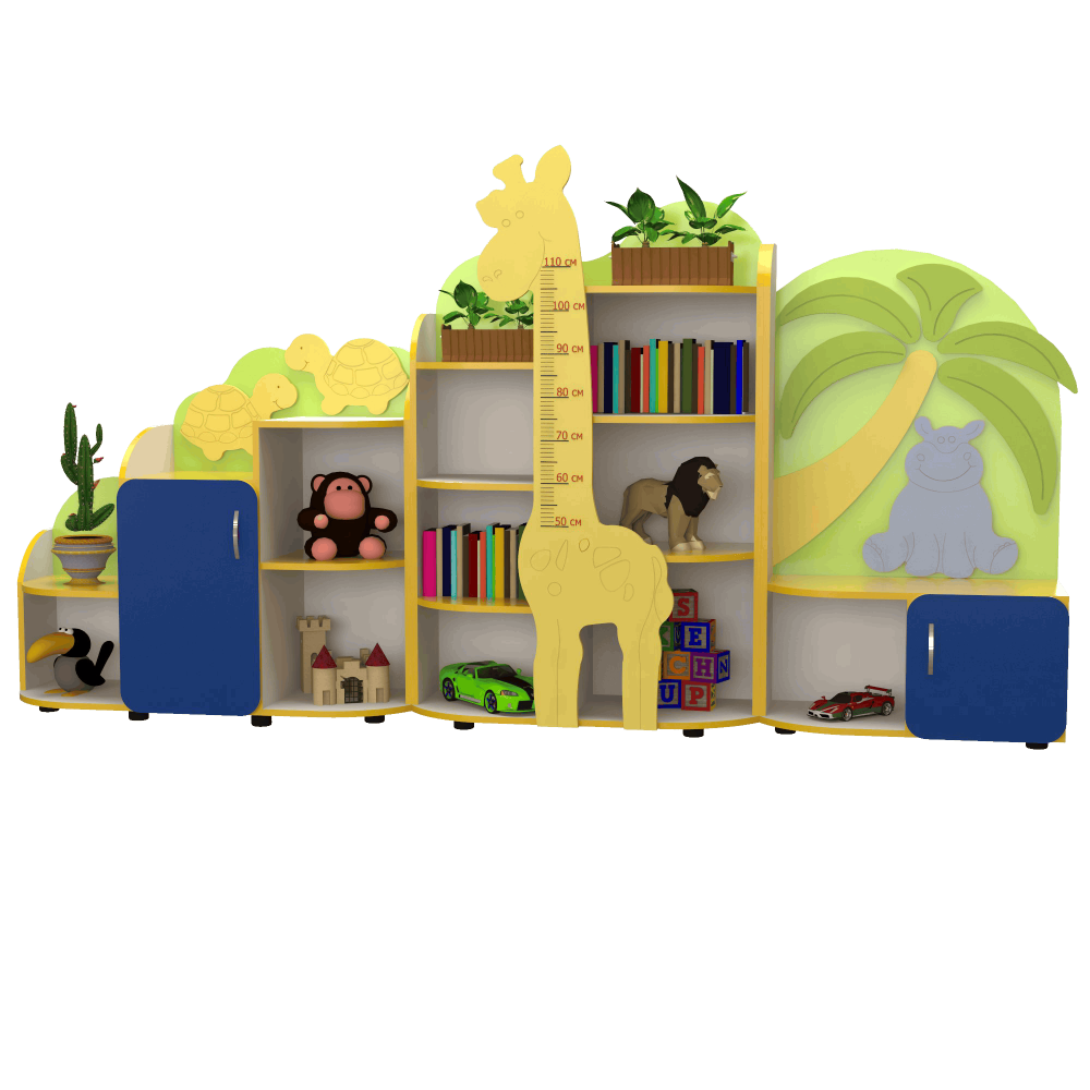 Стенка для игрушек ?Африка? предусмотрена для комплектации школ, детских дошкольных учреждений, игровых зон. Конструкция имеет множество открытых и закрытых полочек, ниш и угловой элемент, куда поместятся комнатные растения. Предусматривает хранение книг, игрушек, материалов для творчества и других предметом. Отличительная особенность ? оригинальный дизайн. Благодаря этой стенке в помещении поселятся любимые животные малышей из зоопарка.Фасад, выполненный в виде жирафа, имеет ростомер, что позволяет детям отслеживать изменения своего роста практически каждый день. Изготовлена из износостойких материалов, которые соответствуют стандартам ГОСТ ? ДСП и МДФ. Конструкция не имеет острых углов, что делает ее полностью безопасной. Разработана таким образом, чтобы дети могли при необходимости самостоятельно взять и поставить на место необходимый предмет.Характеристики моделиГабариты детской игровой стенки: 2600х350х1400 мм.За счет гармоничного сочетания цветов, модель подойдет под любой интерьер помещения.Вес изделия составляет 190 кг.Гарантийный срок эксплуатации ? 12 месяцев.На торцы нанесена кромка ПВХ для защиты от влаги и механических повреждений.Правила оформления заказаВ ассортименте нашего магазина представлен широкий выбор стенок для игрушек в детский сад. Процесс оформления заказа не займет больше 5 минут ? для этого заполните соответствующие поля на сайте. Оплата товаров осуществляется наличным и безналичным платежом. Мы доставляем заказ в любой населенный пункт Украины с помощью транспортных компаний. Если у вас возникнут вопросы, обратитесь к нашему менеджеру по телефонам, указанным на сайте.