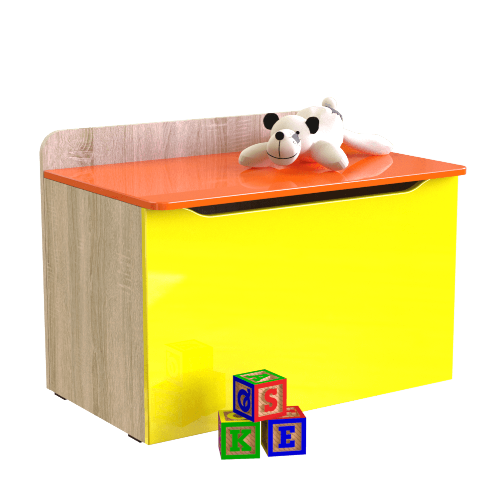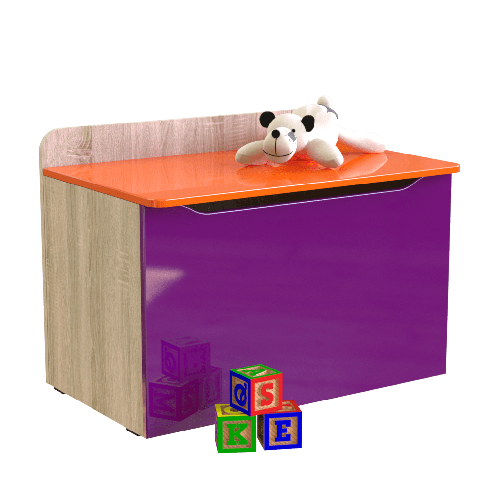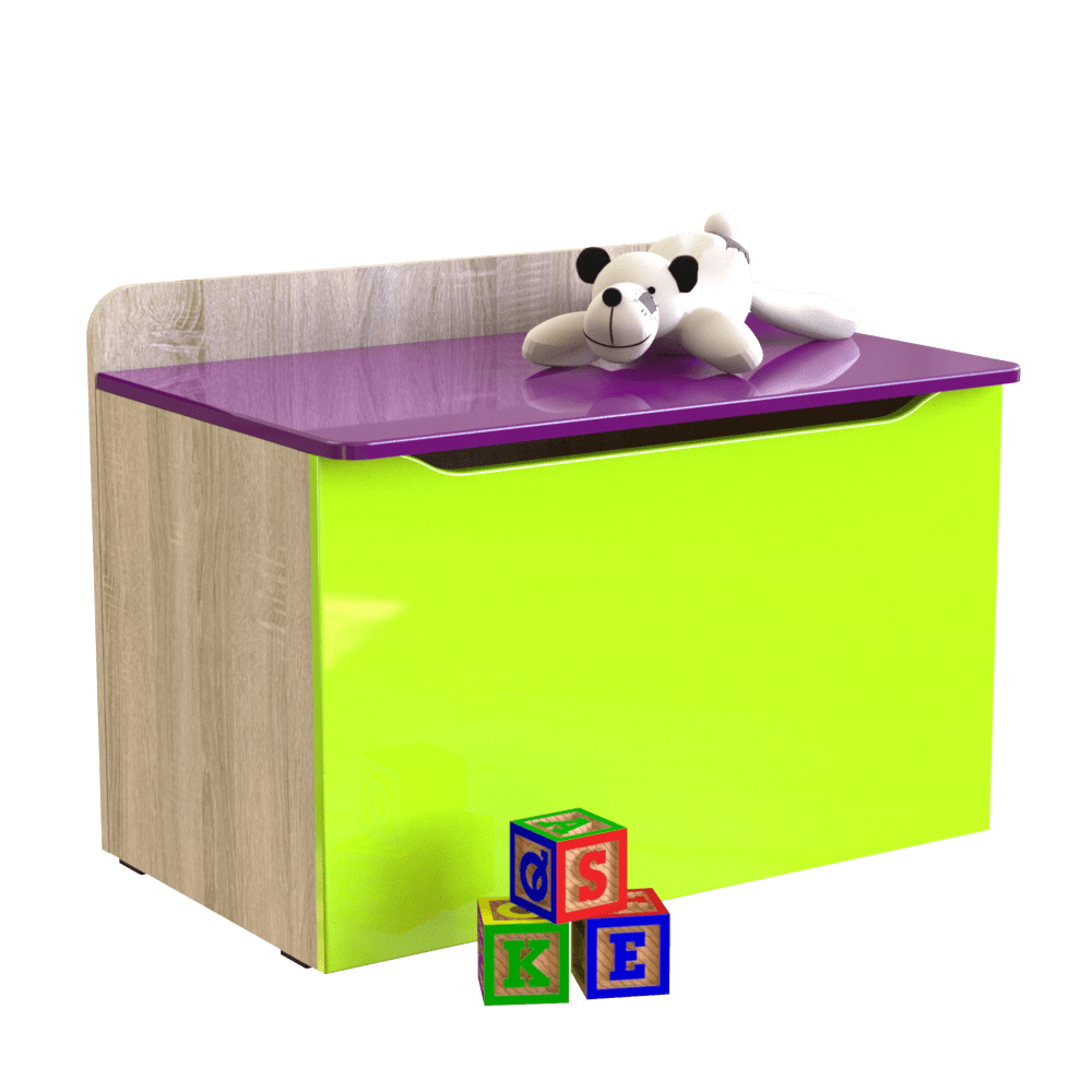 Сундук для игрушек входит в коллекцию детской мебели ?Неон? ? фасады выполнены в ярком сочетании МДФ, покрытого глянцевой пленкой: Сирень/Лайм, Оранж/Желтый, Оранж/Сирень. Предусмотрен для комплектации детских комнат, садиков, школ, игровых зон, дошкольных учреждений. Модель является универсальной, ? подходит для мальчиков и девочек. За счет яркой расцветки обязательно понравится вашему малышу, он будет с удовольствием складывать туда все необходимое.В нем ребенок сможет хранить все свои игрушки. При этом все они будут находиться в свободном доступе. При необходимости он сможет достать и положить на место необходимый предмет. Безопасная конструкция имеет скругленные углы, пространство между крышкой и передней стенкой, чтобы во время закрывания ребенок не прищемил пальцы.Характеристики моделиГабариты ящика для игрушек: 800х500х580.Может использоваться как небольшой столик и дополнительное место для сидения.Фасады выполнены из МДФ, корпус ? из ДСП толщиной 16 мм. Материалы изготовления имеют соответствующие сертификаты качества, отвечают требованиям ГОСТ.Вес изделия составляет 23 кг.Гарантийный срок эксплуатации ? 1 год.Правила оформления заказаВ нашем интернет-магазине вы можете купить детский сундук для игрушек по оптимальной цене, поскольку мы являемся прямым производителем мебели. Оплатить покупку можно наличным или безналичным платежом. Доставка осуществляется с помощью транспортных компаний. В случае возникновения вопросов свяжитесь с нашим менеджером по телефонам, указанным на сайте.
