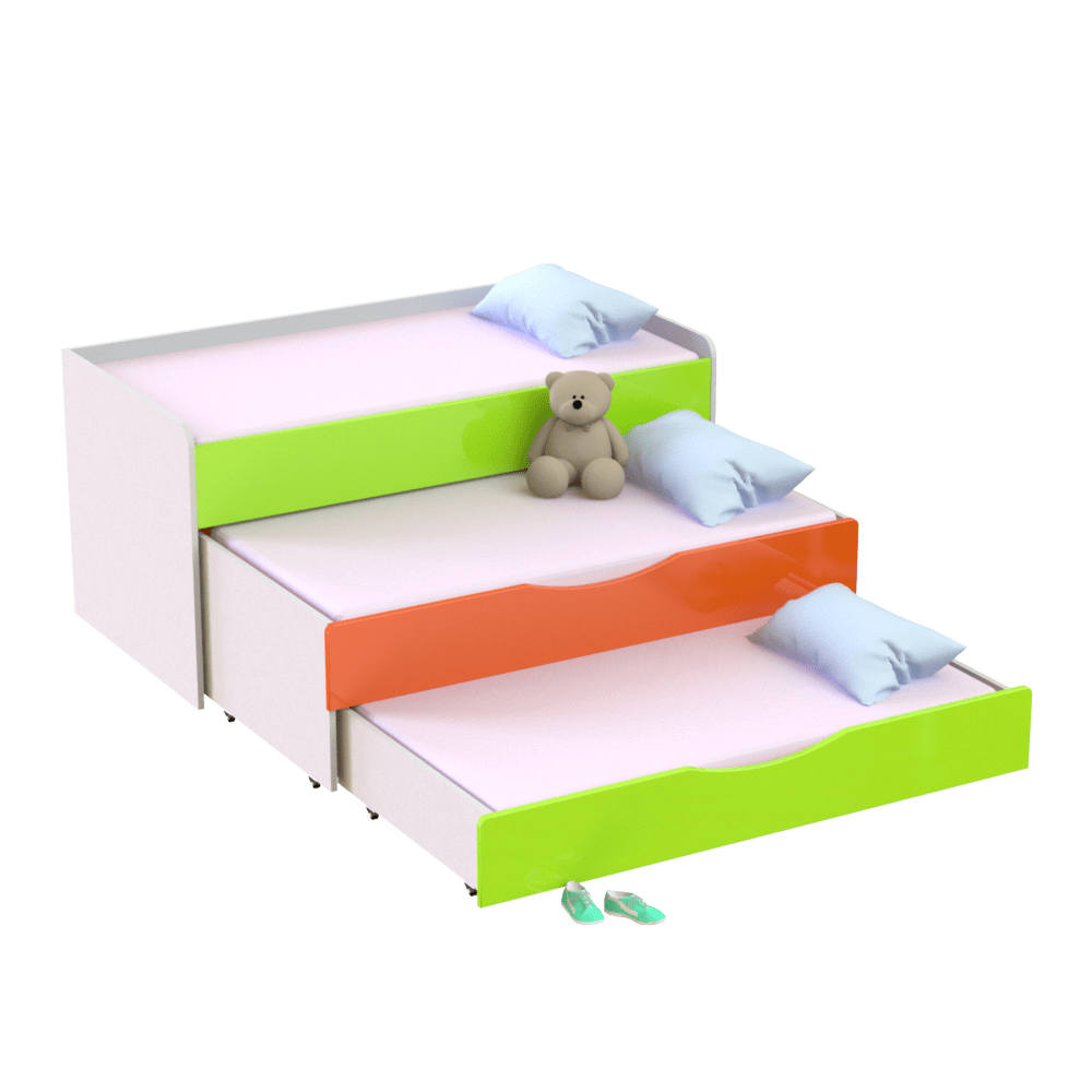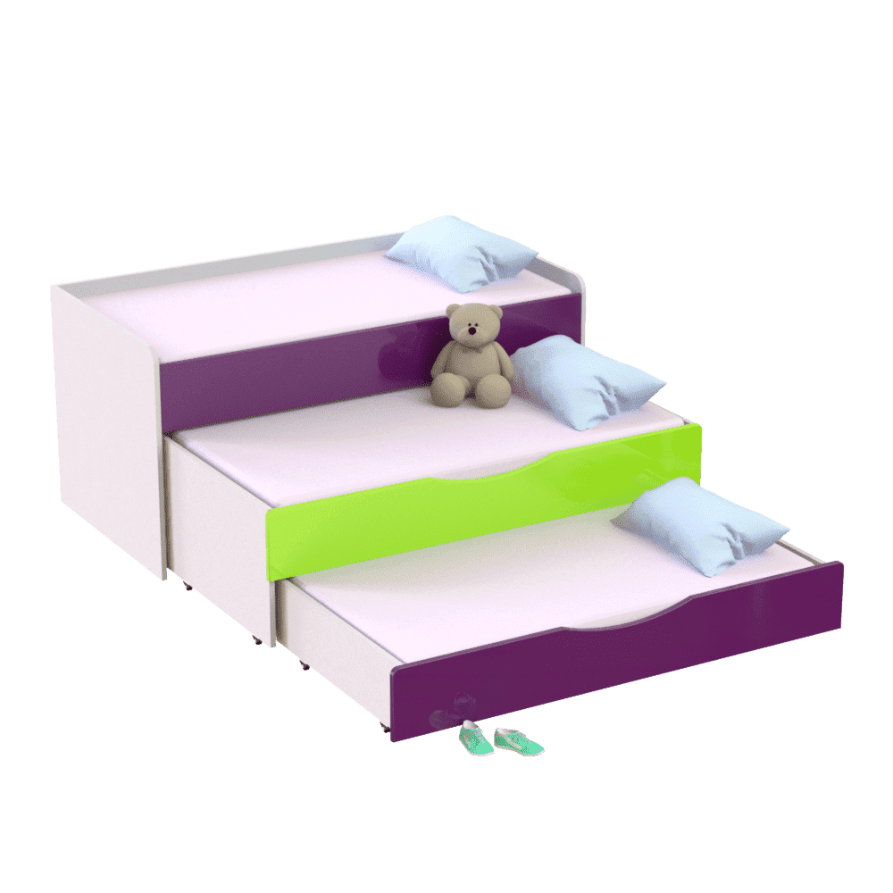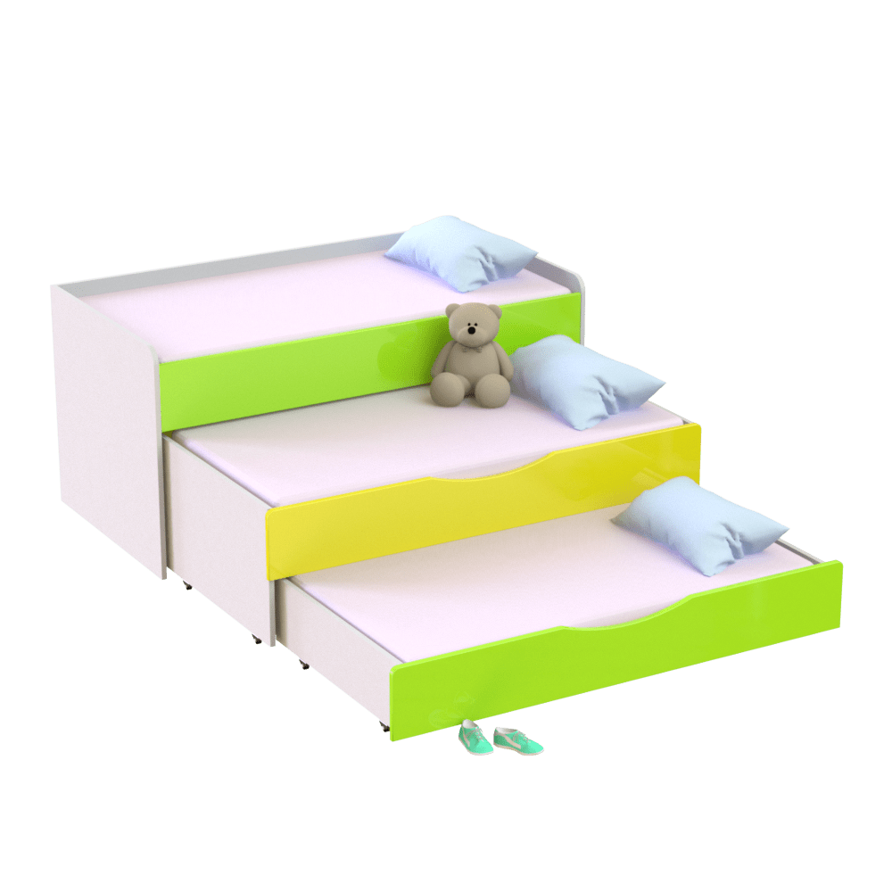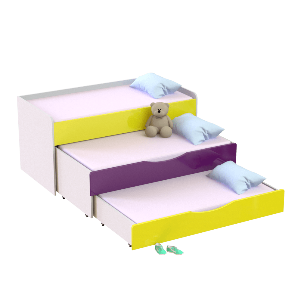 Детская трехъярусная кровать является идеальным решением для обустройства комнат, садиков и других дошкольных учреждений. Занимает минимум места в комнате и оставляет много свободного пространства для игр, спорта и других занятий. Имеет три спальных места, два из которых выдвигаются с помощью роликов. Если у вас два ребенка, нижний ярус можно использовать как дополнительный ящик для игрушек и белья, что очень удобно. Третье спальное место можно применить на случай прихода гостей с ночевкой.Изготовлена из экологически чистых, гипоаллергенных и износостойких материалов ? ЛДСП и МДФ, которые подтверждены сертификатами качества. Имеет надежную конструкцию со скругленными углами, что исключает риск повреждений во время активных игр малышей. Входит в коллекцию мебели ?Неон? ? фасады покрыты глянцем. Оформлена в современном дизайне, благодаря чему гармонично впишется в любой интерьер детской комнаты.Главные характеристики моделиШирина: 1522/1522 мм. Глубина: 650/1850 мм. Высота: 865/865 мм.Основа изделия ? прочный металлический каркас и ДСП толщиной 16 мм.Вес изделия составляет 112 кг.На ваш выбор представлено несколько цветовых решений ЛДСП и комбинаций МДФ, что позволяет выбрать наиболее выигрышный вариант под ваш интерьер.Гарантийный срок эксплуатации ? 1 год.Особенности оформления заказа в нашем интернет-магазинеУ нас вы можете купить кровать трехъярусную детскую и другую мебель по оптимальной цене, так как мы являемся прямым производителем. Доставка осуществляется во все регионы Украины в кратчайшие сроки с помощью транспортных компаний. Для оплаты вы можете выбрать наличный и безналичный расчет. Следите за обновлениями сайта и выгодными акционными предложениями.