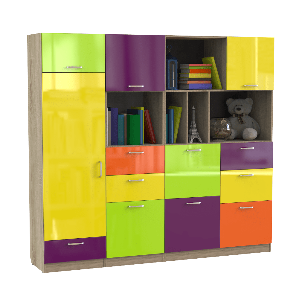 Детская комната ? это то место, где ребенок проводит большую часть своего времени. В комнате обычно хранится много вещей и игрушек, которые необходимо куда-то складывать, при этом, не загромождая пространство лишней мебелью. Идеальным решением в данной ситуации станет современная, лаконичная стенка для игрушек серии ?Неон?. Покупка многофункциональной стенки намного выгоднее, чем каждого гарнитура отдельно.Представляет собой практичную конструкцию, оборудованную множеством открытых и закрытых полочек, выдвижных ящиков, отделением для хранения одежды. Яркие глянцевые фасады МДФ отлично гармонируют с ДСП ? эти материалы сертифицированные, экологичные и долговечные. На ваш выбор представлено несколько цветовых решений корпуса: Дуб Сонома, Белый, Черный.Характеристики и преимущества моделиРазмеры: 2200х450х2000 мм.За счет гармоничного цветового сочетания детская стенка для игрушек идеально подойдет под интерьер комнаты ребенка.На торцы нанесена кромка ПВХ, толщиной 0,5 мм для защиты от влаги и механических повреждений.Вес изделия составляет 207 кг.Гарантийный срок эксплуатации ? 12 месяцев.Оформление заказа в нашем интернет-магазинеУ нас вы можете приобрести стенки для игрушек в детский сад по оптимальным ценам. Для вас предусмотрено много удобных вариантов доставки с помощью транспортных компаний. Оплатить покупку можно наличным или безналичным платежом. Чтобы оформить заказ, заполните соответствующие поля на сайте. Следите за актуальными акциями и скидками. Для связи с нашими менеджерами позвоните по телефонам, указанным на сайте.