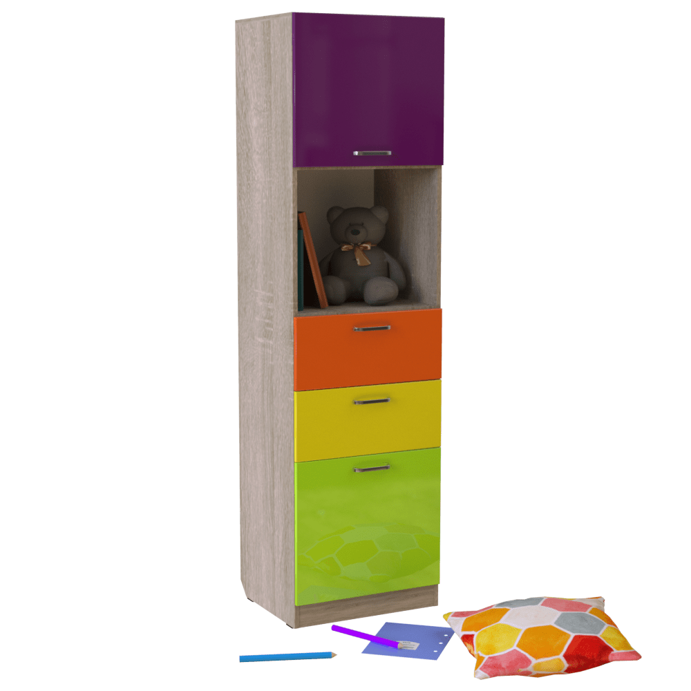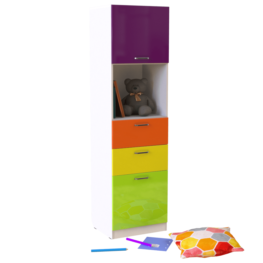 Изысканный мебельный пенал, обладающий стильным дизайном, который помогает более полно и рационально использовать пространство детского сада или детской комнаты. Современный дизайн зачастую минималистичен, и данная модель не стоит в стороне ? обладающий небольшими габаритами мебельный пенал можно удобно расположить даже в помещении, где есть совсем немного пространства для его установки. Яркая расцветка фасадов позволяет создать с помощью этого пенала приятную, интересную для детей и непринуждённую обстановку в помещении.Характеристики изделияМодель: ?Н 14?.Материал, из которого изготовлен корпус изделия ? ДСП толщиной 16 мм, класса эмиссии Е1. Торцы ДСП покрыты кромкой, изготовленной из ПВХ, толщиной 0,5 мм. Фасады сделаны из глянцевой МДФ. Габаритные размеры изделия ? 550х450х2000 мм. В середине конструкции располагается открытая полка, на которой можно расположить игрушки или наиболее часто используемые предметы, которые должны быть всегда под рукой.Преимущества и особенностиНесмотря на небольшие габариты этого изделия, количество покупателей, которые хотят купить мебельный пенал, постоянно растёт. Этот удобный предмет интерьера можно расположить даже в небольшом помещении в детском саду, где он не будет занимать много места, и при этом поместить в него большое количество самых разных документов, игрушек и других вещей, необходимых сотрудникам детского сада или детям, которые его посещают.В нашем интернет-магазине цена на мебельный пенал остаётся невысокой, т.к. наша компания ? непосредственный производитель этого изделия. Желающие купить мебельный пенал могут приобрести эту мебель на заказ, сроки изготовления изделия зависят от уровня загруженности нашего производства. Наши сотрудники оговаривают сроки изготовления при обработке или оформлении Вашего заказа.Гарантийный срок использования этого изделия ? 12 месяцев.Обратите внимание: стоимость пенала указана без учёта стоимости услуг сборки.