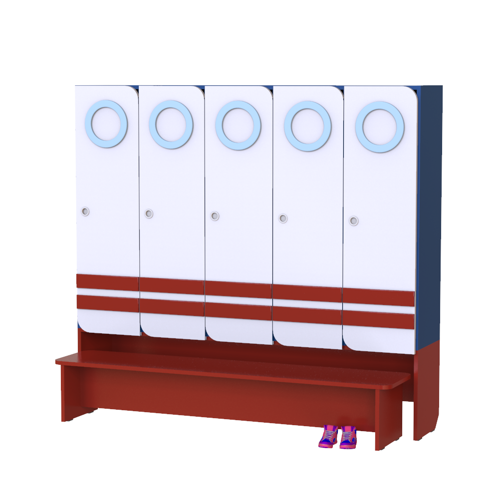 ?Моряк? ? оригинальная модель детского секционного шкафа, специально разработанная нами для клиентов, которым нужны шкафы для детских раздевалок. Это изделие, обладающее эксклюзивным дизайном, подходит для комплектации детских садов, спортивных залов, бассейнов и других учреждений, которые могут посещать дети дошкольного возраста.Надёжные шкафы для раздевалок детского сада ?Моряк? предлагаются нами в трёх вариантах ? с двумя, тремя и пятью секциями. Вместительная конструкция позволяет ребёнку удобно поместить в шкафчик все необходимые вещи, одежду и обувь.Характеристики детского секционного шкафа для раздевалки ?Моряк?:каждая секция состоит из двух отделений ? верхнего, прикрытого дверцей, и нижнего, открытого отделения для обуви,в верхнем отделении на боковых стенках расположены двойные металлические крючки для одежды,стенки и фасады сделаны из прочной ламинированной ДСП толщиной 16 мм, фасады украшены декоративными накладками из МДФ,снизу располагаются небольшие ножки-гвоздики, предотвращающие повреждение поверхности пола, на которой располагаются шкафчики.Особенности данной моделиШкаф ?Моряк? помогает создать в помещении, предназначенном для маленьких детей, красивый интерьер, в котором ребёнок будет чувствовать себя комфортно. Это играет огромную позитивную роль на ранних стадиях воспитания, помогает ребёнку развиваться и проходить социализацию.Дизайн шкафчика делает его эргономичным изделием, максимально удобным в использовании. Нижний угол дверцы каждого шкафчика скруглён, чтобы ребёнок не смог зацепиться за него, совершая резкие движения.Для производства детских шкафчиков ?Моряк? использованы только безопасные материалы, имеющие соответствующие сертификаты и соответствующие санитарно-гигиеническим нормам.Наши менеджеры помогут Вам в выборе товара и оформлении заказа, свяжитесь с нами и получите подробную консультацию!