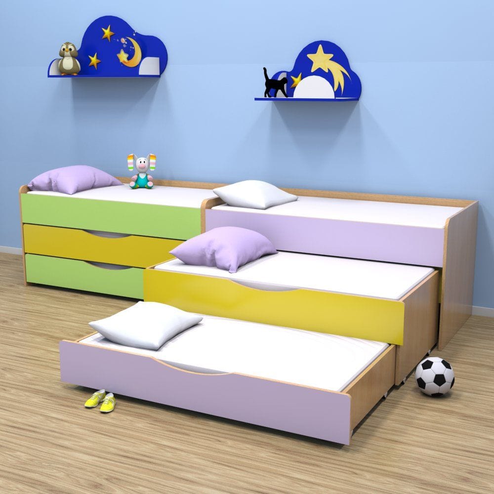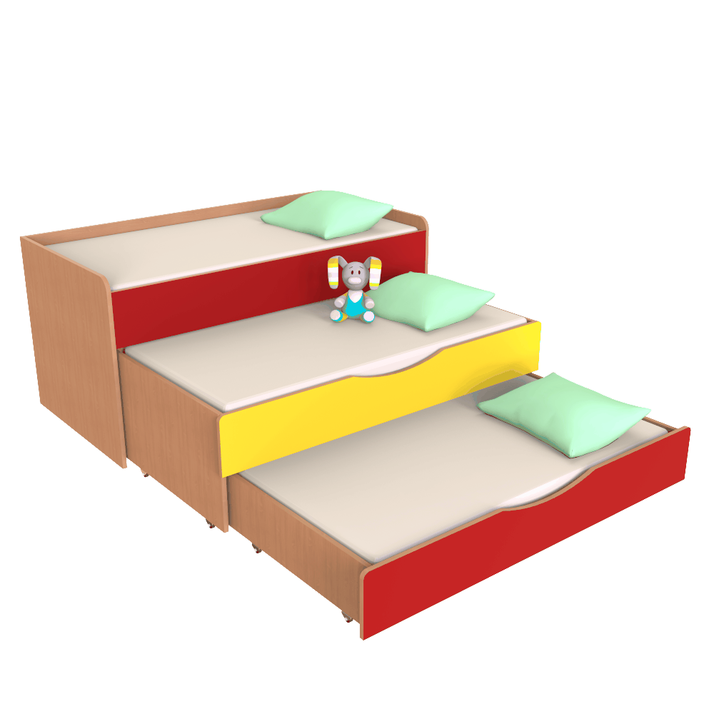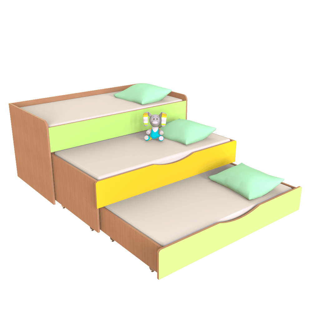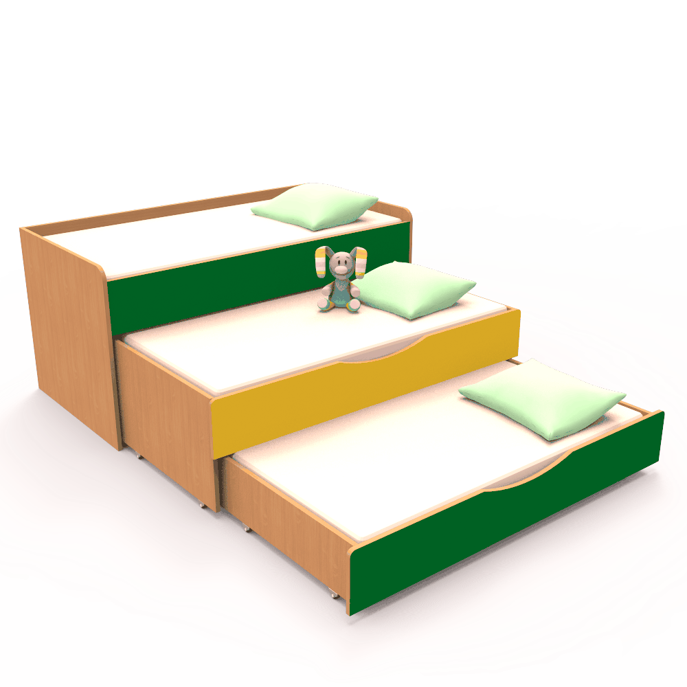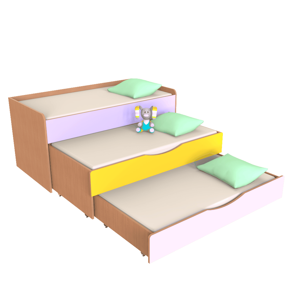 Трехъярусная детская кровать является эффективным решением для обустройства спального места в комнате с маленькой площадью. Модель подходит для комплектации дошкольных учреждений, лагерей, домов и квартир. Обеспечивает много свободного пространства для игр и занятий спортом. Два из трех спальных мест легко выдвигаются с помощью роликов. Представлена в разной цветовой комбинации ЛДСП.Имеет универсальный дизайн ? подходит как для мальчиков, так и для девочек. Одно из спальных мест можно использовать как дополнительный ящик для белья, игрушек и других вещей. Материалы изготовления соответствуют стандартам ГОСТ, отличаются износостойкостью, легко очищаются и не требуют особого ухода. Все выступающие торцы детской трехъярусной кровати скруглены и покрыты кромкой ПВХ, что защищает ребенка от повреждений во время активных игр.Характеристики и преимуществаШирина: 1522/1522 мм. Глубина: 650/1850 мм. Высота: 865/865 мм.Имеет надежный металлический каркас.Размер спального места первого яруса составляет 1400/600, второго ? 1400/600, третьего ? 1500/600 мм.Цветовая палитра ЛДСП выдержана в спокойной гамме, способствующей расслаблению и отдыху.Гарантийный срок эксплуатации ? 1 год.Правила оформления заказа в нашем интернет-магазинеВ каталоге нашего интернет-магазина представлены детские трехъярусные кровати и другие позиции по оптимальной цене, поскольку мы являемся прямым производителем мебели. При оформлении заказа выберите наиболее подходящий для себя способ оплаты и доставки из множества представленных. Обратите внимание, что стоимость доставки оплачивается отдельно. Матрасы в стоимость изделия не входят ? вы можете приобрести их отдельно.