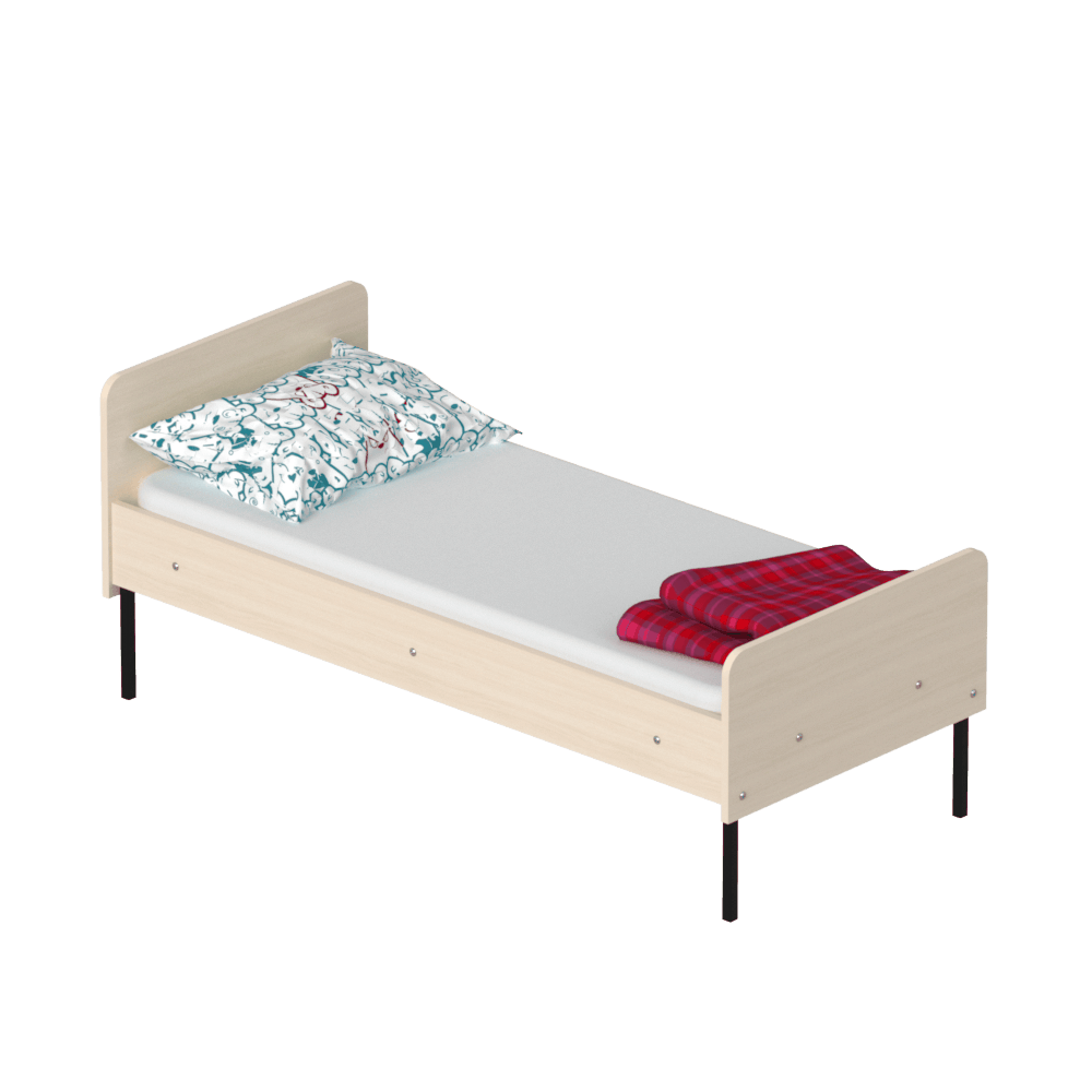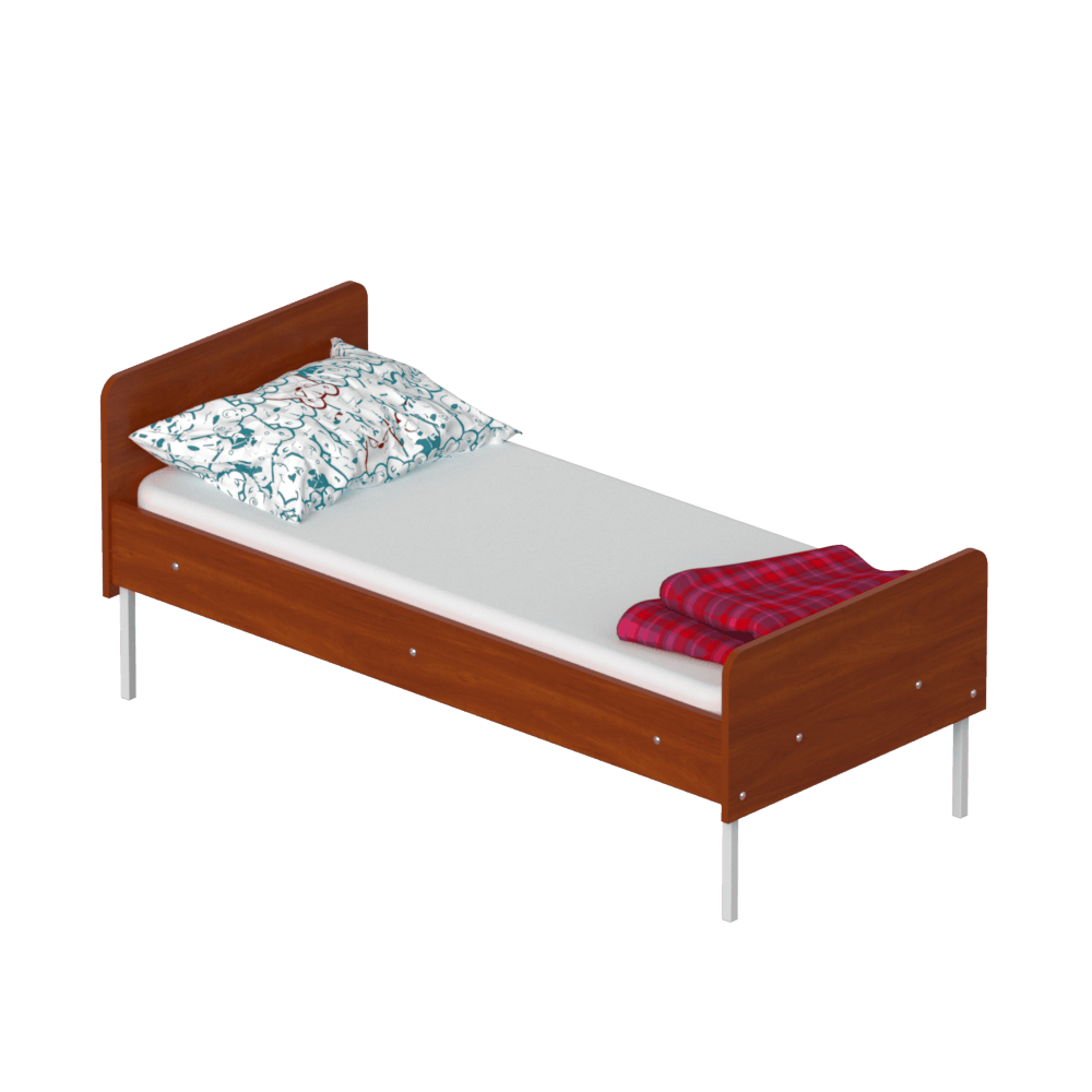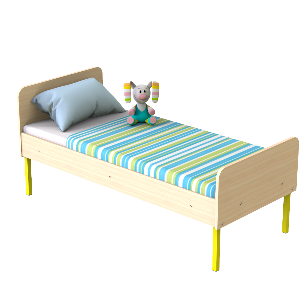 Детская кровать предусмотрена для комплектации дошкольных и лечебно-оздоровительных учреждений, а также детских лагерей и спортивных баз. Боковины и быльца конструкции изготовлены из износостойкого ЛДСП толщиной 16 мм. Модель имеет оптимальный размер: 1440/640/690 мм. На ней комфортно разместится маленький ребенок и подросток до 12 лет. Все выступающие элементы изделия скруглены, что обеспечивает ребенку безопасность.Характеристики моделиРазмер спального места: 1400/600 мм.Конструкция довольно прочная, поскольку каркас изготовлен из надежной металлической трубы с сечением 20/20 см и толщиной стенки 1,2 мм.Кровать детская не требует особого ухода ? для поддержания чистоты достаточно легкой влажной уборки.На ваш выбор представлено множество цветовых решений ЛДСП и каркаса.Металлические ножки конструкции имеют пластиковые заглушки, за счет чего мебель не царапает пол.Каркас покрыт стойкой к повреждениям порошковой краской.Правила оформления заказа в нашем интернет-магазинеУ нас вы можете купить детскую кровать и другую мебель по выгодной цене с удобными вариантами оплаты и доставки. Оплатить покупку можно наличным или безналичным платежом. Мы доставляем товар в любой регион Украины с помощью транспортных компаний. Если у вас возникнут вопросы обратитесь к нашему менеджеру по телефону, указанному на сайте. Не пропускайте выгодные акции и скидки.