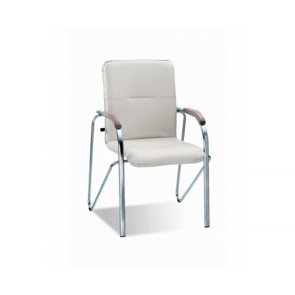 Офисный стул ?Самба? подходит для обустройства офисных помещений, зон отдыха и ожидания, конференц-залов. Отличается повышенной комфортностью, благодаря улучшенной форме спинки и сидения. Накладки из натурального дерева или экокожи, на подлокотниках, добавляют модели особую элегантность. Гармонично смотрится в классических и современных интерьерах. Имеет оригинальный дизайн. В этой модели впервые применен трехмерный гиб задних ножек. Это позволяет штабелировать изделия, освобождая много свободного пространства.Главные характеристикиРазмеры изделия: 460х430х900 мм.Имеет устойчивую металлическую раму.Предусматривает штабелирование до 4 штук.В качестве обивки использован износостойкий кожзаменитель.Вес изделия составляет 7 кг.Правила оформления заказаНаш интернет-магазин предлагает вам купить офисный стул по оптимальной цене с удобными вариантами оплаты и доставкой во все регионы Украины. Для оплаты предусмотрен наличный и безналичный расчет. Если у вас возникнут вопросы, свяжитесь с нашими менеджерами по телефонам, которые указаны на сайте. Следите за актуальными обновлениями, акциями и скидками.Минимальное количество стульев для заказа ? 6 штук.