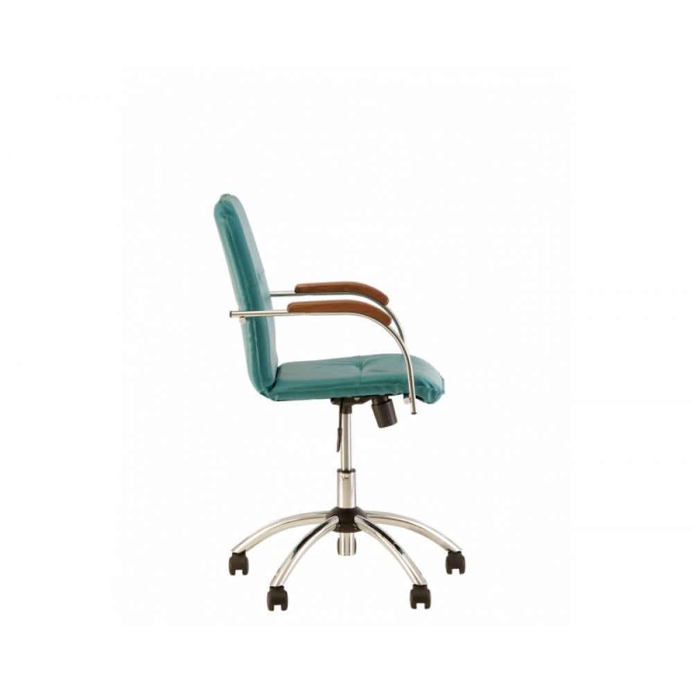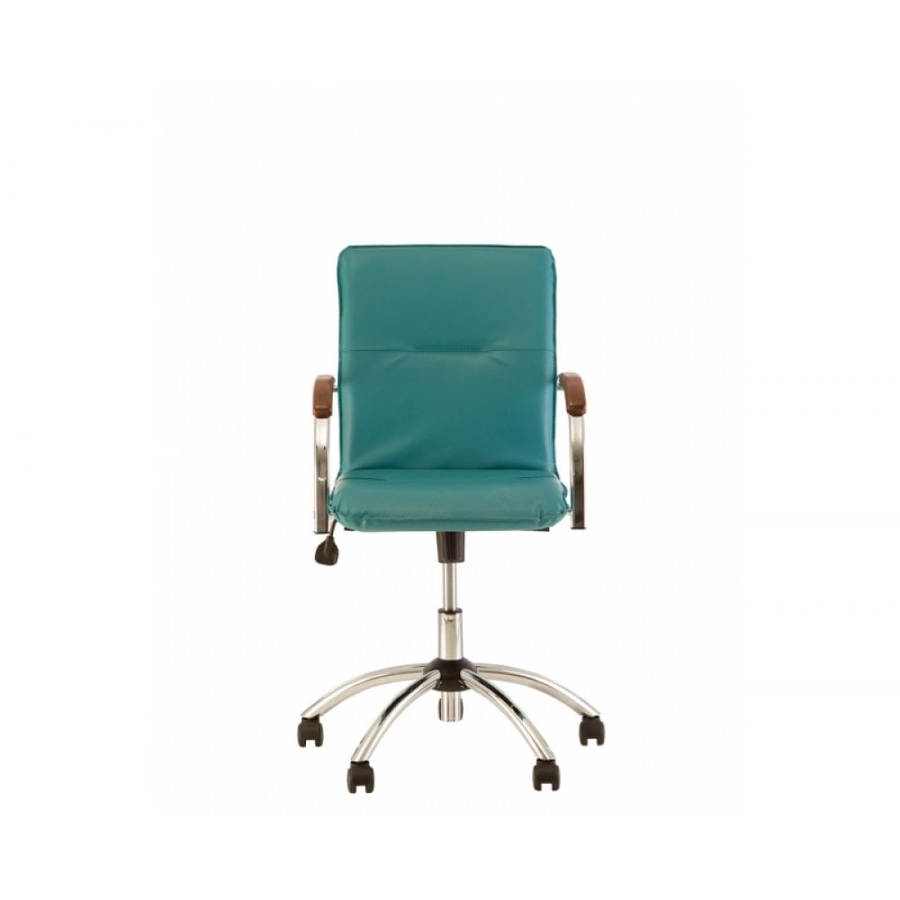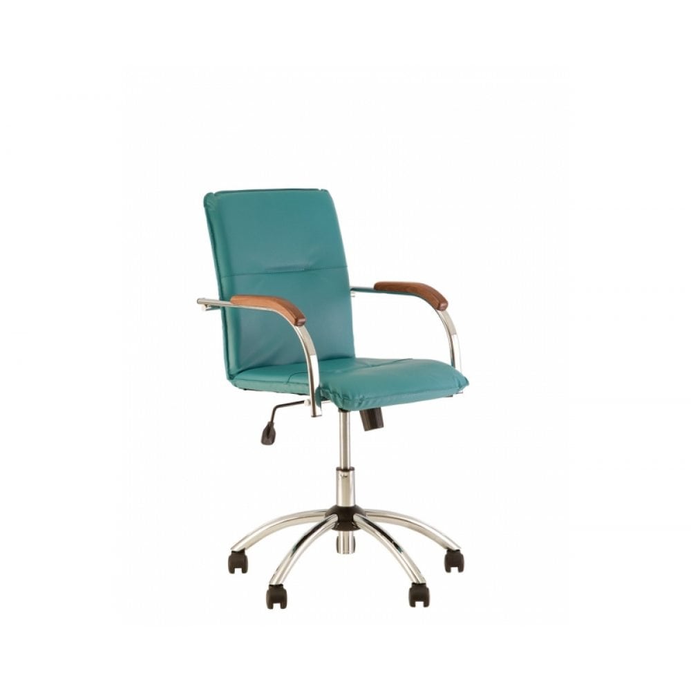 Комфортное и современное офисное кресло, которое хорошо подходит для интерьеров офисов, учебных заведений и для использования дома. Снизу конструкции имеются ролики, которые делают кресло мобильным. Его можно приобрести с доставкой во все регионы Украины, оформив заказ на нашем сайте.Характеристики изделияКлиенты, которые хотят купить недорогое офисное кресло, могут заказать одну из двух предлагаемых нами моделей:?Самба С GTP? ? вариант, оснащённый мягкими подлокотниками,?Самба GTP? ? вариант с подлокотниками, сделанными из цельного массива бука.Габаритные размеры изделия составляют: 455 мм (ширина), 400 мм (глубина), 930?1010 мм (высота).Металл, из которого изготовлен каркас изделия, хромированный. Металлическая база имеет пластиковые накладки.Преимущества и особенности моделиОсновные преимущества этого офисного кресла ? его мобильность, наличие надёжного механизма качания и невысокая, демократичная стоимость. Универсальный дизайн изделия позволяет использовать его для широкого спектра современных интерьеров офисов и учебных заведений. Отлично подходит для использования в качестве кресла для персонала и посетителей.Изделие изготавливается на заказ, сроки его изготовления и отгрузки зависят от текущей загруженности нашего производства и оговариваются при оформлении заказа и его обработке.Обратите внимание: минимальное количество единиц для оформления заказа на этот товар ? 5 шт.