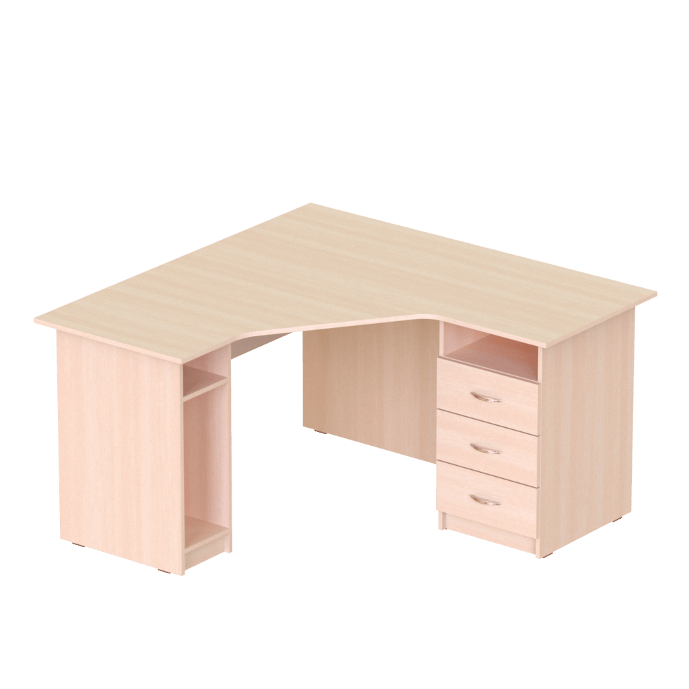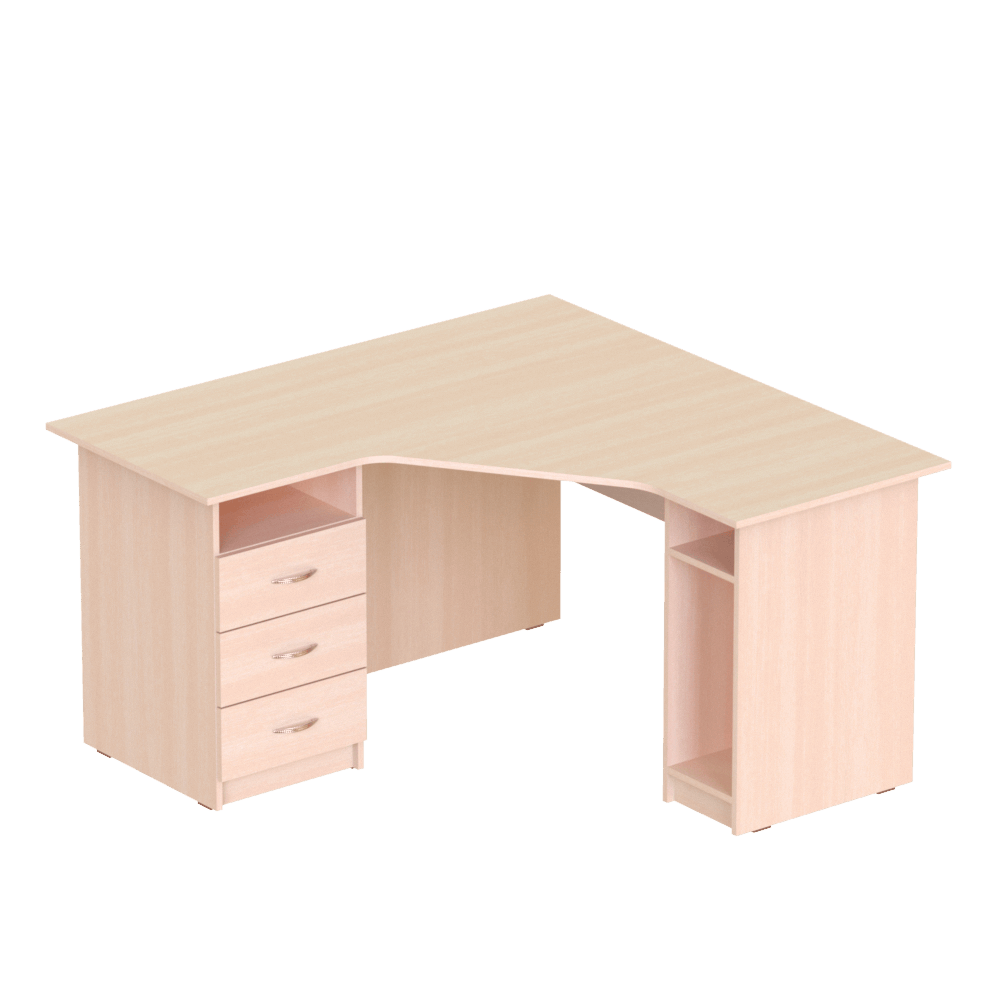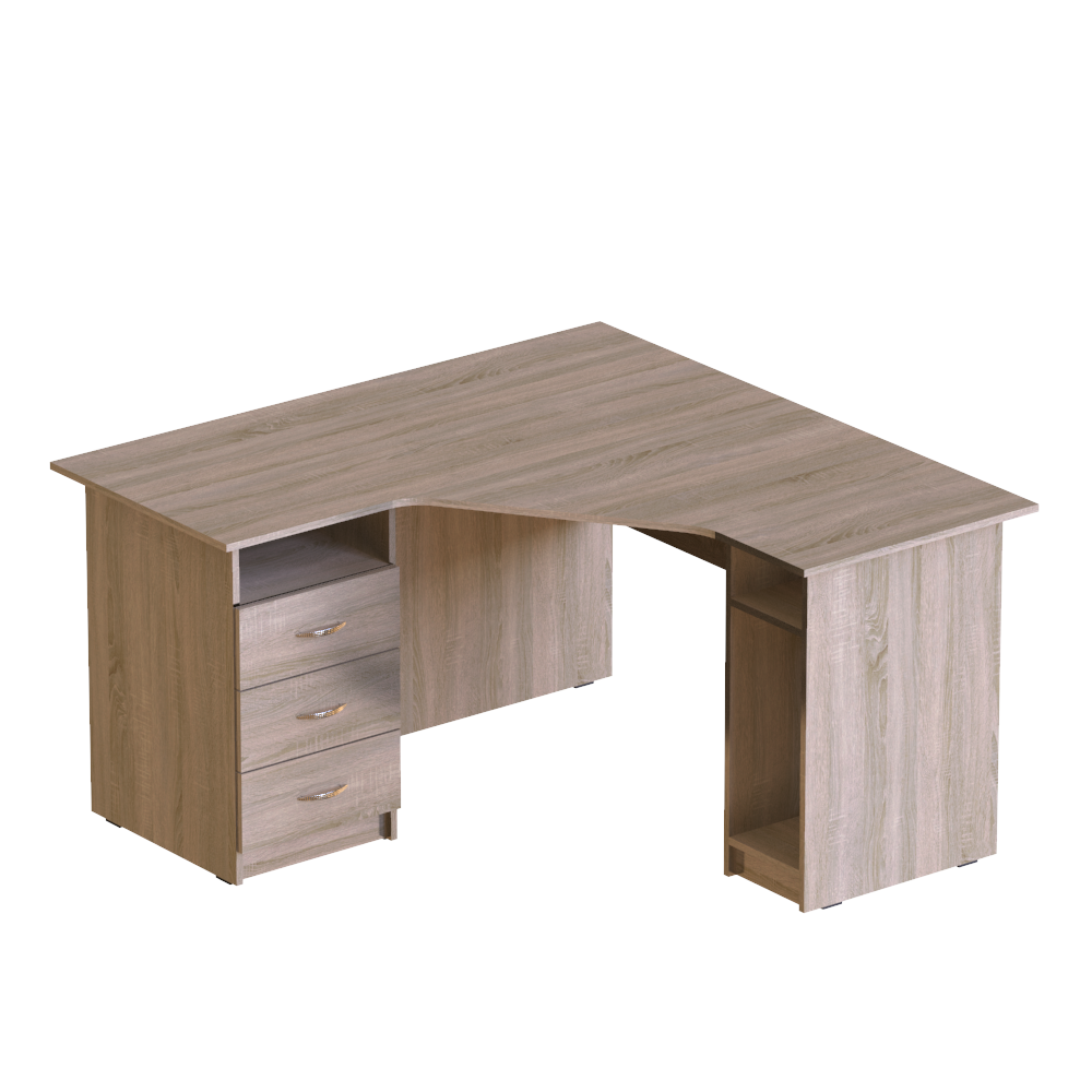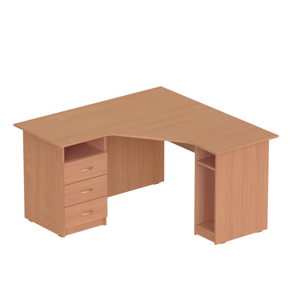 Вместительная и достаточно крупная модель, идеально подходящая для тех, кто хочет купить угловой рабочий стол в офис, кабинет или себе домой. Углы ? наименее недооценённая и наименее рационально используемая часть любого помещения. Заказав удобный угловой стол с вместительными ящиками и нишей для системного блока, можно превратить пустовавший доселе угол в полноценное рабочее место.Характеристики моделиСерия: ?Персонал?.Модели: ?П 624?, ?П 626?, ?П 644?, ?П 646?.Вместительный угловой рабочий стол изготовлен из качественной ламинированной ДСП толщиной 16 мм. Торцы материала покрыты ПВХ-кромкой (толщина кромки столешницы ? 1 мм, кромки остальных элементов ? 0,5 мм). Все использованные для изготовления этой модели материалы являются безопасными и разрешёнными к использованию действующим украинским законодательством.Стул оснащён специальной удобной нишей для системного блока, которая защищает его от ударов и лишних передвижений, и тремя вместительными ящиками с полкой. Со стороны сидящего за столом человека столешница имеет удобный эргономичный вырез, который позволяет сотруднику офиса или ученику, который будет работать за этим столом, расположиться удобно, не напрягая спину.Особенности изделияКлиенты, которым необходимы угловые рабочие столы различных габаритов, могут выбрать одну из перечисленных ниже моделей, с разными габаритными размерами и массой:?П 624?, 1200x1400x750 мм, масса 70 кг,?П 626?, 1200x1600x750 мм, масса 76 кг,?П 644?, 1400x1400x750 мм, масса 77 кг,?П 646?, 1400x1600x750 мм, масса 82 кг.Также клиенты могут выбрать один из двух вариантов взаимного расположения отделения с ящиками и ниши для системного блока ? левый (ящики слева) или правый (наоборот). Стоимость изделия указана без учета сборки стола. Хотите приобрести вместительный, надёжный, достаточно крупный стол для компьютера, который можно удобно расположить в углу помещения ? приобретайте эту модель с доставкой в любую точку Украины!