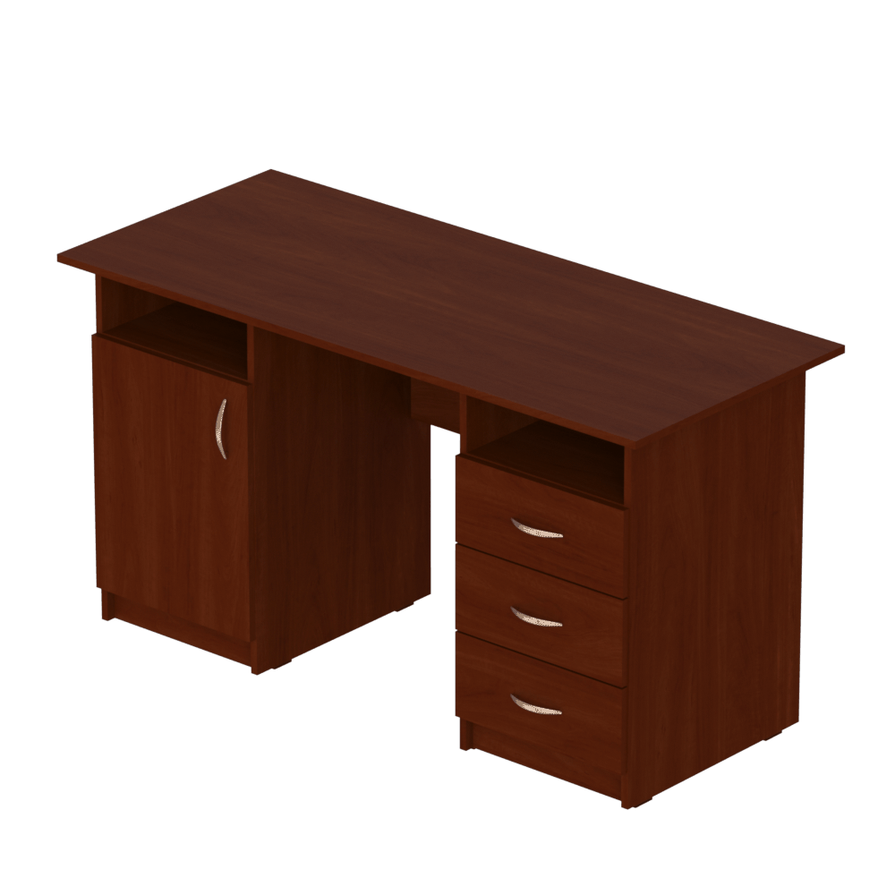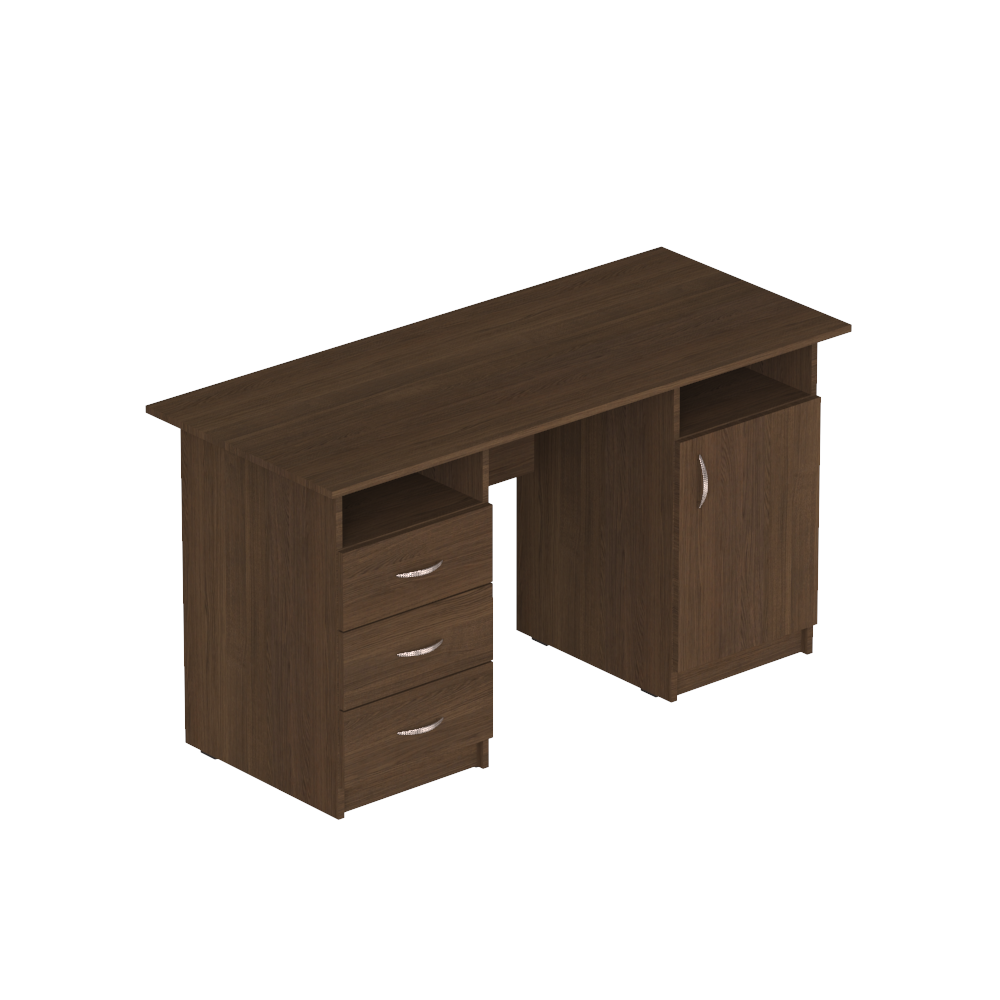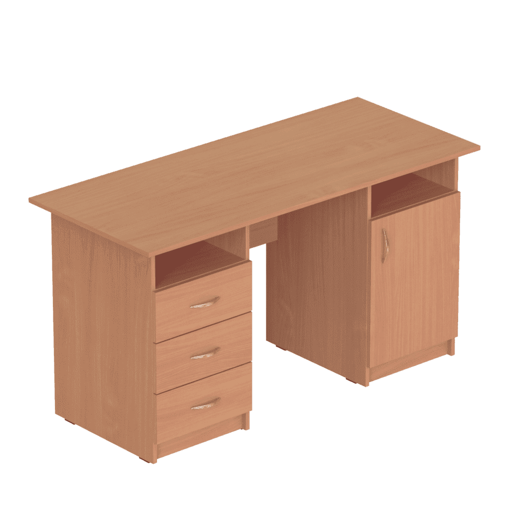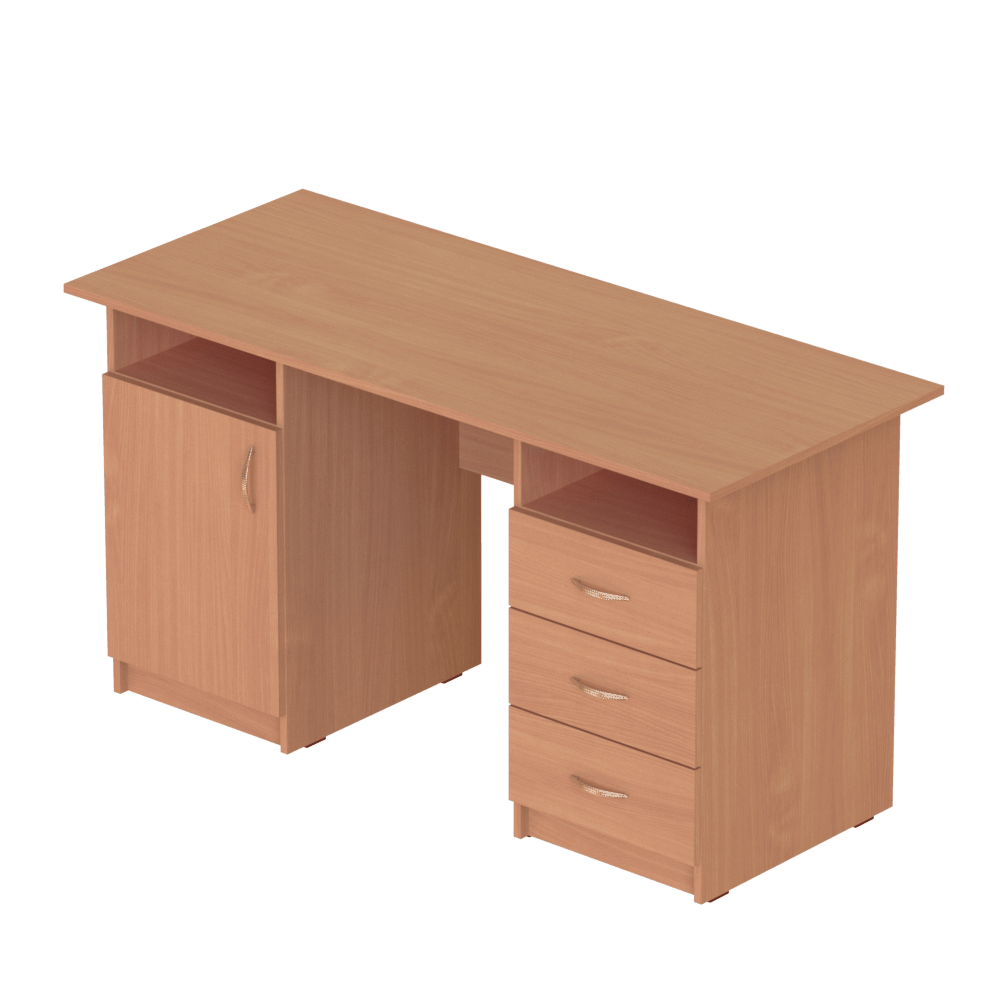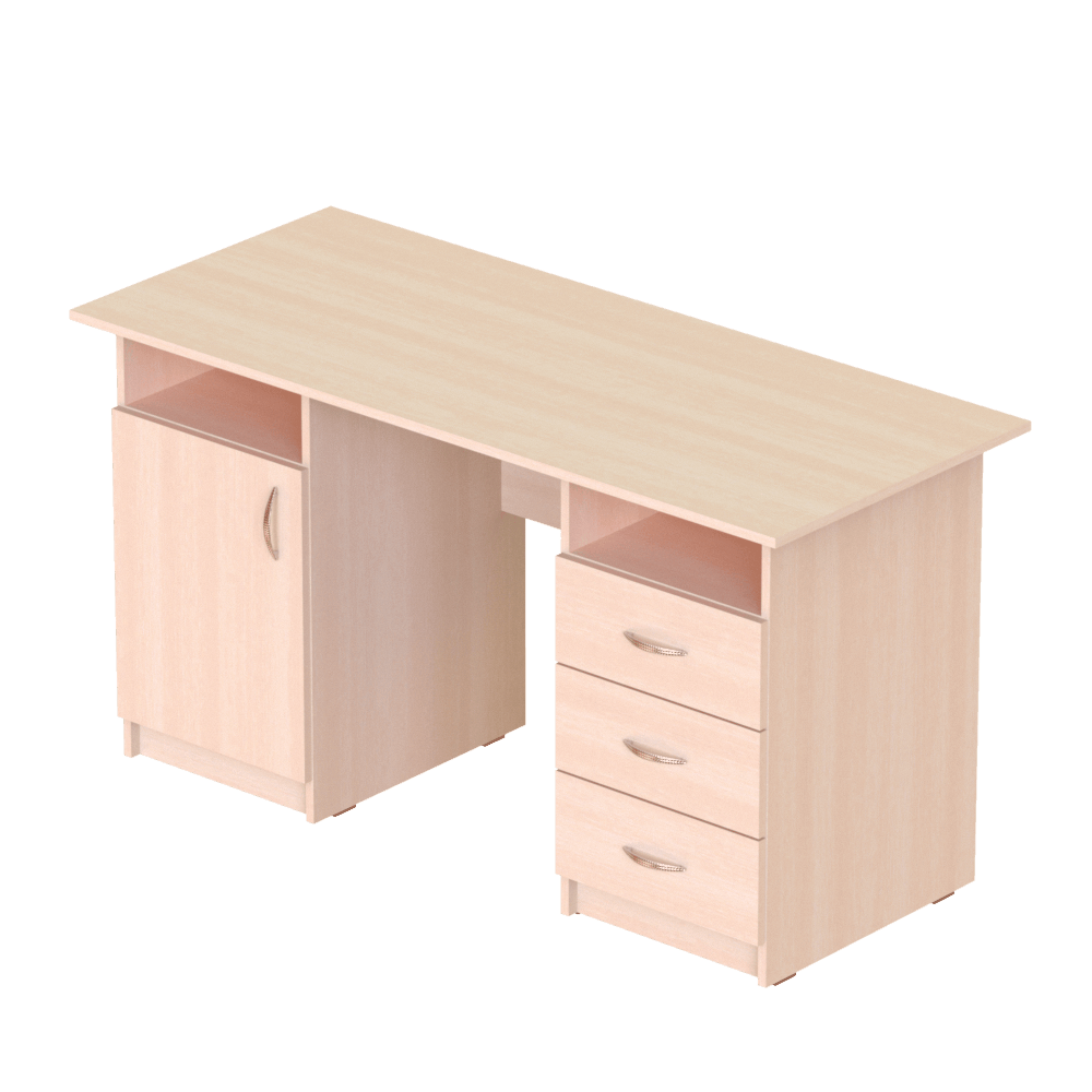 Отличная модель для заказчиков, которым нужно купить письменный стол с тумбой, изготовленный из качественных материалов. Вместительная конструкция с тумбой и ящиками ? идеальный вариант рабочего стола для офисного сотрудника, специалиста, работающего в школе или в другом учебном и государственном учреждении. Конструкция позволяет разместить в столе большое количество документов, личных вещей и других важных принадлежностей, необходимых в работе.Характеристики моделиСерия: ?Персонал?.Модель: ?П 464? и ?П 474?.Стол изготовлен из прочной ламинированной ДСП класса эмиссии формальдегида Е1. Толщина ДСП составляет 16 мм, торцы плиты покрыты ПВХ-кромкой толщиной 1 мм (для столешницы) и 0,5 мм (для стоевых). Масса изделия зависит от габаритных размеров, и наши заказчики могут выбирать один из двух вариантов модели стола:?П 464?, 1400x600x750 мм, масса 60 кг,?П 474?, 1400x700x750 мм, масса 62 кг.Стол оборудован двумя вместительными полками, тумбой и отделением с ящиками.Особенности изделияУдобный письменный стол с полками и ящиками, который изготовлен из на 100% безопасных и прочных материалов. Наши покупатели могут заказать этот стол в двух вариантах исполнения, в которых закрытая тумба может быть расположена слева или наоборот, справа.Универсальный и лаконичный дизайн позволяет этому изделию удачно вписываться в любые варианты дизайна офисных помещений и в интерьеры современных учебных заведений. Как непосредственный производитель, мы предоставляем 12 месяцев гарантии на данное изделие.Если Вы ищете подходящий удобный письменный стол для рабочего кабинета, офиса или государственного учреждения ? заказывайте рабочий стол с тумбой и тремя ящиками подходящих для Вас габаритных размеров! Свяжитесь с нашими менеджерами по любому из номеров, указанных в разделе ?Наши контакты?, если у Вас возникли вопросы по данному товару.