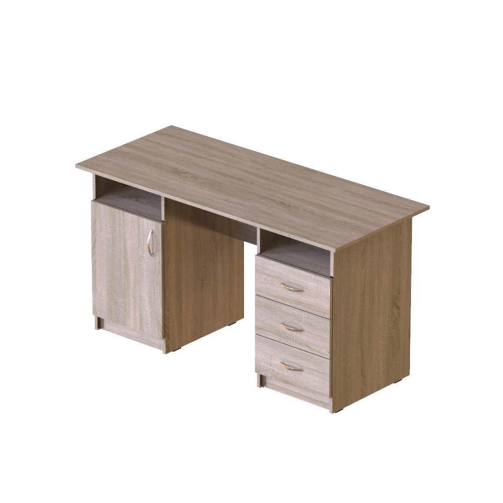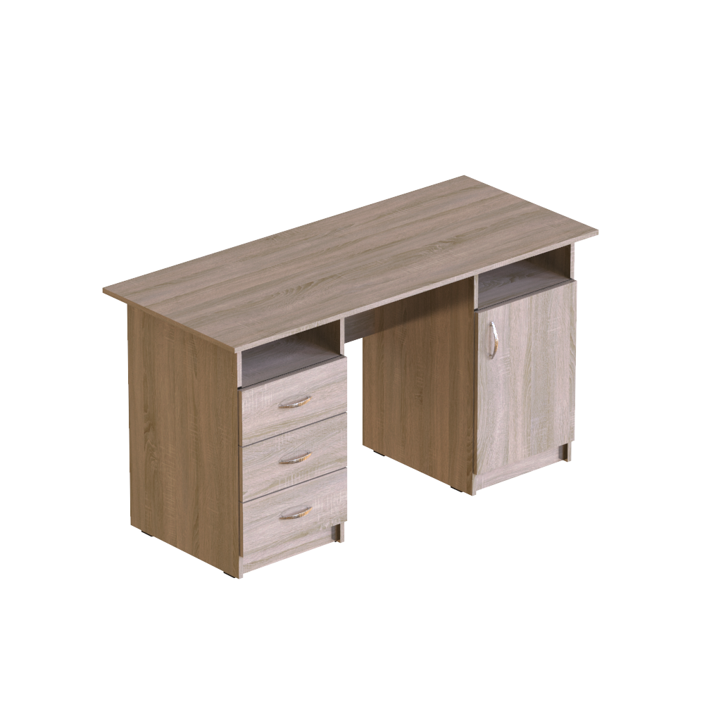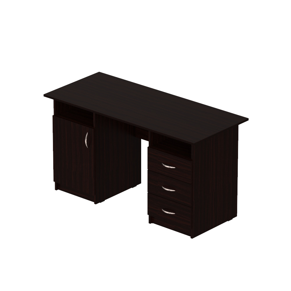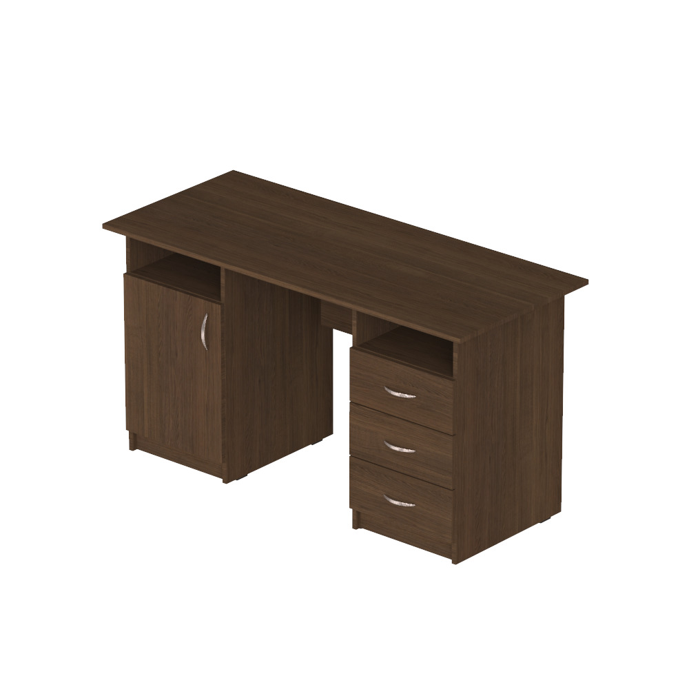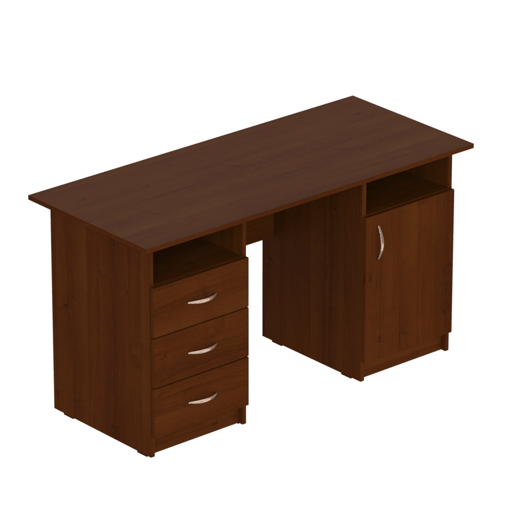 Отличная модель для заказчиков, которым нужно купить письменный стол с тумбой, изготовленный из качественных материалов. Вместительная конструкция с тумбой и ящиками ? идеальный вариант рабочего стола для офисного сотрудника, специалиста, работающего в школе или в другом учебном и государственном учреждении. Конструкция позволяет разместить в столе большое количество документов, личных вещей и других важных принадлежностей, необходимых в работе.Характеристики моделиСерия: ?Персонал?.Модель: ?П 464? и ?П 474?.Стол изготовлен из прочной ламинированной ДСП класса эмиссии формальдегида Е1. Толщина ДСП составляет 16 мм, торцы плиты покрыты ПВХ-кромкой толщиной 1 мм (для столешницы) и 0,5 мм (для стоевых). Масса изделия зависит от габаритных размеров, и наши заказчики могут выбирать один из двух вариантов модели стола:?П 464?, 1400x600x750 мм, масса 60 кг,?П 474?, 1400x700x750 мм, масса 62 кг.Стол оборудован двумя вместительными полками, тумбой и отделением с ящиками.Особенности изделияУдобный письменный стол с полками и ящиками, который изготовлен из на 100% безопасных и прочных материалов. Наши покупатели могут заказать этот стол в двух вариантах исполнения, в которых закрытая тумба может быть расположена слева или наоборот, справа.Универсальный и лаконичный дизайн позволяет этому изделию удачно вписываться в любые варианты дизайна офисных помещений и в интерьеры современных учебных заведений. Как непосредственный производитель, мы предоставляем 12 месяцев гарантии на данное изделие.Если Вы ищете подходящий удобный письменный стол для рабочего кабинета, офиса или государственного учреждения ? заказывайте рабочий стол с тумбой и тремя ящиками подходящих для Вас габаритных размеров! Свяжитесь с нашими менеджерами по любому из номеров, указанных в разделе ?Наши контакты?, если у Вас возникли вопросы по данному товару.