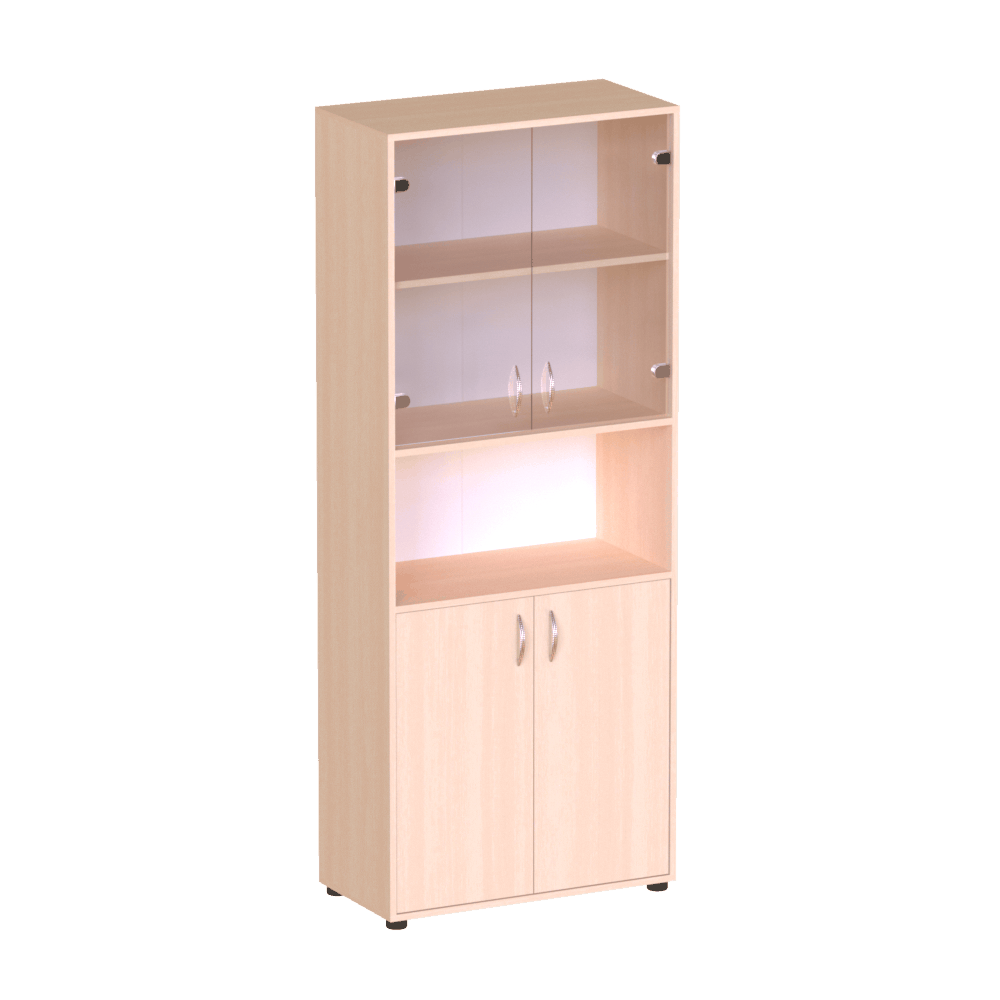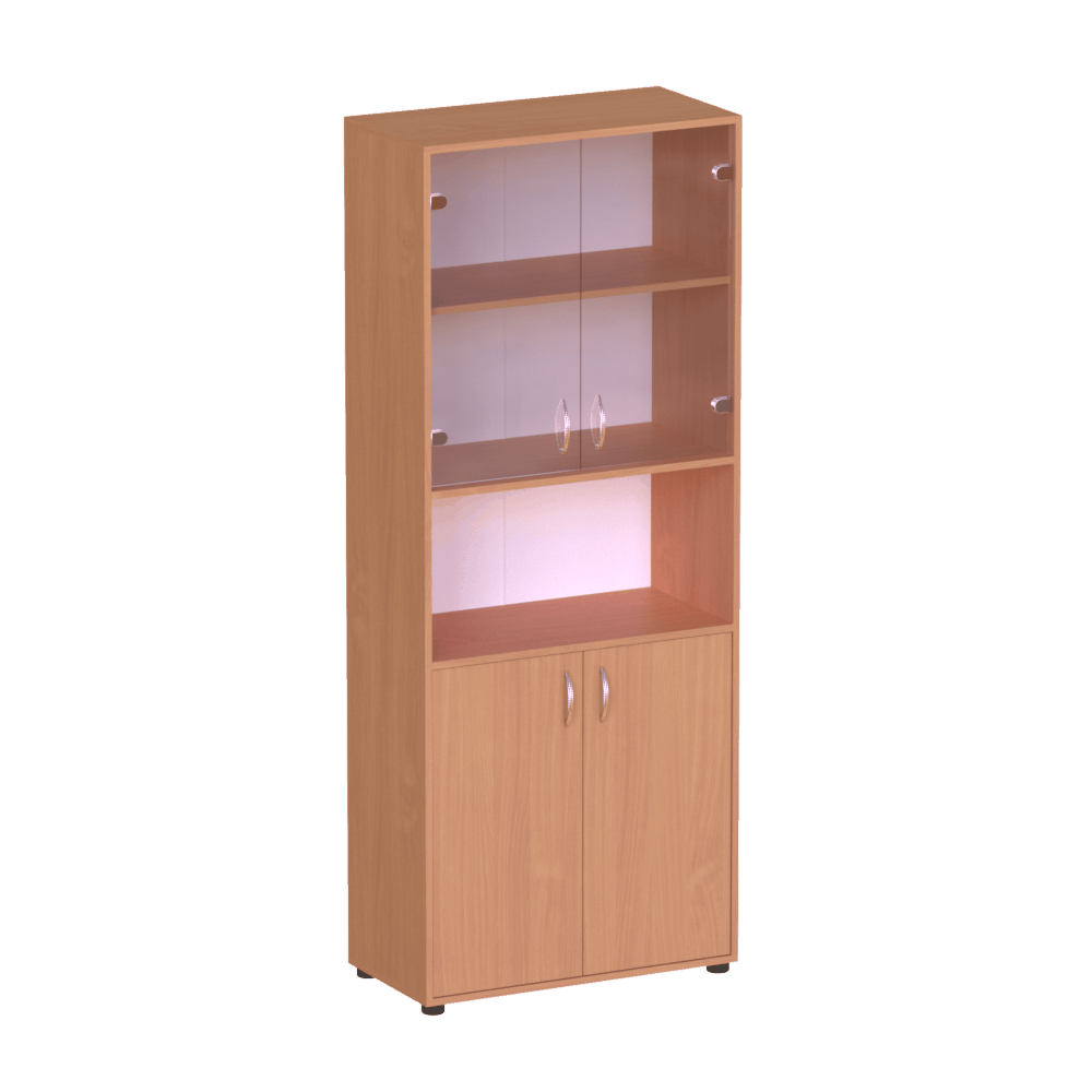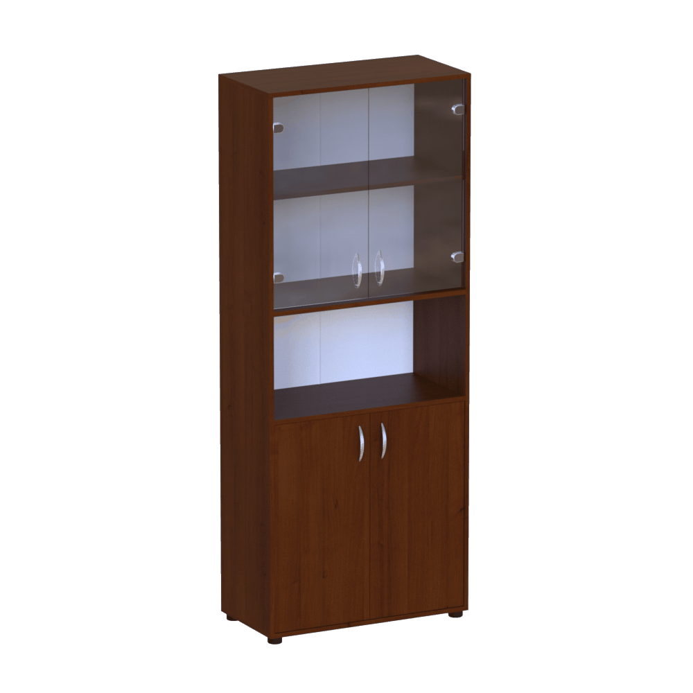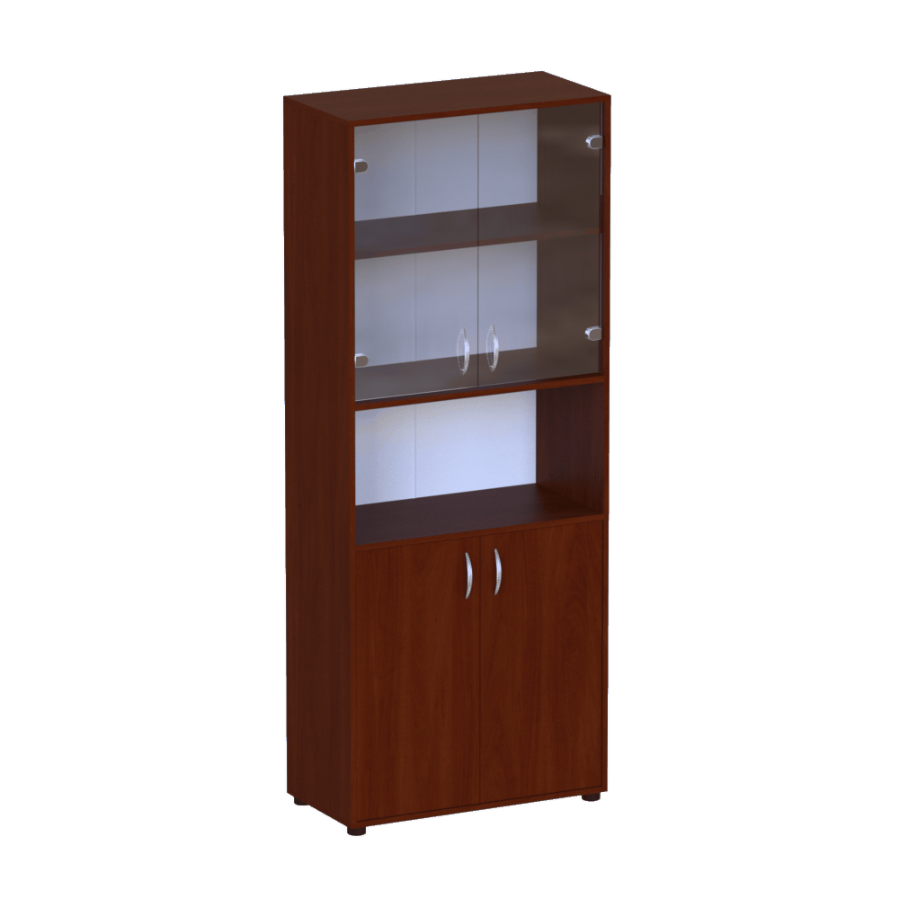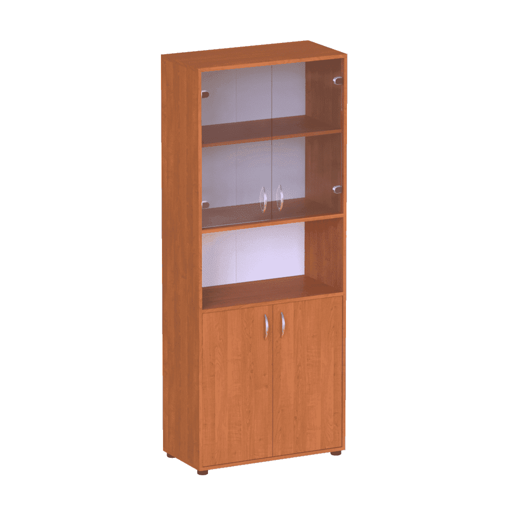 Вместительный и надёжный шкаф для бумаг со стеклом, наполовину закрытый, предназначенный для документации, бумаг и прочих офисных принадлежностей. Из пяти полок шкафа две верхние закрыты стеклом, две нижние ? дверцами из ДСП, а полка, расположенная по середине, остаётся открытой. Удобная модель для офиса, рабочего кабинета, учебного заведения, государственного или коммерческого учреждения.Характеристики изделияСерия: ?Бюджет?.Модель: ?Б 164?, ?Б 174?.Заказчики могут выбрать один из двух вариантов этого шкафа для бумаг со стеклом, с разной массой и габаритными размерами:?Б 164?, 640х320х1850 мм, масса ? 42 кг,?Б 174?, 740х370х1850 мм, масса ? 51 кг.Торцы ЛДСП, из которого изготовлена эта модель, покрыты ПВХ-кромкой толщиной 0,5 мм. Сама ламинированная ДСП имеет толщину 16 мм и относится к материалу класса эмиссии Е1, что делает её на 100% безопасным материалом, разрешённым к использованию для изготовления мебели, которой могут пользоваться даже дети.Особенности и преимущества моделиЭтот удобный шкаф для бумаг со стеклом имеет стильный универсальный дизайн, благодаря которому изделие отлично вписывается в интерьеры современных офисных помещений. Открытые и закрытые полки позволяют удобно расположить документы, бумаги и необходимые в работе вещи в зависимости от того, как часто они требуются сотрудникам.Клиенты могут заказать шкаф для бумаг со стеклом в различных вариантах расцветки ? по умолчанию мы предлагаем одну из шести указанных выше расцветок. Возможно изготовление шкафа из материала другой расцветки, что увеличит стоимость изделия на 10%.Как производитель, мы предоставляем 12 месяцев гарантии на данный товар. Также наши клиенты могут оплатить свой заказ удобным для них способом и получить его в заранее оговоренные сроки. Доставка товаров осуществляется во все регионы нашей страны.