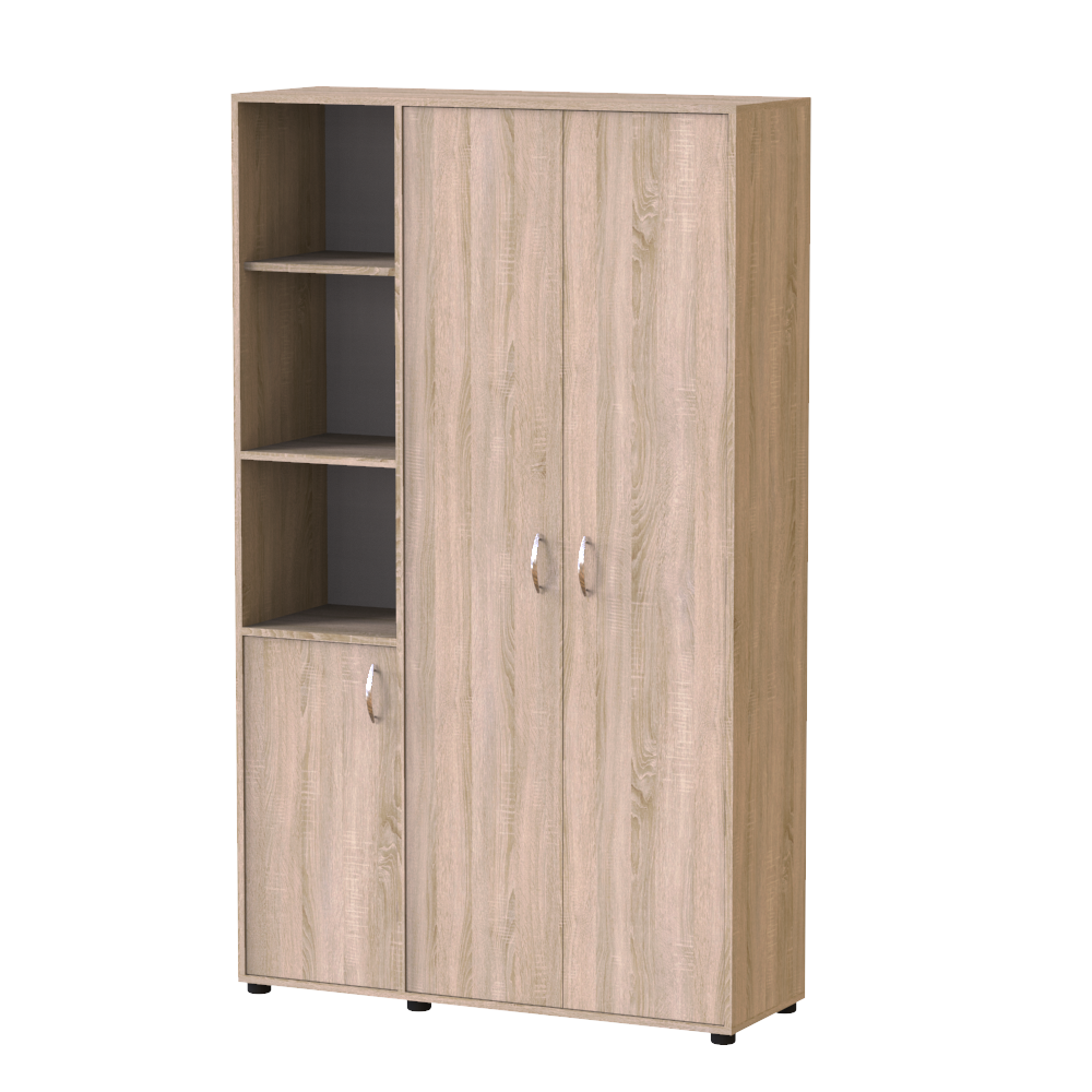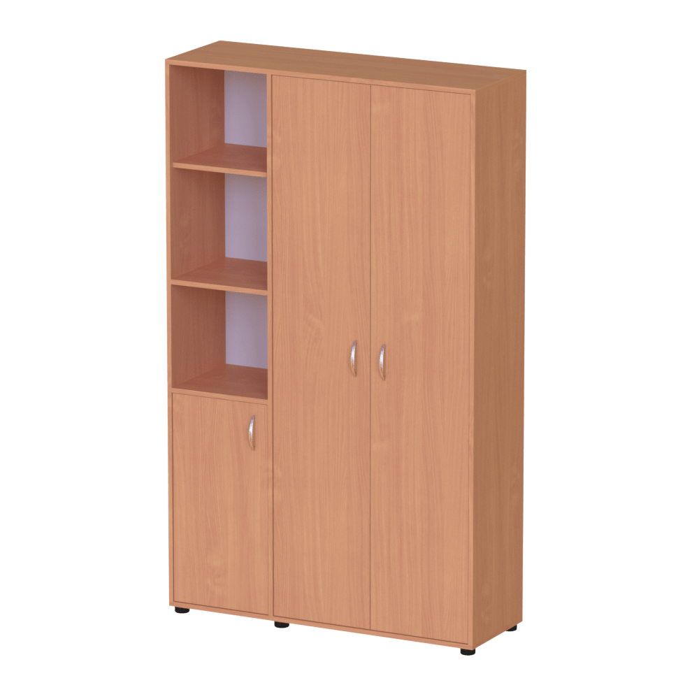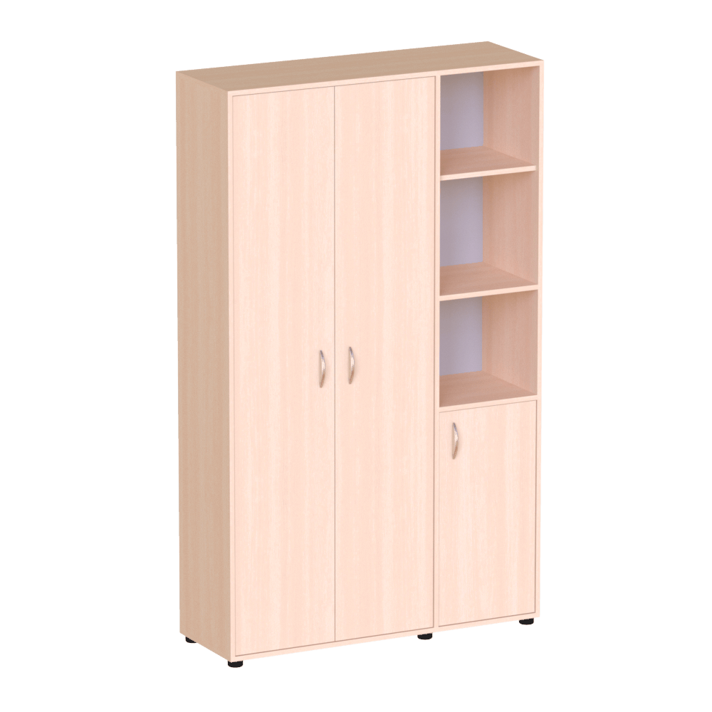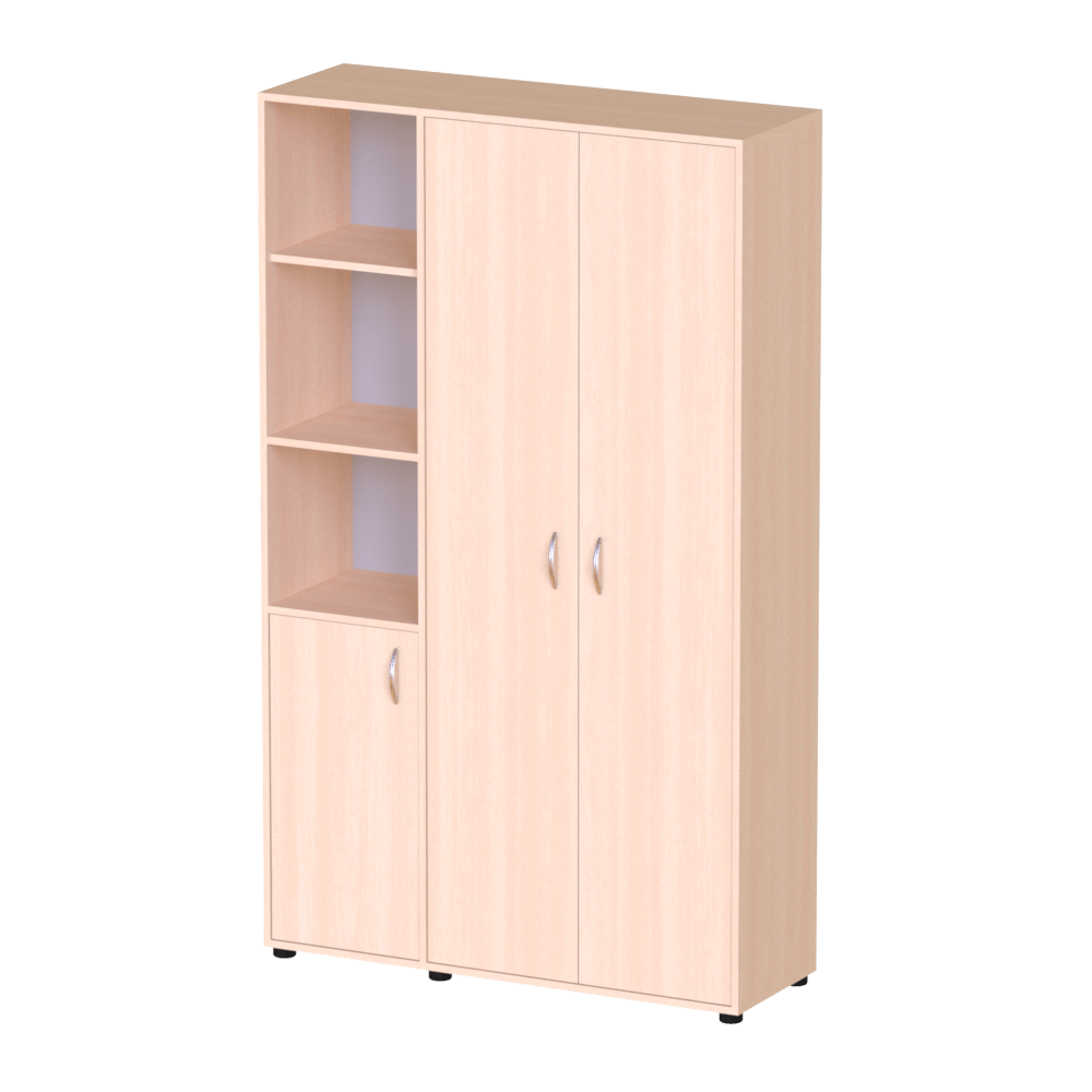 Удобный и многофункциональный комбинированный шкаф для одежды, достаточно компактный и одновременно с тем вместительный. Состоит из большого модуля для верхней одежды, с полкой для головных уборов наверху, и узкого, наполовину закрытого модуля с пятью полками для сумок и мелких личных вещей. Благодаря своему стильному и лаконичному дизайну это изделие хорошо вписывается в самые разнообразные варианты дизайна офисных помещений.Характеристики изделияСерия: ?Бюджет?.Модель: ?Б 191?, ?Б 121?.Данный комбинированный шкаф для одежды доступен в двух вариантах, с различными габаритными размерами и, соответственно, различной массой:?Б 191?, 960х320х1850 мм, масса ? 57 кг,?Б 121?, 1110х370х1850 мм, масса ? 70 кг.Эта модель представляет собой комбинированный шкаф для одежды из ЛДСП, материала класса эмиссии Е1, торцы которого покрыты ПВХ-кромкой толщиной 0,5 мм. Изделие состоит из двух отделений ? для верхней одежды и для мелких вещей. Подходит для комплектации офисных помещений, рабочих кабинетов, учебных заведений.Особенности и преимущества моделиКак и другие похожие комбинированные шкафы для одежды, это модель позволяет удобно разместить достаточно большое количество верхней одежды и личных вещей сотрудников офиса или любого учреждения, в котором будет размещена эта модель.Заказчики могут выбрать подходящий для них тип расцветки ДСП из семи вариантов, предложенных производителем. Можно заказать изготовление этого изделия из других разновидностей ДСП, что увеличит стоимость изделия на 10%. Сроки изготовления шкафа составляют до 35 рабочих дней, в зависимости от того, насколько будет загружено производство на момент оформления и оплаты заказа.Заказывайте эту модель, если хотите приобрести комбинированный двухстворчатый шкаф для одежды, чтобы создать удобное место для хранения вещей Ваших сотрудников!Обратите внимание: при установке шкафа крепление его к стене является обязательным!