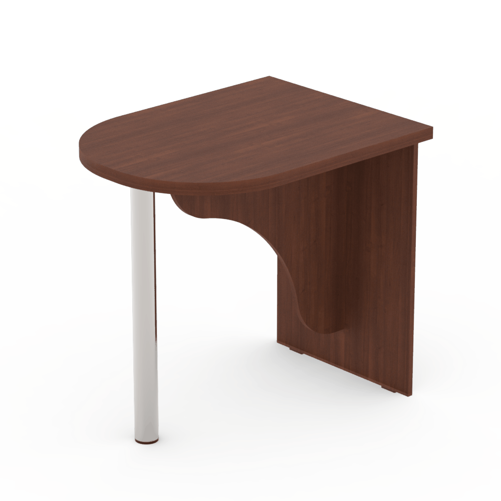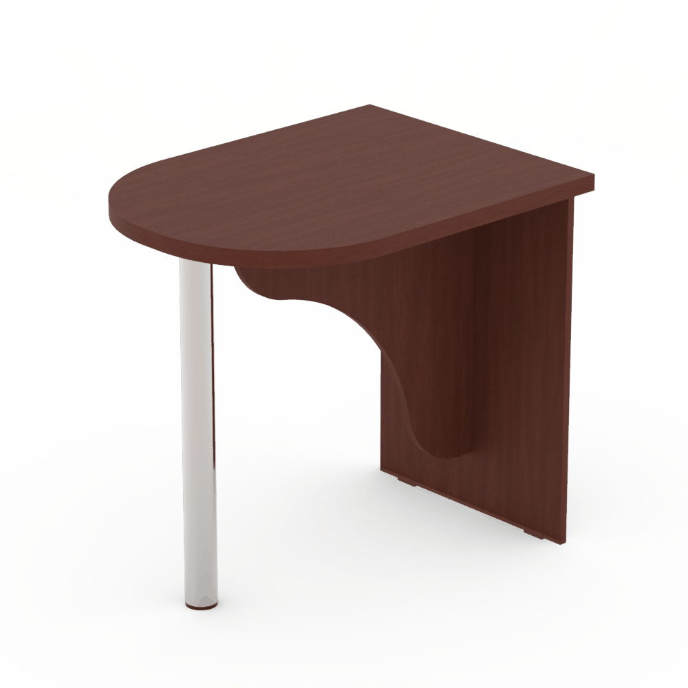 Изящный и качественный приставной стол, предназначенный для использования в кабинетах руководителей, которые проводят совещания или общаются с сотрудниками. Достаточно купить приставной стол, чтобы превратить рабочее место руководителя в импровизированный стол для совещаний, и создать дополнительное пространство для сотрудников и их ноутбуков. Этот приставной элемент отлично подходит по стилистике к столам руководителей, имеющимся в ассортименте нашего интернет-магазина.Характеристика изделияМы предлагаем нашим клиентам купить приставной стол, который мы изготавливаем на заказ. Покупатели могут выбрать понравившуюся модель с устраивающими их габаритными размерами. Для заказа доступны следующие модели:?К 40?: 800x600x750 мм, масса ? 24 кг,?К 41?: 1000x600x750 мм, масса ? 27 кг,?К 42?: 1200x600x750 мм, масса ? 32 кг.Основной материал, из которого изготовлен офисный приставной стол для кабинета руководителя ? ламинированная ДСП класса эмиссии Е1. Толщина ЛДСП столешницы ? 32 мм, других элементов конструкции ? 16 мм. Торцы этого материала покрыты ПВХ-кромкой, толщиной 1 мм для столешницы и 0,5 мм ? для стоевых.Помимо стоевых из ДСП изделие имеет хромированную опору из металла. Снизу конструкции расположены небольшие опоры, изготовленные из пластика, которые предотвращают повреждение напольного покрытия.Особенности и преимущества товараЭта модель отлично вписывается в любой офис, позволяя более полно и рационально использовать пространство помещения.Приставной офисный стол хорошо подходит для того, чтобы расширить имеющееся рабочее пространство, удобно расположить дополнительные документы и технику, расположить за одним столом нескольких сотрудников или посетителей, организовать место для планёрки или совещания. Чаще всего приставной элемент располагается по отношению к основному столу перпендикулярно.Достоинства этого изделия ? компактность, мобильность и удобство. Именно поэтому приставной стол пользуется популярностью среди заказчиков, стремящихся оптимизировать пространство.Гарантийный срок эксплуатации изделия составляет 12 месяцев.Цена товара указана без учёта стоимости сборки.