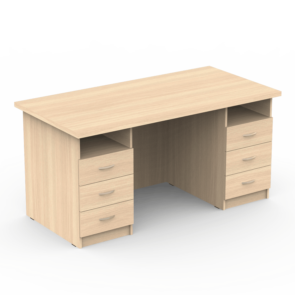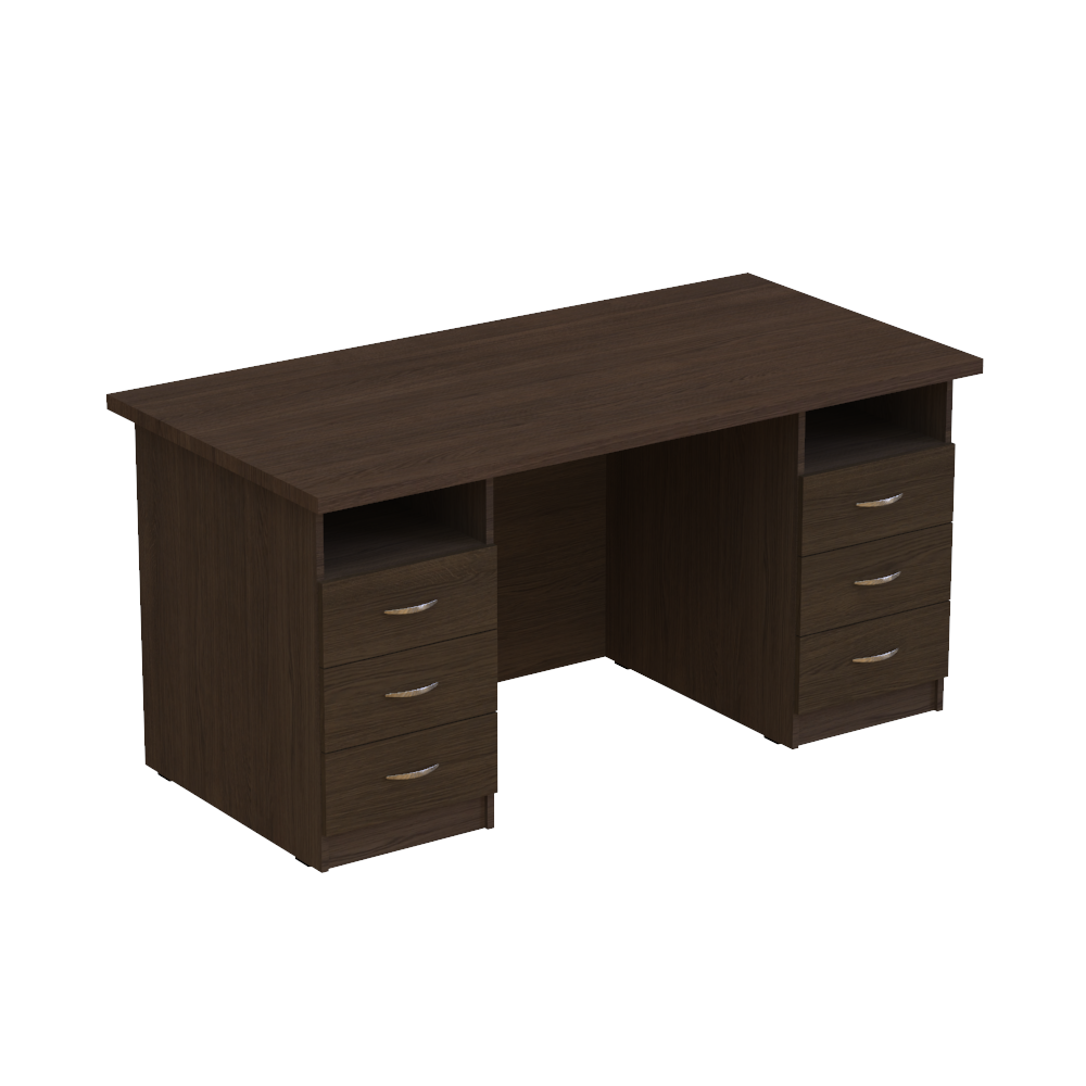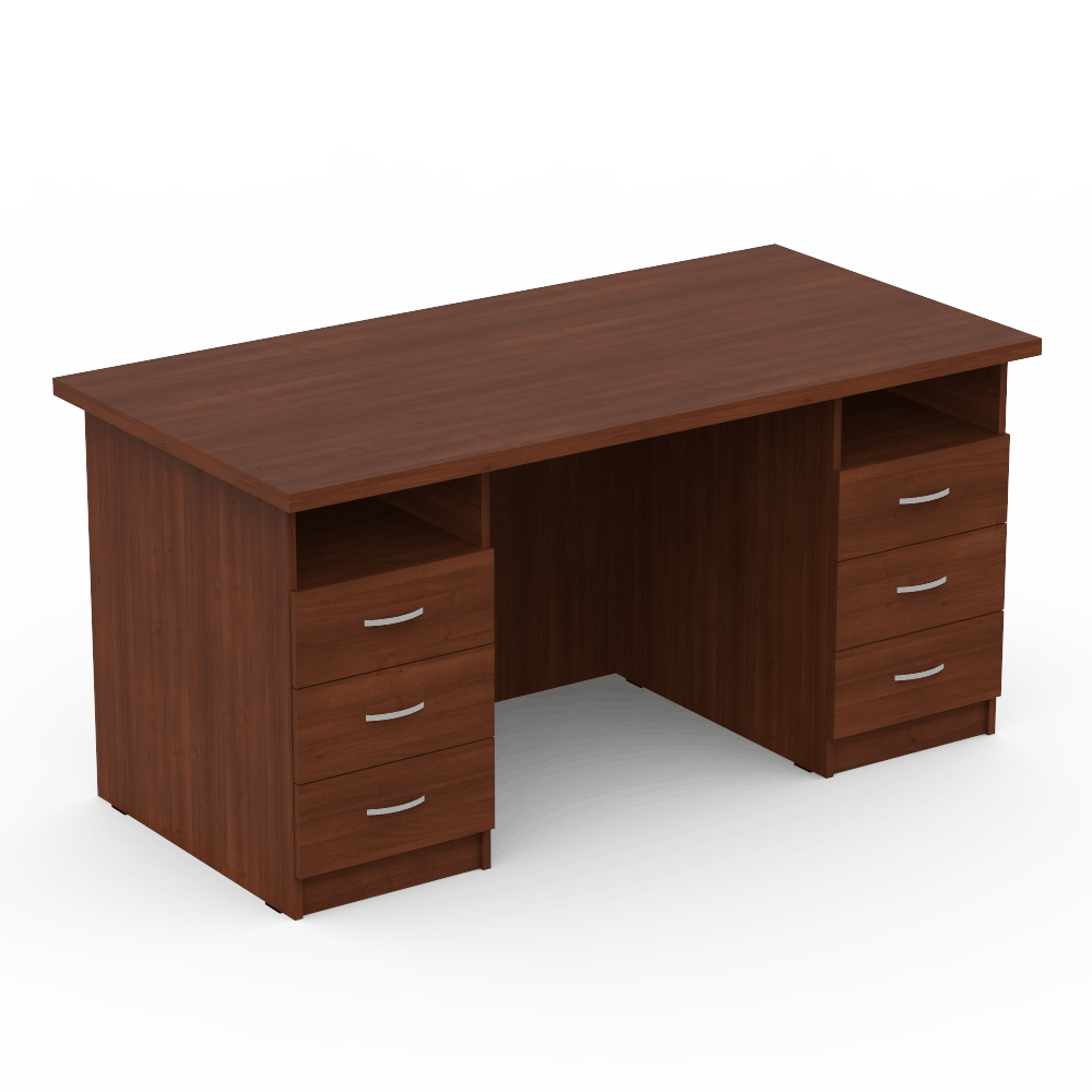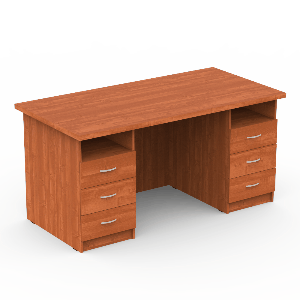 Подбирать стол руководителя всегда важно с оглядкой на стиль интерьера, в котором его предполагается разместить. Интерьер помещения может быть пафосным, украшенным множеством дорогих вещей, или же напротив, простым и лаконичным, презентующим стиль управления руководителя как демократичный. Поэтому так важен стол для руководителя, который должен быть не только удобным, но и помогающим создать для посетителей ощущение значимости руководителя, его платежеспособности и уверенности в своих силах.Этот письменный стол для руководителя ? модель, которая соответствует всем требованиям, предъявляемым к такого рода мебели. Вы можете заказать его на нашем сайте с доставкой в любой регион Украины!Характеристики изделияМодель: ?К 3?.Клиенты, которым нужно купить стол в кабинет руководителя, могут приобрести в нашем интернет-магазине эту модель, изготовленную только из качественных и безопасных материалов. Основной материал ? ламинированная ДСП класса эмиссии Е1, толщиной 32 мм для столешницы и 16 мм ? для всех остальных элементов конструкции. Торцы ЛДСП покрыты кромкой, сделанной из ПВХ, толщиной 1 мм для столешницы и 0,5 мм для остальных элементов.Эта модель выглядит достаточно серьёзно и солидно, как и другая офисная мебель от нашей компании, и отлично сочетается с другими образцами мебели, составляя единый ансамбль.Габаритные размеры изделия ? 1600х800х780 мм, масса ? 115 кг.Преимущества и особенностиКак производитель, мы предлагаем самые удобные для покупателей цены на продукцию собственного производства, поэтому данная модель отлично подходит желающим заказать стол для руководителя дешево, оформив заказ на нашем сайте.Ещё один веский повод купить рабочий стол руководителя модели ?К 3? ? его вместительность, наличие двух отделений с ящиками, с левой и с правой стороны. Гарантийный срок эксплуатации изделия, как и другой корпусной мебели, составляет 12 месяцев.Обратите внимание: цена на этот товар указана без стоимости сборки.