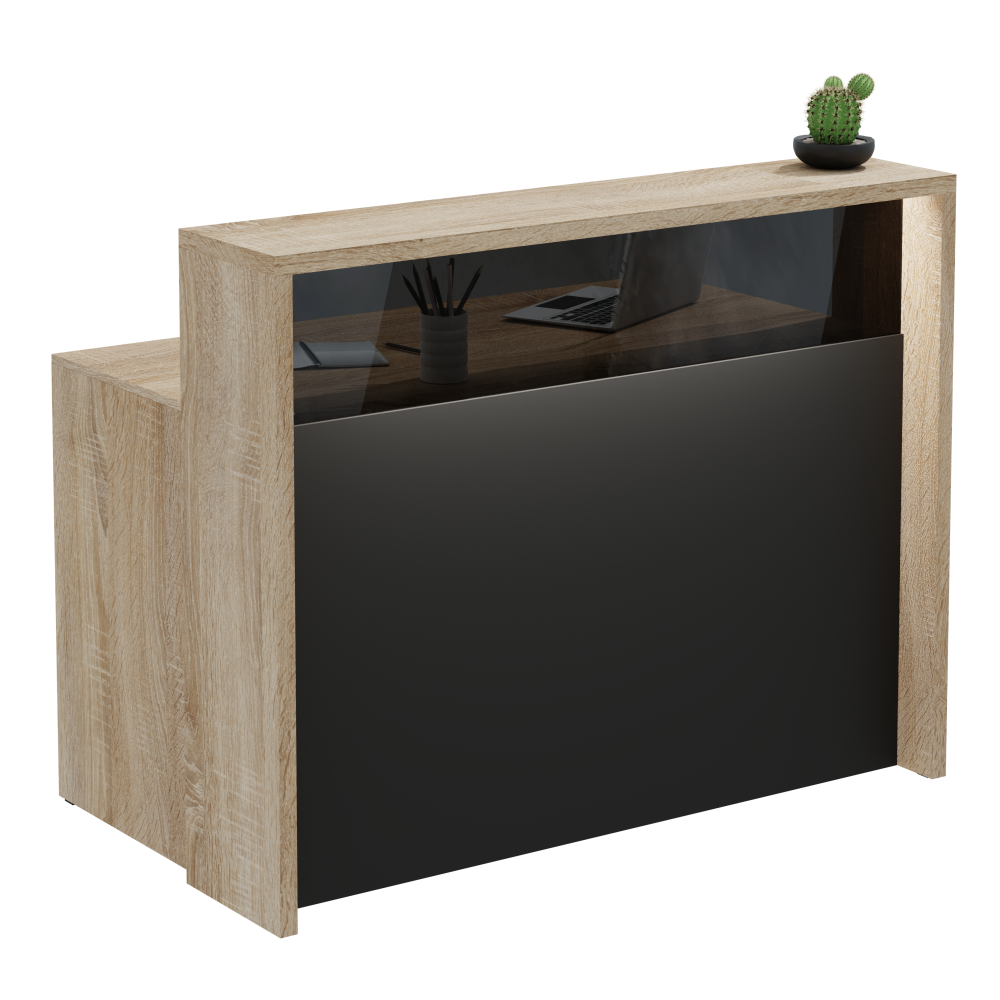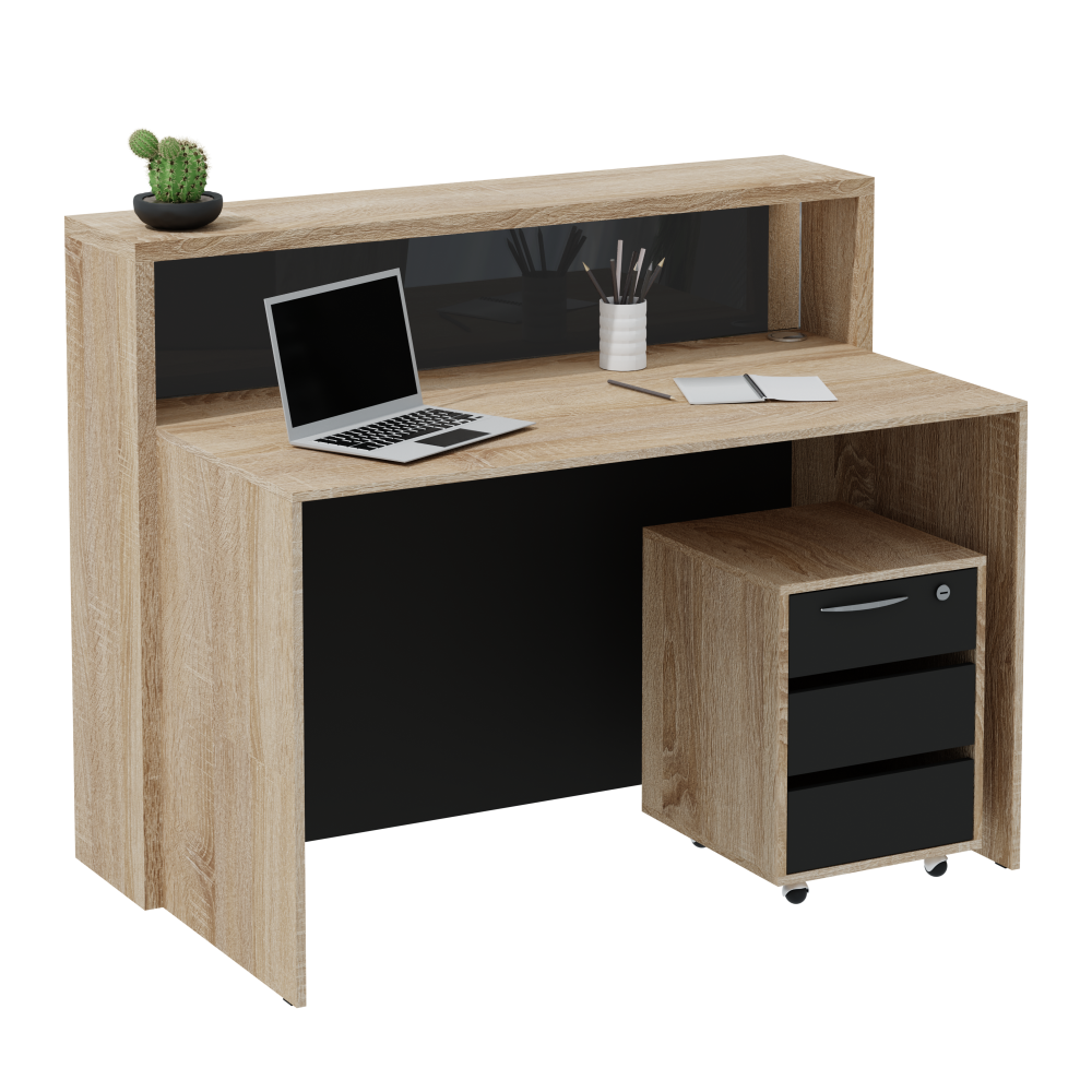 Презентабельный внешний вид и функциональность зоны ресепшн, безусловно важны, ведь оформление приемной напрямую влияет на имидж компании. Модель ?Орион? ? это современное дизайнерское решение для организации комфортного рабочего места администратора и зоны для приема посетителей. За счет своего дизайна и использования качественных материалов, смотрится престижно в холле любой организации, салона или магазина.Главные характеристики изделия Габариты модели: 1400х810х1100 мм.Дополнительно имеет тумбу с тремя выдвижными ящиками, один из которых закрывается на ключ ? предусматривает хранение ценных документов, кассового аппарата, денег.Корпус выполнен из износостойкого и надежного ДСП в цвете ?Дуб Сонома/Антрацит?, стекла в цвете ?Бронза?, толщиной 6 мм.На удобной столешнице с надставкой разместится вся необходимая документация, канцелярия, оргтехника.Имеет заглушку электро-разъема ? позволяет аккуратно расположить провода, избегая перегибов и заломов, а также сделать рабочую зону более комфортной.Мобильная тумба имеет резиновые ролики, которые не царапают пол. Пластиковые ножки-гвоздики ресепшн защищают пол от повреждений.Оформление заказа в нашем интернет-магазинеМы предлагаем вам купить ресепшн по оптимальной цене с удобными вариантами оплаты и доставкой во все регионы Украины. Оплата товаров осуществляется наличным и безналичным платежом. Чтобы оформить покупку, перейдите в раздел ?Корзина? и заполните бланк заказа. Если у вас возникнут вопросы, обратитесь к нашим менеджерам по телефонам, которые указаны на сайте.
