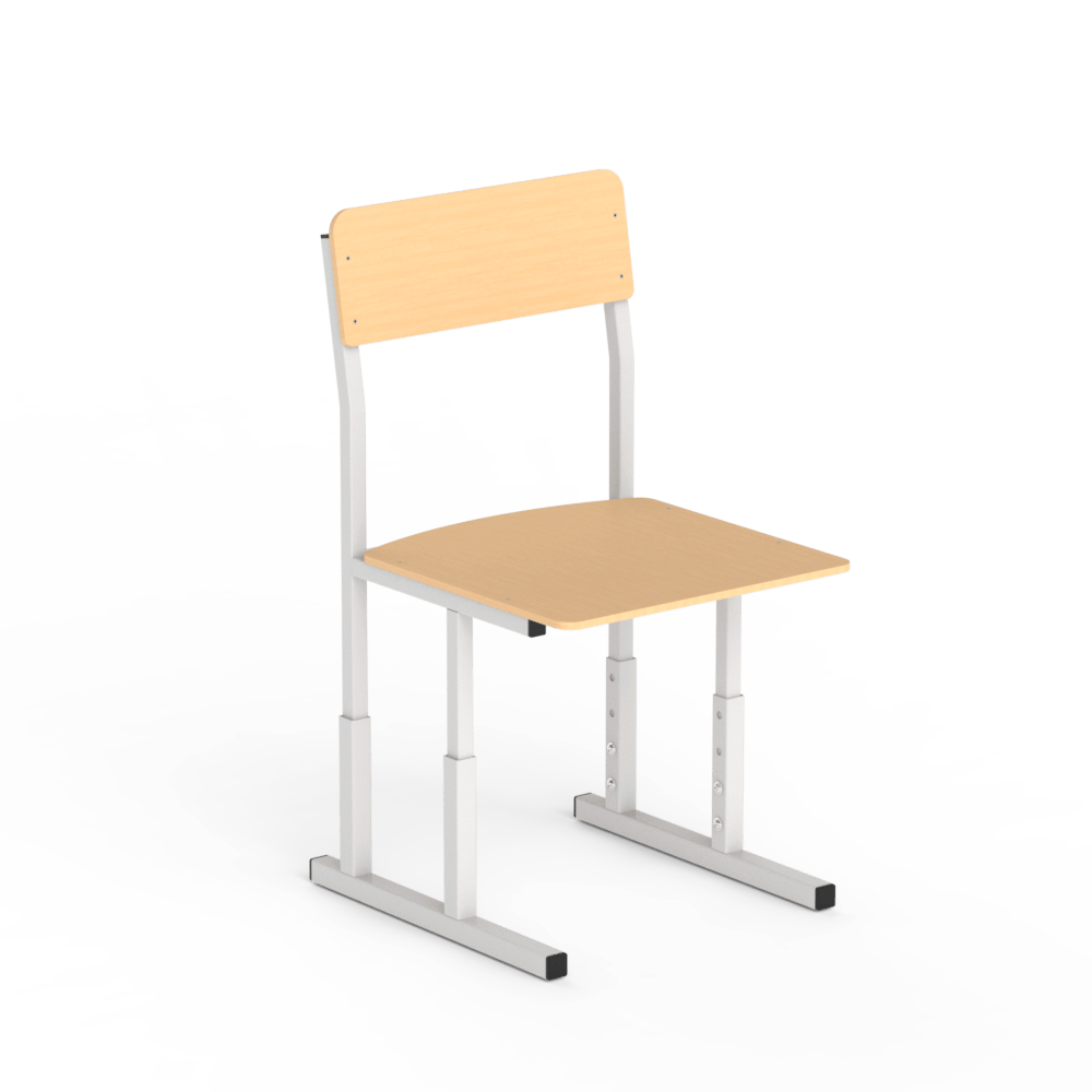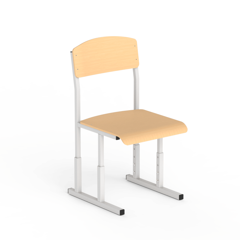 Отличная модель для заказчиков, которым необходимо купить регулируемый школьный стул из прочных, качественных материалов. Стул является модификацией другой похожей модели без регулировки высоты. Заказчик может выбрать один из двух вариантов материала для сидения и спинки ? приобрести модель из ровной или гнутой фанеры.Характеристики изделияОснова конструкции стула ? металлический каркас, цельносварный, из трубы квадратного сечения размером 20х20 и 25х25 мм. Каркас окрашен порошковой краской высокого качества, безопасной и качественной, которая надёжно предохраняет конструкцию от коррозии. Заказчики могут самостоятельно выбрать желаемый цвет краски из предложенных выше производителем.Спинка и сидение стула могу быть сделаны из прочной ровной фанеры толщиной 8 мм, или из гнутой фанеры толщиной 10 мм, на выбор заказчика. Все материалы, которые были использованы для создания этой модели, являются безопасными и разрешёнными к использованию в мебели, которой пользуются дети.Особенности и преимущества моделиЗаказчики, которым необходимо купить регулируемый школьный стул, могут заказать это изделие в двух вариантах ? регулируемом на высоту сидения 640, 710 и 760 мм, для четвёртой, пятой и шестой ростовых групп, или на высоту 710, 760 и 820 мм, для пятой, шестой и седьмой ростовых групп.Высоту стула можно изменять по мере роста ребёнка, обеспечивая учащемуся удобную посадку. Такие стулья удобно комбинировать с похожими партами, также обладающими возможностью регулировки высоты.Стильный дизайн ? ещё одно преимущество этой модели, благодаря которому стул легко вписывается в интерьер любого современного учебного заведения. Заказывайте эту модель, чтобы оборудовать учебный кабинет удобными, прочными и долговечными стульями!