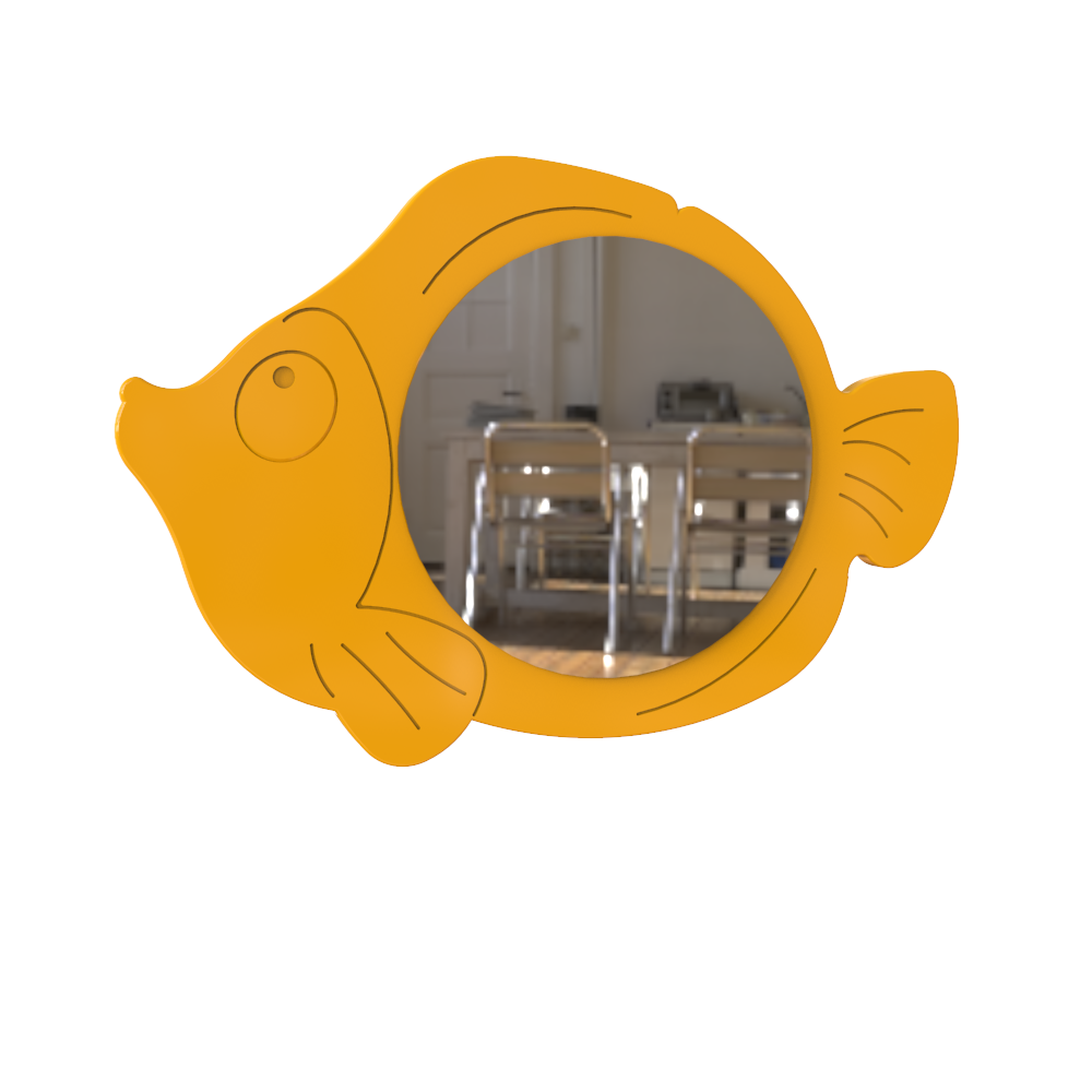 Красивое зеркало из МДФ, предназначенное для комплектации спортзалов детских садов, бассейнов, спортивных кружков и секций, а также других заведений и учреждений, предназначенных для дошкольников.Зеркало выполнено в яркой расцветке, с накладкой, сделанной из МДФ, в виде рыбы, украшенной декоративной фрезеровкой.Характеристики зеркала из МДФ ?Морская волна?:зеркало изготовлено в игровом дизайне, изящной декоративной накладкой,диаметр зеркала составляет 390 мм, толщина подложки ? 16 мм.все использованные для изготовления данной модели материалы ? соответствующие требованиям ДСТУ, безопасные и обладающие необходимыми заключениями санитарных органов.Особенности и преимущества моделиЭто зеркало можно комбинировать с другими предметами мебели, изготовленными в той же морской стилистике, создавая оригинальный интерьер, выдержанный в едином стиле.Мебель, окружающая ребёнка на ранних этапах его социализации, должна помогать создавать дружественную для ребёнка, интересную и красивую обстановку, вызывающую желание снова и снова возвращаться в детский сад.Стильный, на 100% уникальный дизайн ? неоспоримое преимущество этого изделия, которое делает его уникальным.Зеркало ?Морская волна? можно вытирать влажной тряпкой, и мыть средствами, предназначенными для очистки зеркал.Зеркало для спортзала ?Морская волна? стоит недорого в нашем интернет-магазине. Как производитель, мы предлагаем самые невысокие цены, также мы предоставляем гарантию на срок в 12 месяцев на наши изделия.