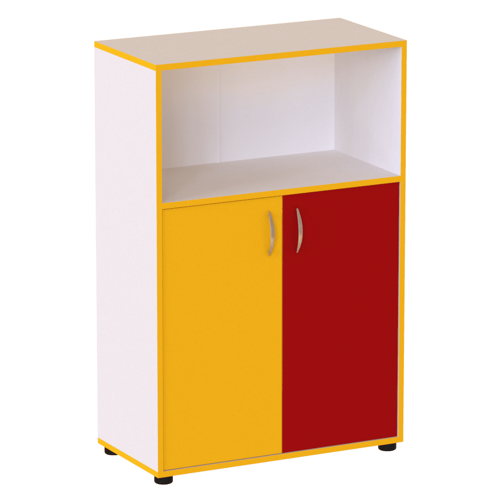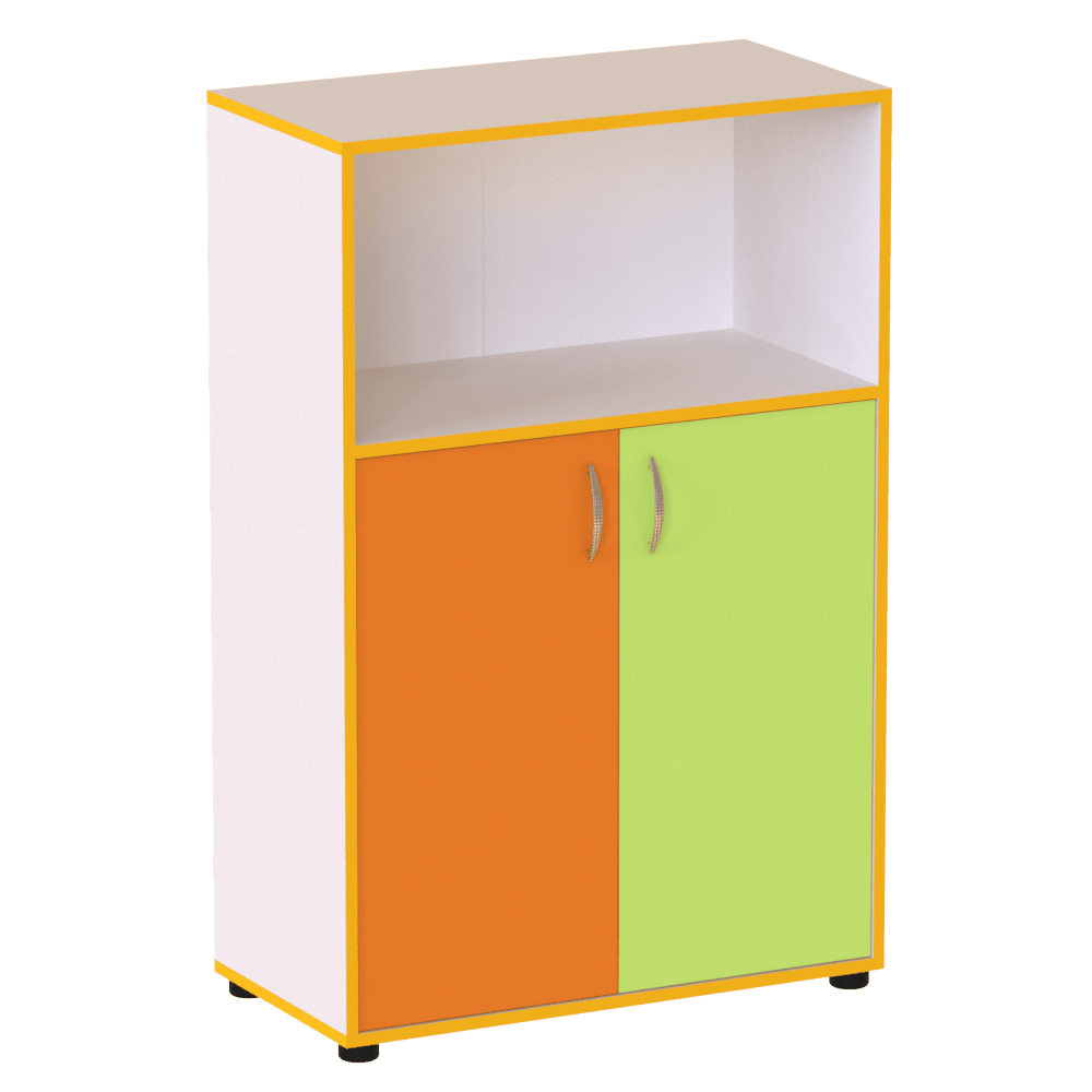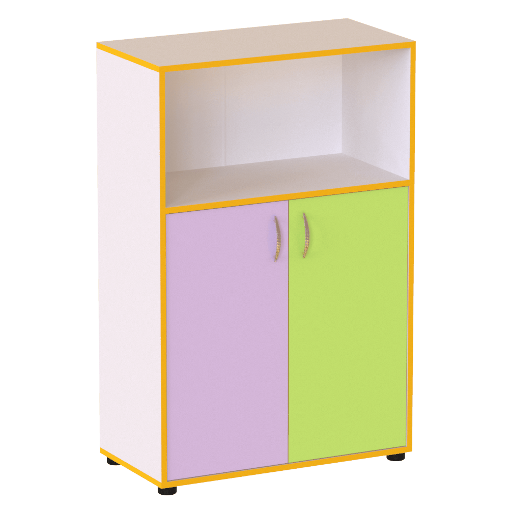 Невысокий, компактный детский шкаф, состоящий из трёх полок ? верхней открытой и двух нижних, закрытых дверцами, изготовленными из ДСП. Это изделие отлично вписывается в самые разнообразные интерьеры детских дошкольных учебных заведений. Снизу располагаются опоры из пластика, высота которых регулируется, чтобы нивелировать неровности пола. Опоры также позволяют предупредить повреждение напольного покрытия.Характеристики изделияМодель: ?М 91?.Наши клиенты могут купить детский шкаф из ламинированной ДСП толщиной 16 мм. Торцы этого материала класса эмиссии Е1 покрыты кромкой, изготовленной из ПВХ, чтобы предупредить повреждение одежды или появления ссадин у людей, которые пользуются мебелью и могут цепляться за элементы конструкции.Масса полностью собранного изделия составляет 25 кг. Габаритные размеры конструкции ? 600х320х960 мм.Особенности и преимуществаПокупатели, которые хотят заказать детский шкаф, могут выбрать расцветку этого изделия. Мы предлагаем на выбор восемь вариантов, включая шкафы с красивыми и яркими фасадами. Кромка из ПВХ, которой покрыты торцы изделия, может быть однотонной по отношению к основной расцветке ДСП, или иметь контрастный по отношению к плите ДСП яркий жёлтый цвет.Это изделие можно использовать в сочетании с другой мебелью из этой же серии, с подходящими габаритными размерами. В этом шкафу можно хранить игрушки, поделки, изготовленные детьми, учебники и методические пособия.Гарантийный срок эксплуатации для этого шкафа в детский сад составляет 12 месяцев, как и для других образцов корпусной мебели из нашего ассортимента. Для того, чтобы расположить вещи, к которым должен быть обеспечен постоянный доступ, можно использовать открытую полку или верхнюю поверхность этой конструкции.Цена изделия указана без учёта стоимости сборки.