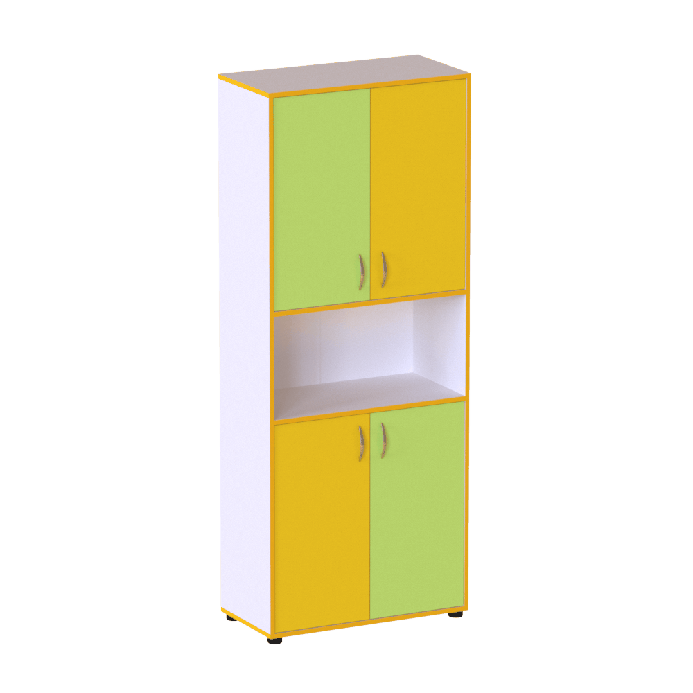 Удобный детский шкаф, который можно использовать как в детских дошкольных учебных заведениях, так и в школах. Конструкция опирается на регулируемые опоры, изготовленные из пластика, которые позволяют предотвратить повреждение поверхности пола. Изделие имеет два закрытых отделения сверху и снизу, а также открытую полку в середине шкафа, предназначенную для вещей, которые должны быть в быстром доступе.Характеристики изделияМодель: ?М 152?.Предлагаемый нашей компанией-производителем шкаф в детский сад изготовлен из ламинированной ДСП, толщиной 16 мм. Торцы этого материала класса эмиссии Е1 покрыты ПВХ-кромкой толщиной 0,5 мм. Универсальная модель для наших клиентов, желающих заказать шкаф в детский сад с доставкой в любой регион нашей страны. Это изделие будет уместно смотреться в любом интерьере современного детского сада.Заказчики могут выбрать желаемую расцветку из восьми различных вариантов, предлагаемых нашим интернет-магазином. Габаритные размеры модели составляют 600х320х1570 мм, масса полностью собранного изделия ? 38 кг.Преимущества и особенностиКлиенты, которым нужно купить детский шкаф, могут заказать модель яркой расцветки, с ПВХ-кромкой жёлтого цвета, с яркими фасадами жёлтого, синего, голубого и других цветов. Такая яркая, красивая мебель позволяет создать для детей комфортную и красивую обстановку в помещении, в котором они учатся или играют. Этот детский шкаф можно комбинировать с другой мебелью из этой же серии, подходящей по габаритным размерам.Наши покупатели могут заказать детский шкаф нужной им расцветки ? сроки его изготовления зависят от текущей загрузки производства, и оговариваются менеджером при обработке каждого конкретного заказа. Гарантийный срок эксплуатации этого шкафа для детского сада, как и другой корпусной мебели, составляет 12 месяцев.Обратите внимание: цена товара указана без учёта стоимости сборки.