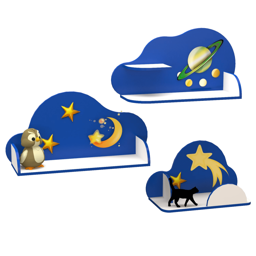 Стильная настенная полка в детскую, с уникальным дизайном, разработанным нашими лучшими специалистами. Несмотря на обилие похожих конструкций, именно настенные полки являются популярными и практичными вариантами для детских комнат. Неоспоримое преимущество этой модели ? простота монтажа, минимальное использование свободного пространства комнаты под эту конструкцию, а также возможность более полно и рационально использовать место в помещении.Характеристики изделияУдобная, прочная и надёжная полка для детской комнаты ?Ночь? изготовлена из ДСП толщиной 16 мм. Торцы этого материала обработаны ПВХ-кромкой толщиной 0,5 мм. Мы предлагаем купить настенную полку в одном из трёх вариантов исполнения, с различными элементами художественного оформления, разными габаритными размерами и массой:?Ночь ? Комета?: 670х284х410 мм, масса 6 кг,?Ночь ? Месяц?: 880х250х420 мм, масса 7 кг,?Ночь ? Планета?: 900х250х420 мм, масса 8 кг.Преимущества и особенности моделиЭти полки от производителя предлагаются покупателям по невысоким расценкам, что делает их доступными для самой широкой аудитории заказчиков. Клиенты, которые хотят заказать настенные полки, могут с их помощью рационально использовать имеющееся в их распоряжении пространство помещения, украсить стены, получить возможность удобно расположить в комнате небольшие вещи.Покупатели, которых интересуют настенные полки от производителя, могут быть уверены в качестве и безопасности использованных для создания этой модели материалов. Все они имеют необходимые заключения санитарных контролирующих органов и разрешены к использованию в производстве мебели для маленьких детей.Благодаря оригинальному изящному дизайну эта настенная полка может освежить своей красотой уже существующий интерьер, она помогает создать интересную для ребёнка обстановку в его комнате.Гарантийный срок эксплуатации изделия составляет 12 месяцев.Обратите внимание: в стоимость изделия не входит цена услуг по его сборке.