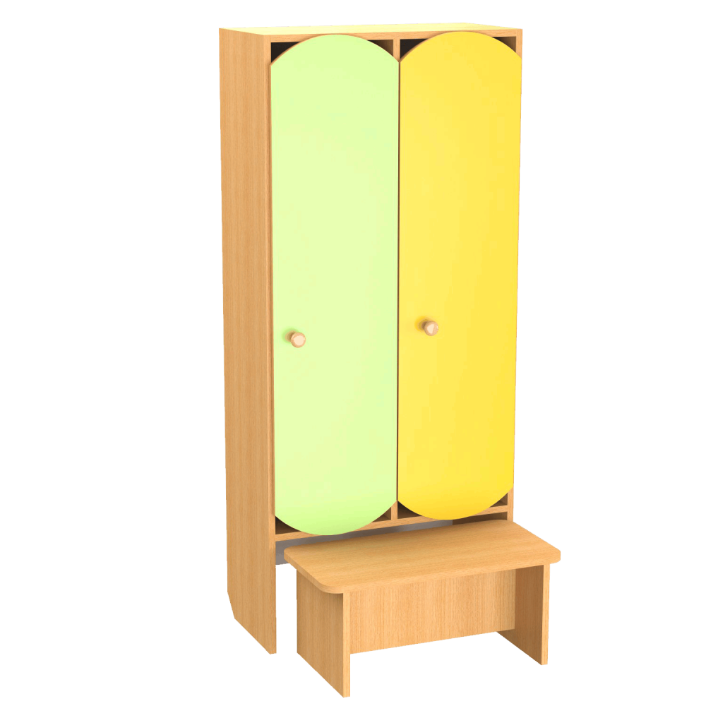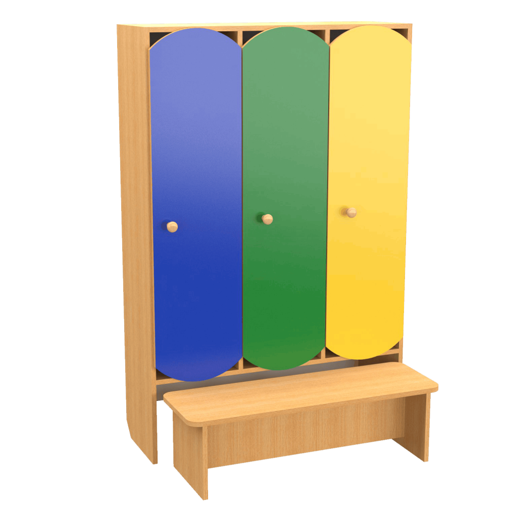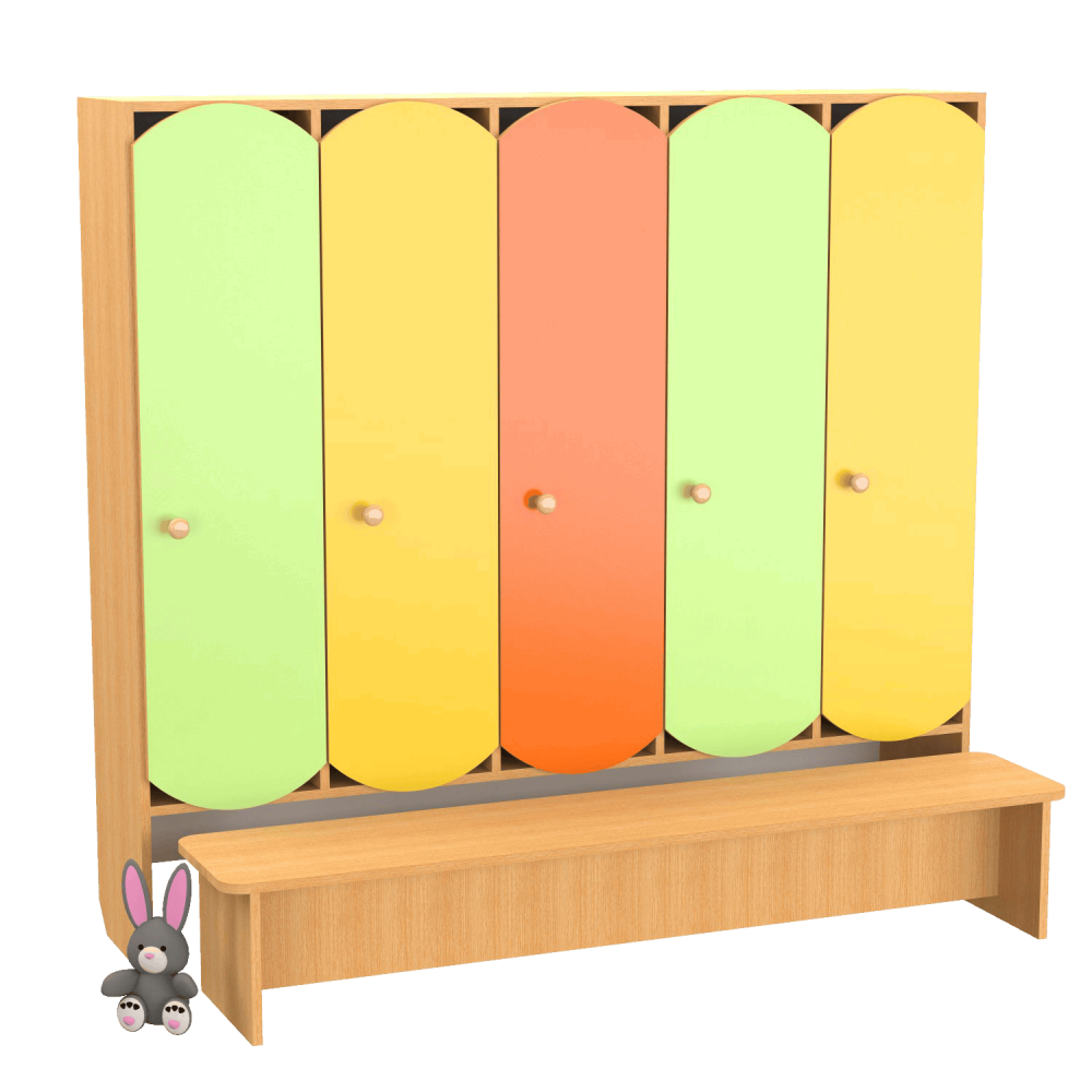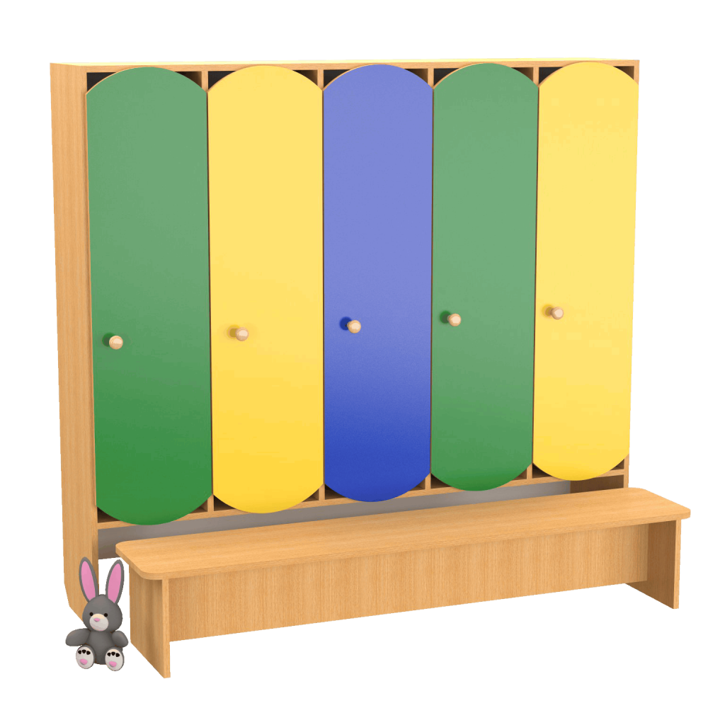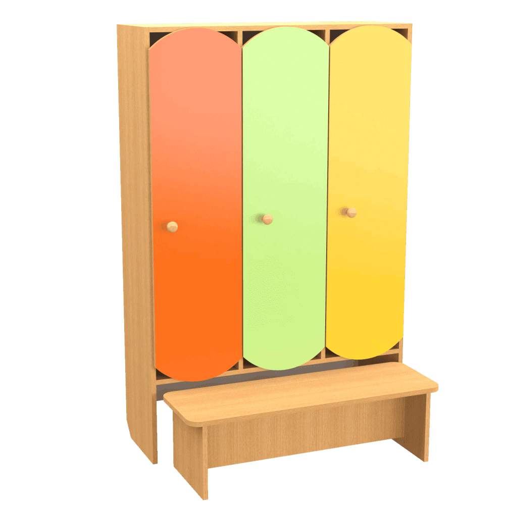 Красивый и прочный детский секционный шкаф для одежды, оборудованный специальной лавкой, которая позволяет ребёнку удобно воспользоваться верхней полкой. Все использованные для производства этой модели материалы ? безопасные и разрешённые действующим законодательством. Яркая расцветка фасадов помогает создать интересную для детей, приятную обстановку в детском саду.Характеристики изделияМодель: ?РЦЛ 23?.Основной материал, из которого изготовлен этот детский секционный шкаф для одежды ? ламинированная ДСП, толщиной 16 мм, класса эмиссии Е1. Торцы этого материала покрыты плёнкой из ПВХ, толщиной 0,5 мм. В зависимости от пожеланий заказчика, этот детский секционный шкаф для раздевалки может иметь две, три или пять секций.Наши покупатели могут выбрать желаемую расцветку этого изделия из двух вариантов, которые мы предлагаем по умолчанию. Все углы дверей закруглены, чтобы минимизировать вероятность получения ссадины или повреждения одежды.Преимущества и особенностиВ верхней части каждой секции имеется полочка для головных уборов и других вещей и аксессуаров. Также в каждой секции имеется два крючка для верхней одежды. Покупатели, которые хотят купить секционный детский шкаф для раздевалки, могут выбирать эту модель, чтобы рационально распорядиться пространством прихожей или гардеробной комнаты детского сада.Лавочка может удобно поместиться в нижнюю часть изделия, чтобы экономить пространство в помещении. Фасады яркой расцветки поднимают детям настроение.Изделие изготавливается на заказ, с учётом потребностей и пожеланий клиентов. Сроки изготовления зависят от текущей загруженности производства и оговариваются менеджером при обработке и оформлении Вашего заказа.Гарантийный срок эксплуатации этого шкафа ? 12 месяцев.
