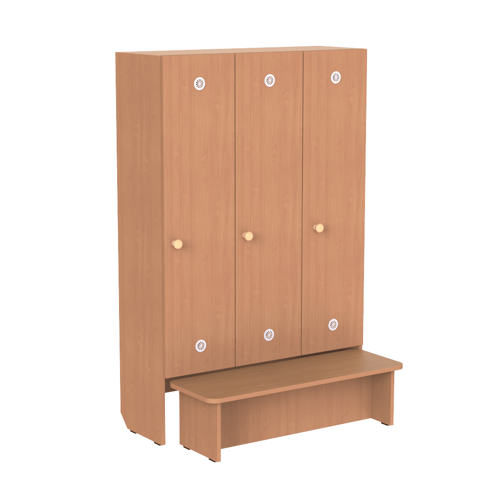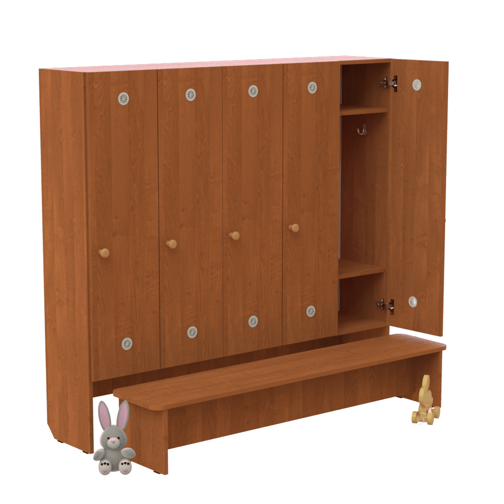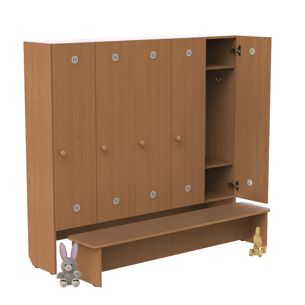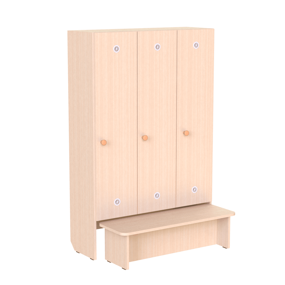 Изготовленный из качественных, безопасных для маленьких детей материалов шкаф для раздевалки в детский сад дополнен специальной лавкой, которая делает его использование ещё удобнее. Двухсекционная модель, которая отлично вписывается в самые разнообразные интерьеры, и позволяющая вместить все вещи, необходимые ученику детского сада.Характеристики изделияМодель: ?РДЛ 23?.Основной материал, из которого изготовлен этот детский шкаф для раздевалки ? ДСП толщиной 16 мм, торцы которой покрыты кромкой, изготовленной из ПВХ, толщиной 0,5 мм. ДСП, из которой изготовлен этот шкафчик, относится к материалу класса эмиссии Е1, что делает его безопасным для маленьких детей.Наши покупатели могут выбрать однин из трёх вариантов расцветки ДСП, предлагаемых по умолчанию ? ?бук?, ?молочный дуб? и ?дуб сонома?. Заказчики, которым нужен детский шкаф для раздевалки, могут выбрать нужное количество секций ? две, три или пять.Глубина изделия составляет 300 мм, высота ? 1400 мм, а ширина, в зависимости от того, какое количество секций Вы выберите, может составлять 620, 920 или 1526 мм.Преимущества и особенности моделиПокупатели, которым нужен шкаф для раздевалки в детский сад, могут заказать в нашем фирменном интернет-магазине эту модель с доставкой в свой регион, выбрав нужное количество секций. Конструкция опирается на небольшие пластиковые опоры, которые предотвращают повреждение напольного покрытия.Этот детский шкаф для раздевалки можно использовать для комплектации детских садов, бассейнов и спортивных залов, и других учреждений, которые посещают дошкольники.Гарантийный срок эксплуатации изделия составляет 12 месяцев.Внимание: цена изделия указана без учёта стоимости сборки.
