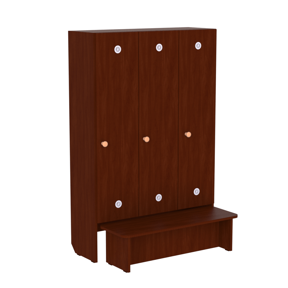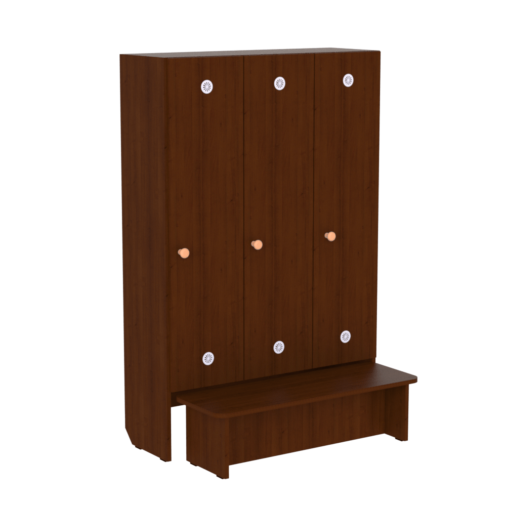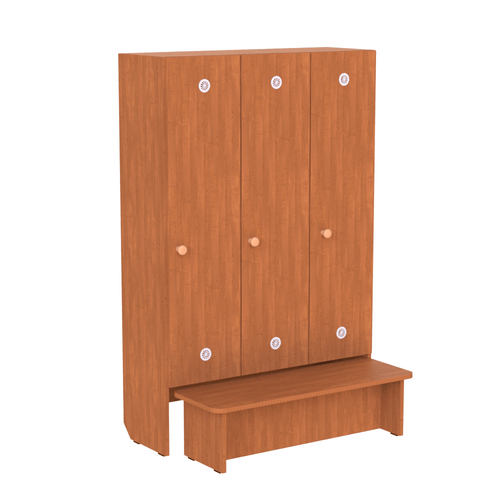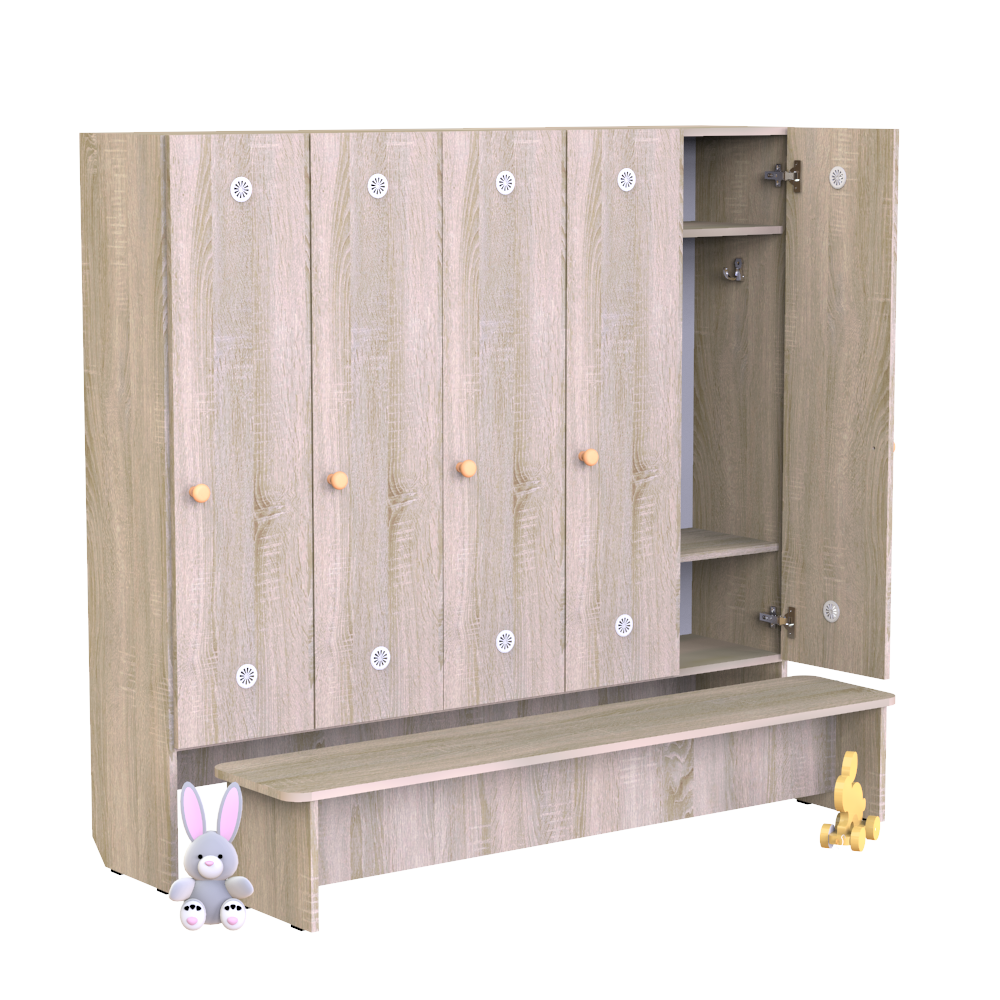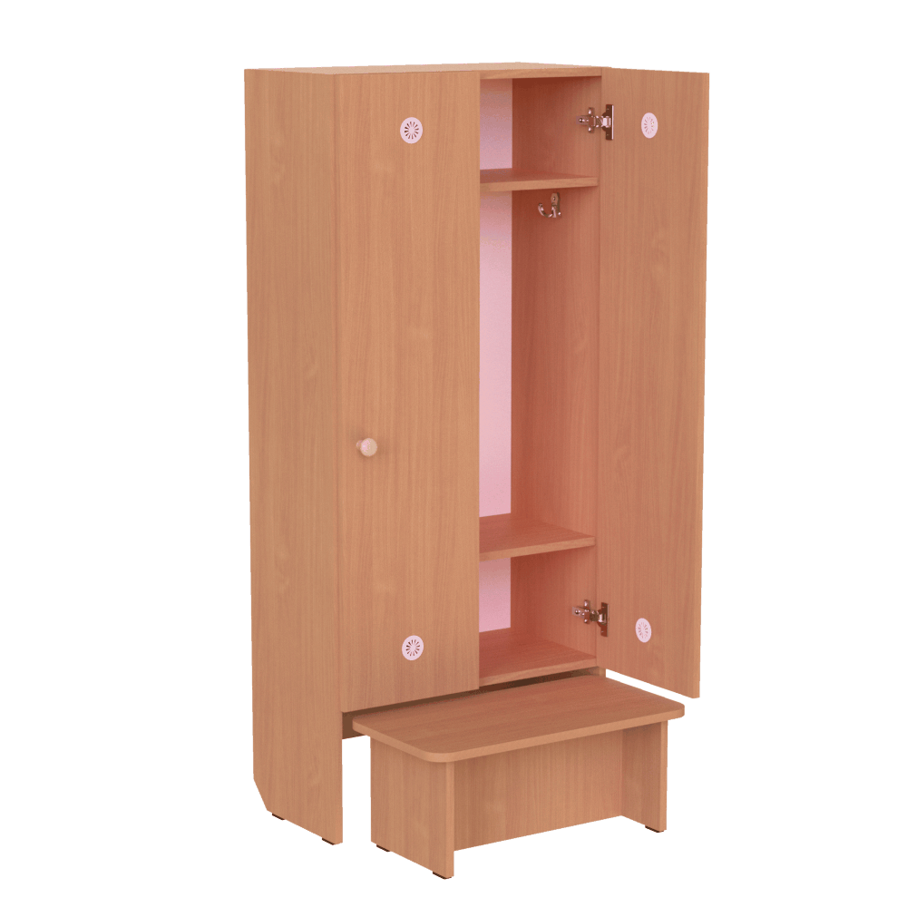 Изготовленный из качественных, безопасных для маленьких детей материалов шкаф для раздевалки в детский сад дополнен специальной лавкой, которая делает его использование ещё удобнее. Двухсекционная модель, которая отлично вписывается в самые разнообразные интерьеры, и позволяющая вместить все вещи, необходимые ученику детского сада.Характеристики изделияМодель: ?РДЛ 23?.Основной материал, из которого изготовлен этот детский шкаф для раздевалки ? ДСП толщиной 16 мм, торцы которой покрыты кромкой, изготовленной из ПВХ, толщиной 0,5 мм. ДСП, из которой изготовлен этот шкафчик, относится к материалу класса эмиссии Е1, что делает его безопасным для маленьких детей.Наши покупатели могут выбрать однин из трёх вариантов расцветки ДСП, предлагаемых по умолчанию ? ?бук?, ?молочный дуб? и ?дуб сонома?. Заказчики, которым нужен детский шкаф для раздевалки, могут выбрать нужное количество секций ? две, три или пять.Глубина изделия составляет 300 мм, высота ? 1400 мм, а ширина, в зависимости от того, какое количество секций Вы выберите, может составлять 620, 920 или 1526 мм.Преимущества и особенности моделиПокупатели, которым нужен шкаф для раздевалки в детский сад, могут заказать в нашем фирменном интернет-магазине эту модель с доставкой в свой регион, выбрав нужное количество секций. Конструкция опирается на небольшие пластиковые опоры, которые предотвращают повреждение напольного покрытия.Этот детский шкаф для раздевалки можно использовать для комплектации детских садов, бассейнов и спортивных залов, и других учреждений, которые посещают дошкольники.Гарантийный срок эксплуатации изделия составляет 12 месяцев.Внимание: цена изделия указана без учёта стоимости сборки.