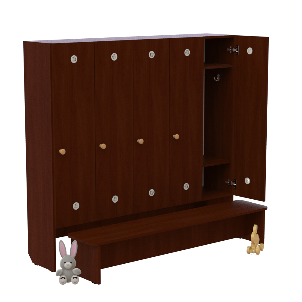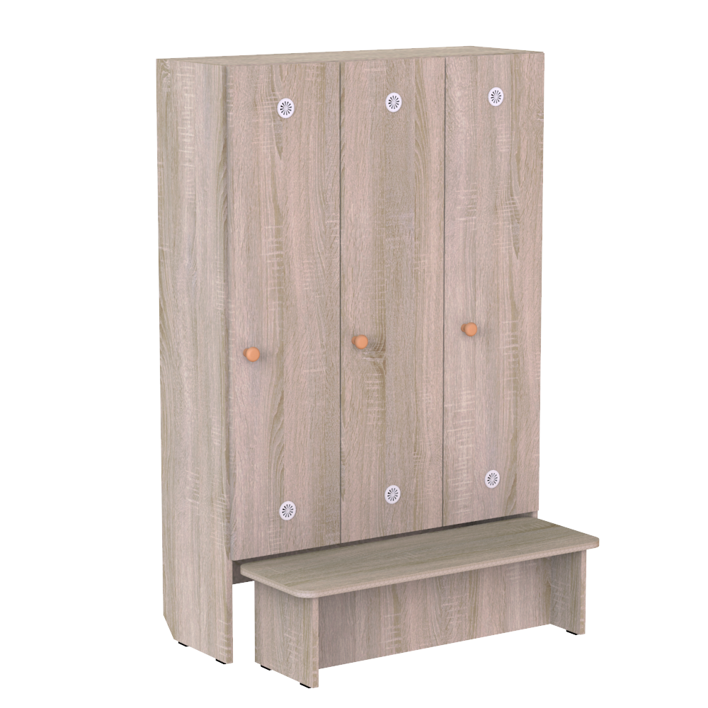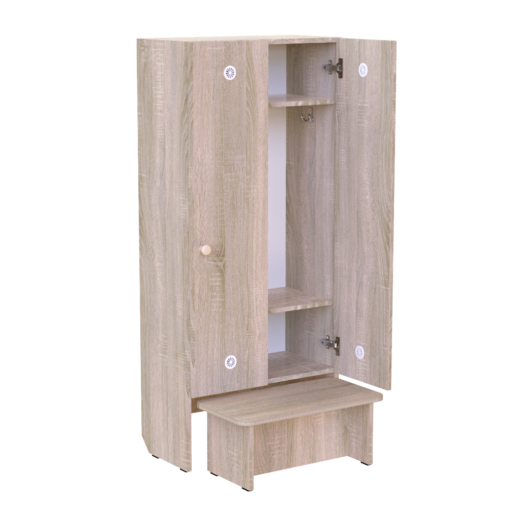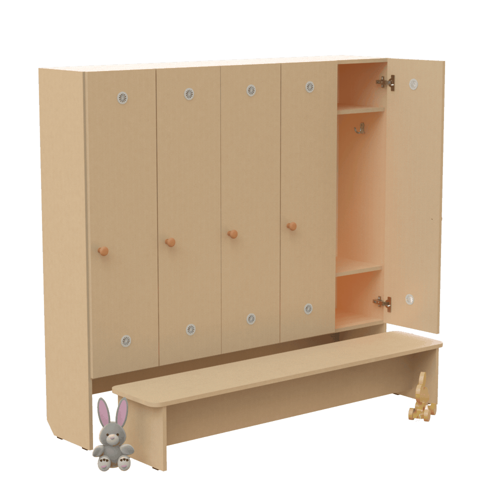 Изготовленный из качественных, безопасных для маленьких детей материалов шкаф для раздевалки в детский сад дополнен специальной лавкой, которая делает его использование ещё удобнее. Двухсекционная модель, которая отлично вписывается в самые разнообразные интерьеры, и позволяющая вместить все вещи, необходимые ученику детского сада.Характеристики изделияМодель: ?РДЛ 23?.Основной материал, из которого изготовлен этот детский шкаф для раздевалки ? ДСП толщиной 16 мм, торцы которой покрыты кромкой, изготовленной из ПВХ, толщиной 0,5 мм. ДСП, из которой изготовлен этот шкафчик, относится к материалу класса эмиссии Е1, что делает его безопасным для маленьких детей.Наши покупатели могут выбрать однин из трёх вариантов расцветки ДСП, предлагаемых по умолчанию ? ?бук?, ?молочный дуб? и ?дуб сонома?. Заказчики, которым нужен детский шкаф для раздевалки, могут выбрать нужное количество секций ? две, три или пять.Глубина изделия составляет 300 мм, высота ? 1400 мм, а ширина, в зависимости от того, какое количество секций Вы выберите, может составлять 620, 920 или 1526 мм.Преимущества и особенности моделиПокупатели, которым нужен шкаф для раздевалки в детский сад, могут заказать в нашем фирменном интернет-магазине эту модель с доставкой в свой регион, выбрав нужное количество секций. Конструкция опирается на небольшие пластиковые опоры, которые предотвращают повреждение напольного покрытия.Этот детский шкаф для раздевалки можно использовать для комплектации детских садов, бассейнов и спортивных залов, и других учреждений, которые посещают дошкольники.Гарантийный срок эксплуатации изделия составляет 12 месяцев.Внимание: цена изделия указана без учёта стоимости сборки.
