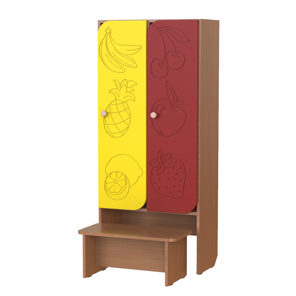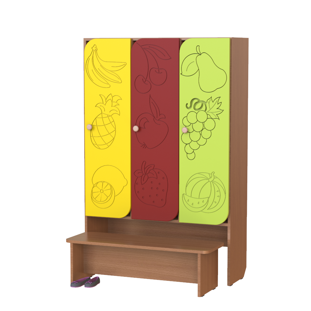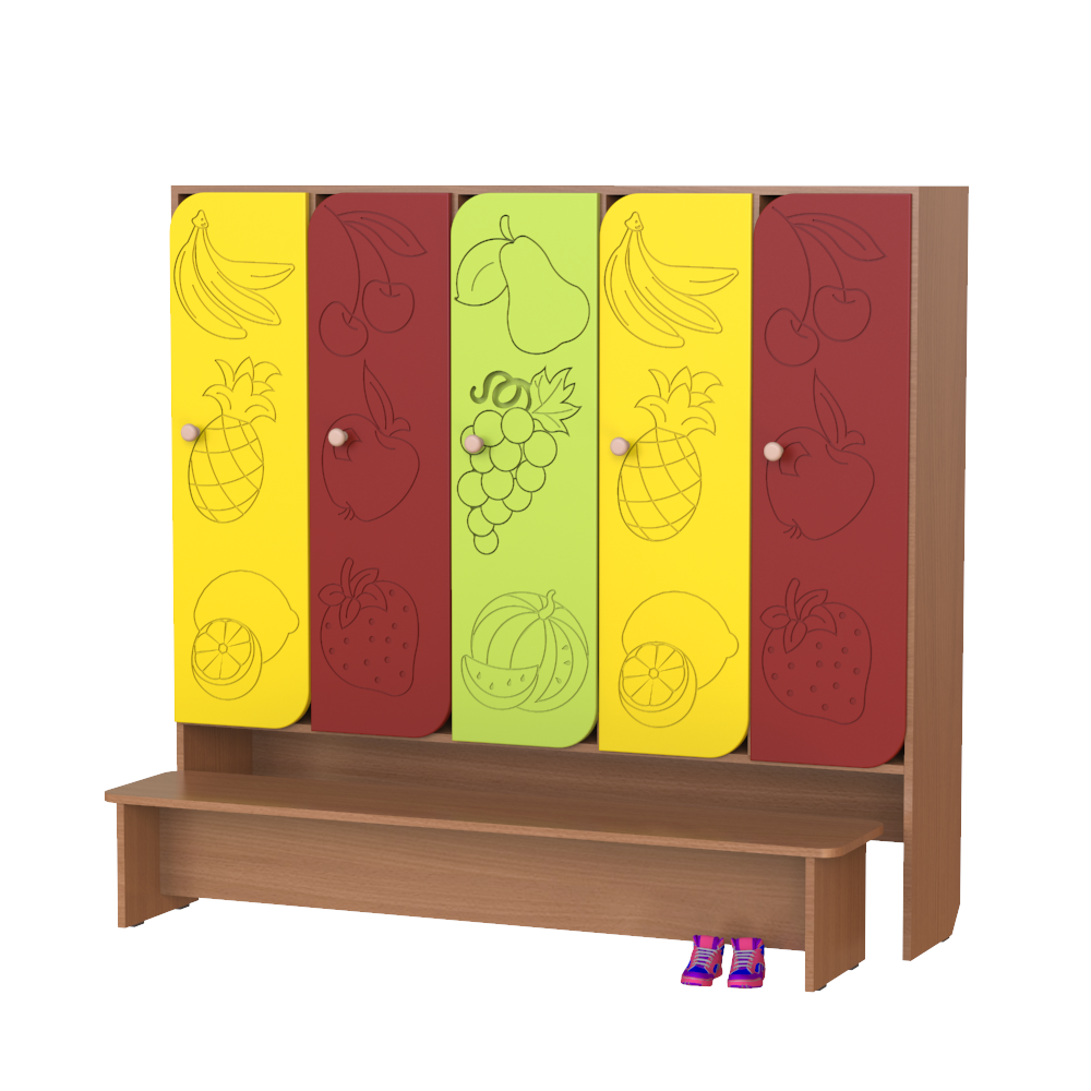Компактный детский секционный шкаф для раздевалки, разработанный нашими дизайнерами и инженерами. Эта модель позволяет рационально и эффективно использовать пространство помещения детского сада, в котором дети переодеваются после того, как приходят с улицы.Именно раздевалка является своего рода ?визитной карточкой? помещения, и именно её видят в первую очередь родители, которые приводят своих детей в дошкольное учебное заведение. Правильно оформленная раздевалка, оборудованная всей необходимой мебелью, не только создаёт комфорт для детей, но и позволяет произвести хорошее впечатление на их родителей, работая на имидж Вашего детского сада.Характеристики изделияНаши заказчики, которым нужно купить детский секционный шкаф для раздевалки, могут выбрать желаемую расцветку этого изделия, из предлагаемых по умолчанию вариантов. Основной материал, из которого изготовлен этот шкаф ? ДСП класса эмиссии Е1, толщиной 16 мм. Торцы ДСП покрыты кромкой из ПВХ толщиной 0,5 мм. Фасады изготовлены из МДФ.Преимущества и особенностиПокупатели могут выбрать один из двух вариантов этого изделия ? побольше или поменьше, для детей помладше или постарше. Помните о том, что размер детских секционных шкафов для одежды должен соответствовать размеру помещения, в котором они будут располагаться.Также заказчики имеют возможность выбрать количество секций ? 2, 3 или 5. Сроки изготовления заказанных Вами шкафов зависят от загруженности нашего производства и оговариваются менеджером при оформлении или обработке вашего заказа.Отличительная особенность этой модели ? наличие на VLA-фасадах фигурной художественной фрезеровки, изображающей различные плоды, что делает эти шкафчики красивыми и интересными для маленьких детей.Гарантийный срок эксплуатации этого изделия составляет 12 месяцев.