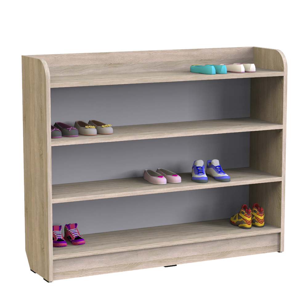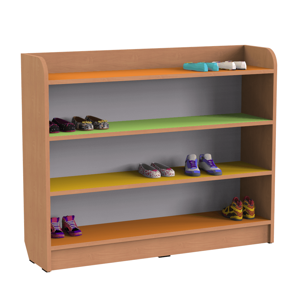 Это изделие ? удобная и вместительная полка для обуви в детский сад, которая позволяет разместить достаточно большое количество уличной обуви в одном месте, сэкономив пространство помещения. Верхние углы конструкции скруглены во избежание травматизма и повреждения одежды. Изделие имеет четыре яруса для хранения детской обуви. Снизу конструкции расположены пластиковые опоры, которые предупреждают повреждение напольного покрытия.Характеристики моделиЕсли Вам нужна полка для детской обуви, чтобы укомплектовать функциональной и надёжной мебелью детский сад, отдайте предпочтение этой модели. Как непосредственный производитель, мы предлагаем нашим клиентам купить полку для детской обуви по невысокой стоимости.Материал, из которого изготовлен корпус изделия ? безопасная ламинированная ДСП класса эмиссии Е1. Толщина материала составляет 16 мм, а его торцы покрыты кромкой, изготовленной из ПВХ, толщиной 0,5 мм. Для заказа доступны три варианта изделия, с разными габаритными размерами и массой:1000x250x800 мм, масса 21 кг,1200x250x800 мм, масса 24 кг,1500x250x800 мм, масса 29 кг.Преимущества и особенностиЖелающие купить полку для обуви недорого могут заказать эту модель с доставкой в любой город Украины. Наши покупатели могут выбрать один из пяти вариантов расцветки изделия, включая варианты с яркими разноцветными полками.Обувь в детском саду должна храниться компактно, в удобном месте, где дети могли бы самостоятельно её размещать.Изделие изготавливается на заказ, сроки изготовления мебели зависят от загруженности нашего производства и оговариваются менеджерами при оформлении и обработке Вашего заказа.Гарантийный срок эксплуатации этой модели составляет 12 месяцев, как и у прочей корпусной мебели.Цена товара указаны без учёта стоимости сборки.