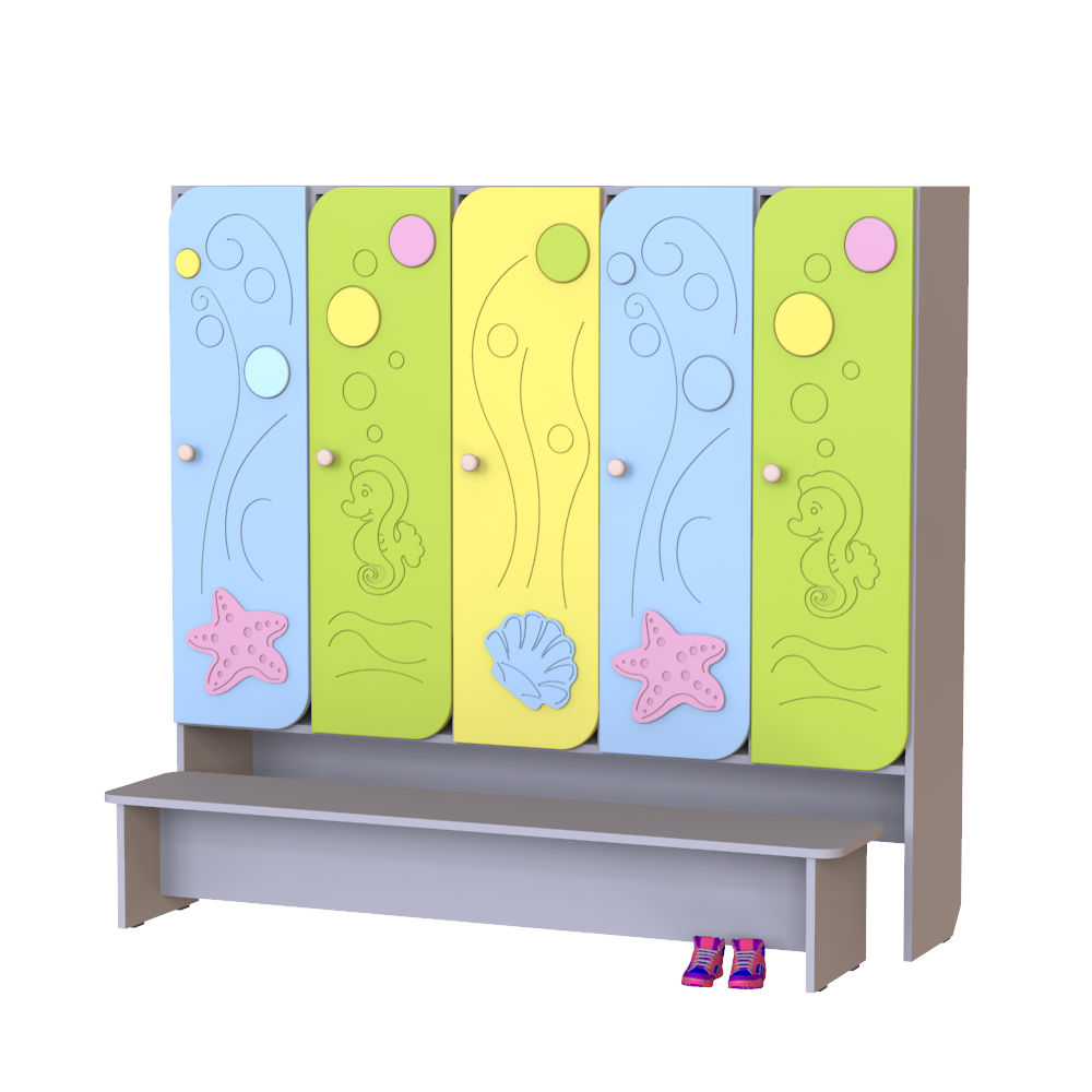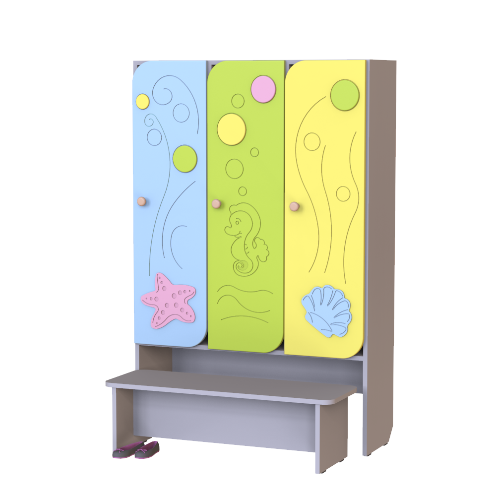 Предлагаемый Вашему вниманию детский секционный шкаф для раздевалки ?Морская волна? ? изделие оригинального, абсолютно уникального дизайна. Основа дизайна этого изделия ? лёгкая и весёлая морская тематика.Мебель, которой обставлен детский сад, должна создавать приятную обстановку для малышей, вызывать у них желание каждый день снова и снова приходить в детский сад и проводить там время. Эти шкафчики, благодаря своему игровому, оригинальному и красивому внешнему виду, помогают создать интересный для детей интерьер.Характеристики шкафа ?Морская волна?:основа конструкции шкафчика ? ламинированная ДСП толщиной 16 мм,шкаф имеет два отделения ? большое верхнее, прикрытое фасадом, и меньшее нижнее, открытое отделение для обуви,фасады шкафчика сделаны из цветной плиты МДФ, украшенной декоративной фрезеровкой, и накладками морской тематики,можно заказать шкафчик в трёх вариантах ? с двумя, тремя и пятью секциями,снизу конструкция опирается на небольшие ножки-гвоздики, которые предупреждают повреждение поверхности пола.Особенности и преимущества изделияУникальный дизайн, вместительность, высокое качество материалов, эргономичность конструкции ? основные преимущества модели ?Морская волна?. Эти шкафчики можно использовать в детских садах, бассейнах, спортивных заведениях для дошкольников.Для создания шкафчика ?Морская волна? были использованы только безопасные, соответствующие требованиям ДСТУ материалы, имеющие все необходимые сертификаты санитарно-эпидемиологической экспертизы.Наша компания ? производитель данной модели, и мы предлагаем низкие цены для детских шкафчиков для всех покупателей, без наценок.Заказывайте детский шкаф для раздевалки ?Морская волна?, делайте обучение Ваших воспитанников комфортнее!