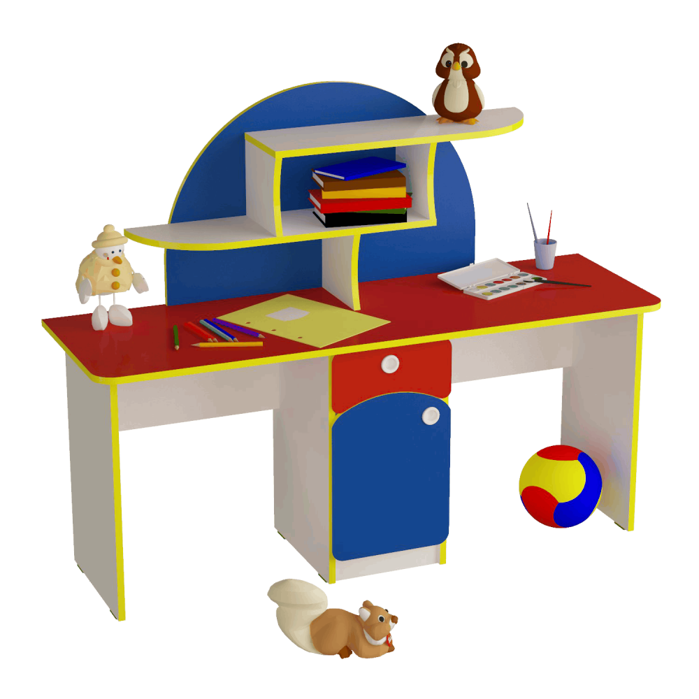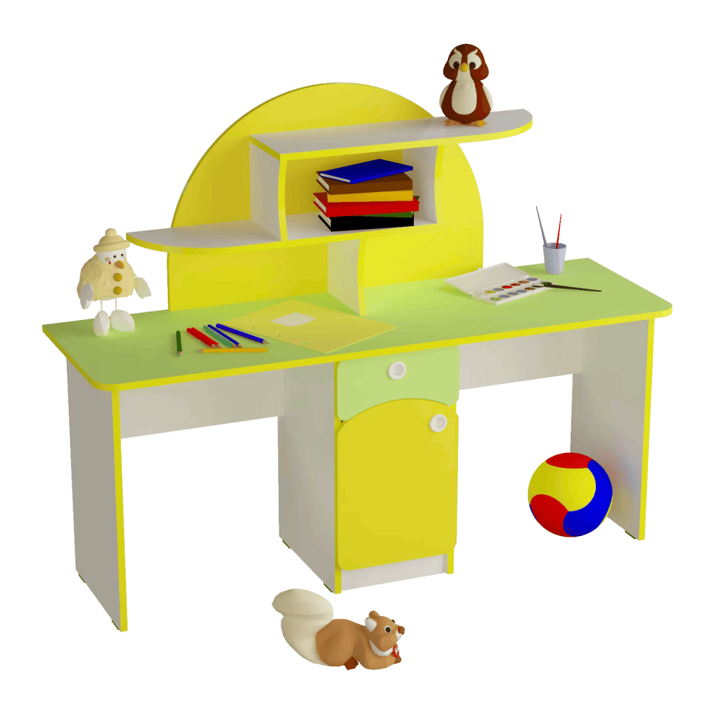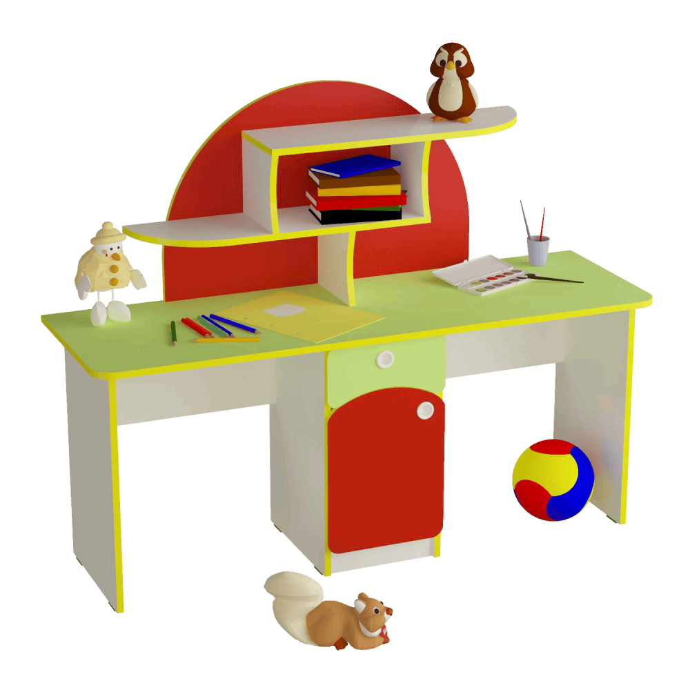Оригинальный и удобный детский стол для рисования, за которым могут разместиться, сидя, сразу двое детей. Изделие имеет надставку, предназначенную для бумаги, красок, карандашей, фломастеров и т.д., а также тумбу, в которой также можно хранить разнообразные принадлежности и аксессуары, необходимые детям для творчества.Характеристики изделияКлиенты нашего интернет-магазина, которые хотят купить детский стол для творчества, могут заказать это изделие в трех разных вариантах расцветки. Материал, из которого сделаны корпус и фасады изделия ? ламинированная ДСП, имеющая толщину 16 мм, класса эмиссии Е1. Торцы ЛДСП покрыты кромкой, толщиной 0,5 и 1 мм, изготовленной из ПВХ. Все материалы, из которых сделано это изделие, соответствуют действующим требованиям украинского санитарного законодательства.Габаритные размеры (ШхГхВ) ? 1400х450х110 мм, вес ? 43 кг.Преимущества и особенностиОсновные преимущества детского стола для творчества ?Радуга? ? его невысокая стоимость, оригинальный дизайн, красивая расцветка. Все углы столешницы и надставок скруглены, что делает конструкцию ещё более безопасной. Снизу есть небольшие пластиковые ножки, которые уменьшают риск повреждения поверхности пола.Рисование помогает детям познавать окружающий мир, учит их обращать внимание на цвета и формы, развивает мелкую моторику детских пальцев, помогает расширить кругозор ребёнка. Малыши, благодаря рисованию, учатся переносить свои мысли и эмоции на бумагу. Так, уже в 5 лет дети становятся способными тонко ощущать цвета, чётко различать холодные и тёплые оттенки, хотя всё ещё видят окружающие предметы немного не так, как взрослые. В этом возрасте рисование играет большую роль в дальнейшем развитии ребёнка.Заказывайте детский стол для рисования ?Радуга? с доставкой в Ваш регион на нашем сайте. Звоните нашим менеджерам, если у Вас возникли вопросы по ассортименту наших товаров!Гарантийный термин эксплуатации изделия ? 12 месяцев.