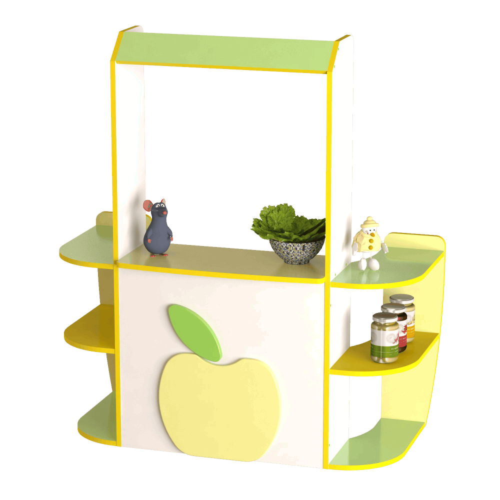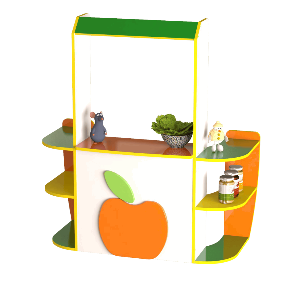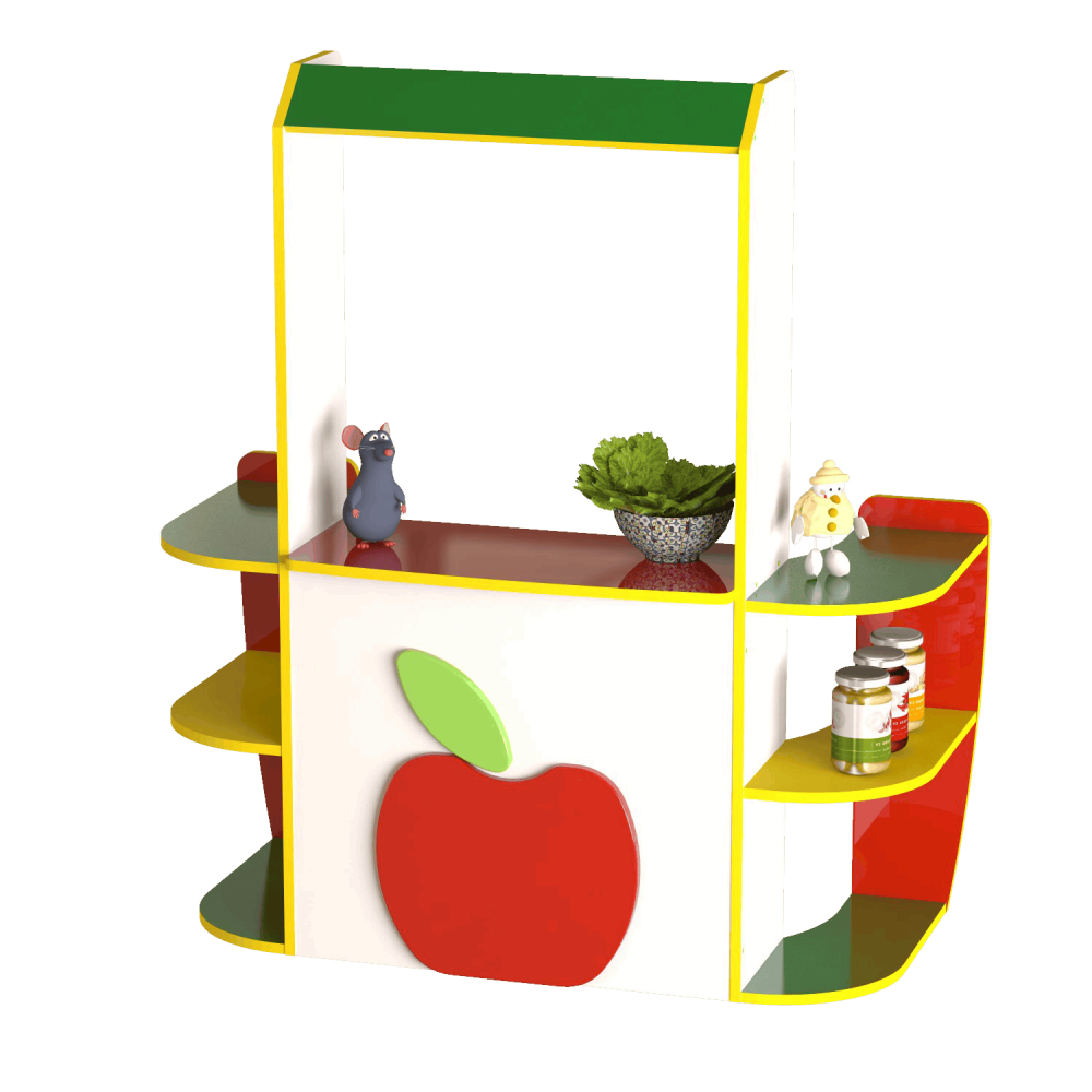 Оригинальная, вызывающая у маленьких детей неподдельный интерес игровая зона ?Прилавок магазин? позволяет создать в детском саду интересное место для ролевых игр. Особенно сильно этой игровой зоной смогут заинтересоваться дети в возрасте до 5 лет, которым будет интересно представлять себя продавцами и покупателями. Эта мебель позволяет маленьким детям интересно проводить время в детском саду, помогает малышам знакомиться и общаться со сверстниками.Характеристики изделияОсновной материал, из которого изготовлена эта игровая зона для детей ? ламинированная ДСП толщиной 16 мм. Класс эмиссии материала ? Е1. Торцы ЛДСП покрыты кромкой, изготовленной из ПВХ, толщиной 0,5 и 1 мм. Габаритные размеры (ШхГхВ) изделия составляют 1200х550х1320 мм, вес ? 27 кг.Все материалы, из которых изготовлено это изделие, разрешены украинским санитарным законодательством для использования в учебных заведениях.Особенности и преимуществаМы рекомендуем клиентам, которым необходимо купить детскую игровую зону, отдать предпочтение этому изделию. Неоспоримые преимущества этой модели ? невысокая стоимость, хорошее качество и безопасность использованных материалов, оригинальный дизайн.Все углы этого изделия скруглены, чтобы сделать игровую стенку безопасной для маленьких детей.Гарантийный срок эксплуатации изделия ? 1 год.