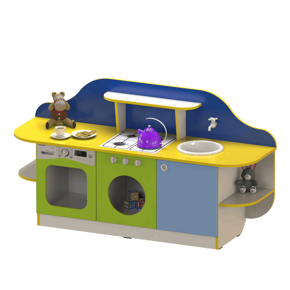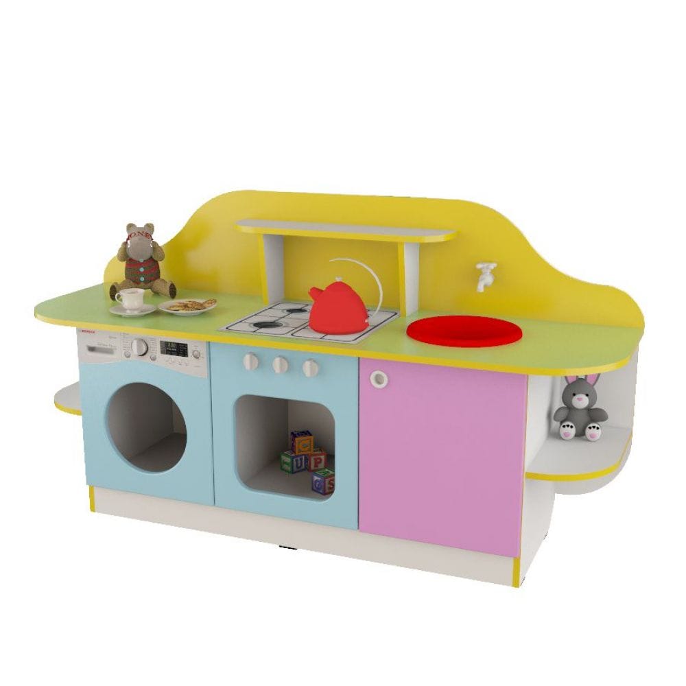 Достаточно компактная игровая кухня для девочек и мальчиков, которая имитирует настоящую кухню с рабочей поверхностью, плитой и духовкой, стиральной машиной, мойкой и отделением для кухонного инвентаря.Как и другая игровая мебель для детского сада, детская игровая кухня от нашего интернет-магазина помогает детям учиться и познавать мир, познакомиться со сверстниками или наоборот, поиграть в одиночестве. Благодаря такой мебели, дети получают возможность весело и интересно проводить время в детском саду.Характеристики изделияНадёжная игровая кухня для детского сада ?Хозяюшка МДФ? имеет изготовленный из ламинированной ДСП каркас. ЛДСП ? материал класса эмиссии Е1, толщиной 16 мм. Торцы этого материала покрыты кромкой из ПВХ толщиной 0,5 и 1 мм. Фасады изделия сделаны из МДФ. Все материалы, которые были нами использованы для изготовления этого изделия, разрешены действующим украинским санитарным законодательством для применения в учебных заведениях.Габаритные размеры (ШхГхВ) игровой кухни для детей ? 1600х450х850 мм, вес ? 47 кг.Особенности и преимуществаЕсли Вы хотите купить детскую игровую кухню, чтобы сформировать в детском саду игровые зоны, интересные для маленьких детей, заказывайте эту модель на нашем сайте! Все углы этого изделия скруглены, что уменьшает возможность получить ушиб или повредить одежду во время активных игр и делает этой изделие более безопасным. Гарантийный срок эксплуатации изделия ? 12 месяцев.
