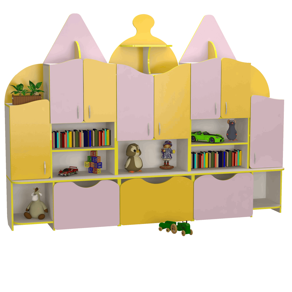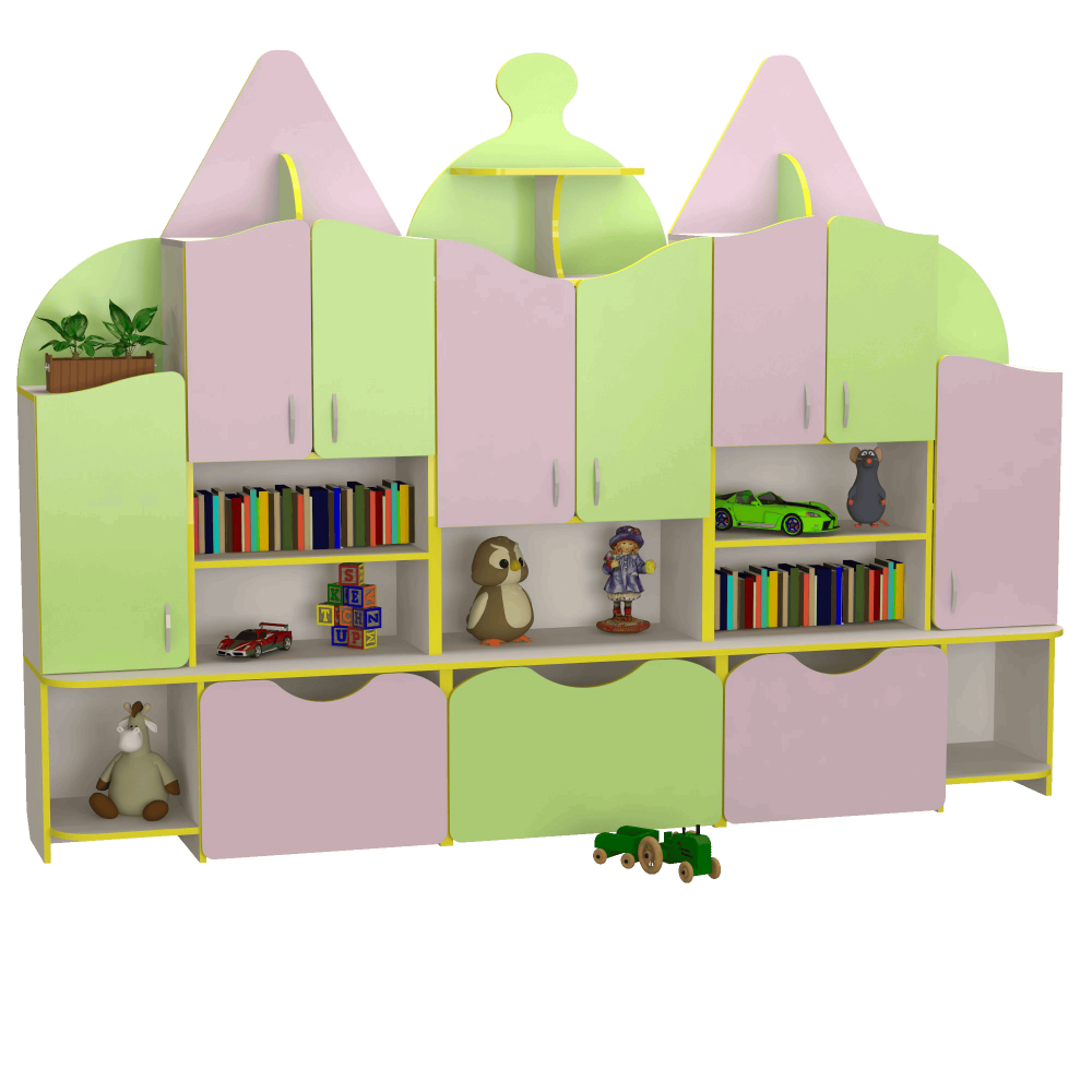 Детская стенка для игрушек ?Домик 2? предусмотрена для комплектации школ, игровых зон, садиков и других дошкольных учреждений. Яркая цветовая палитра делает модель интересной и привлекательной для детей. Вы можете выбрать один из множества цветовых вариаций ДСП на ваш выбор: Лаванда/Зеленая вода, Желтый/Зеленая вода, Лаванда/Желтый, Красный/Синий, Красный/Желтый.Материал изготовления является экологичным и полностью безопасным, соответствует стандартам ГОСТ. Конструкция представляет собой 5 модулей, скрепленных межсекционными стяжками. Каждый из них оборудован полочками, открытыми и закрытыми нишами, а также выдвижными ящиками на роликах. Покупка данной системы хранения намного выгоднее, чем множества шкафов отдельно ? все необходимые вещи и игрушки находятся в одном месте.Характеристики моделиРазмеры стенки для игрушек: 2600х440х1900 мм.Не имеет острых углов, что делает ее полностью безопасной.Края облицованы пластиковой кромкой ПВХ для защиты от влаги и механических повреждений.Вес составляет 190 кг.Гарантийный срок эксплуатации ? 1 год.Правила оформления заказаМы предлагаем широкий выбор стенок для игрушек в детский сад по оптимальным ценам. Оплачивайте заказы удобным для вас способом: наличным или безналичным платежом. Доставка осуществляется с помощью транспортных компаний в любой населенный пункт Украины. Стоимость сборки и доставки оплачивается отдельно. На сайте указаны номера телефонов наших менеджеров ? вы можете обратиться к ним в случае возникновения вопросов.