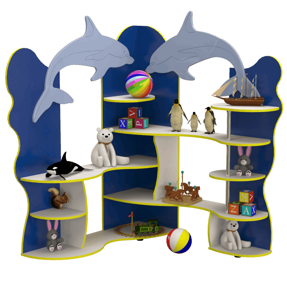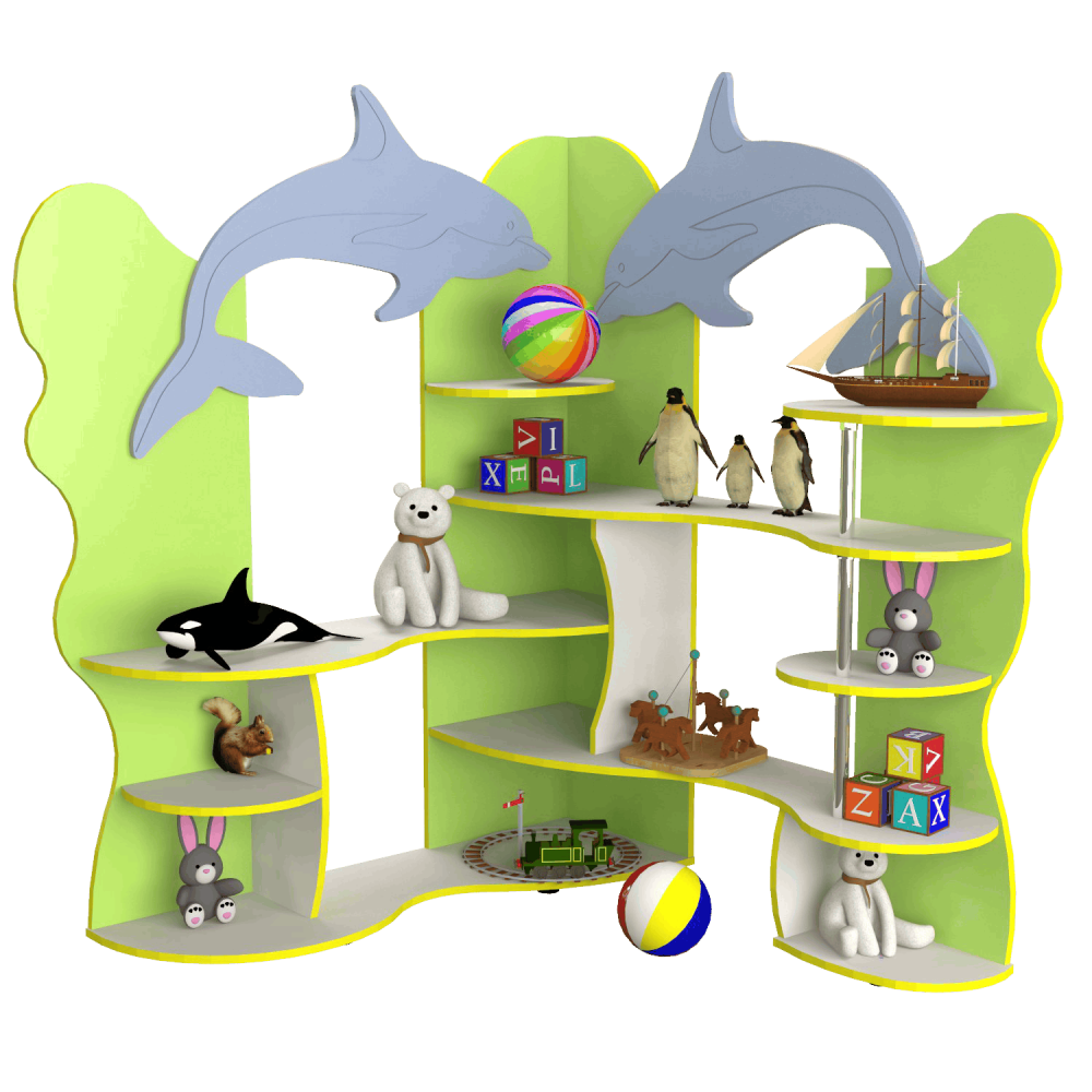 Детский уголок для игрушек ?Дельфины? за счет своей конструкции поможет сэкономить пространство в комнате, при этом освободит место для игр и других занятий. Отлично впишется в интерьер комнаты малыша и дополнит его. Выполнен в оригинальном дизайне ? не оставит равнодушным ни одного ребенка. Подходит для комплектации детских комнат, школ, садиков, игровых зон. Имеет множество полочек на которых разместятся игрушки, книги, сувениры, грамоты, фотографии и другие предметы.Благодаря такой зоне хранения, все необходимые для ребенка игрушки будут находиться в свободном доступе ? он сможет самостоятельно взять и поставить их на место. На ваш выбор предусмотрено несколько цветовых решений ДСП: Синий, Зеленая вода. Конструкция имеет пластиковые ножки, что защищает пол от повреждений.Основные характеристики моделиГабариты уголка для игрушек: 1300х1300х1550 мм.Выполнен из надежных, износостойких материалов, соответствующих стандартам ГОСТ ? ДСП и МДФ.Все выступающие элементы скруглены, что обеспечивает полную безопасность.Торцы покрыты кромкой ПВХ для защиты от влаги и механических повреждений.Вес изделия составляет 75 кг.Гарантия ? 12 месяцев.Правила оформления заказа в нашем интернет-магазинеУ нас вы можете приобрести уголок для детских игрушек по оптимальной цене, поскольку мы являемся прямым производителем мебели. Оплатить покупку можно наличным или безналичным платежом. Доставка товаров осуществляется с помощью компаний-перевозчиков в любой регион Украины. Ее стоимость оплачивается отдельно. В случае возникновения вопросов свяжитесь с нашим менеджером по телефонам, указанным на сайте.