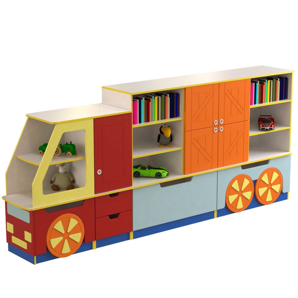 Стенка для игрушек ?Машинка? предусмотрена для оборудования детских садиков, школ и игровых зон. За счет оригинального дизайна и яркого цветового сочетания, модель понравится малышам, будет способствовать развитию фантазии и творческих способностей. Представляет собой 4 секции с выдвижными ящиками, множеством полочек, открытых и закрытых ниш для хранения игрушек, книг и других предметов.Конструкция изготовлена из надежных материалов, соответствующих стандартам ГОСТ ? ДСП и МДФ. Разработана таким образом, чтобы ребенок при необходимости мог самостоятельно взять и поставить на место необходимую игрушку. Все выступающие элементы скруглены, что исключает риск травматизма. Имеет пластиковые ножки, что защищает пол от повреждений.Основные характеристики моделиРазмеры изделия: 3070х470х1350 мм.Вес игровой стенки для детей: 209 кг.Все торцы облицованы кромкой ПВХ, толщиной 0,5 мм, для защиты от влаги и механических повреждений.Гарантийный срок эксплуатации ? 1 год.Оформление заказа в интернет-магазине ?Мебель-Техностиль?В ассортименте нашего интернет-магазина представлен большой выбор мебели для детей. Вы можете купить детскую игровую стенку по оптимальной цене с удобными вариантами оплаты. Для вас предусмотрен наличный либо безналичный платеж. Обратите внимание, что стоимость доставки оплачивается отдельно согласно тарифам транспортных компаний. Доставка осуществляется во все регионы Украины. Следите за актуальными акциями ? это поможет вам приобрести необходимый товар по оптимальной цене.