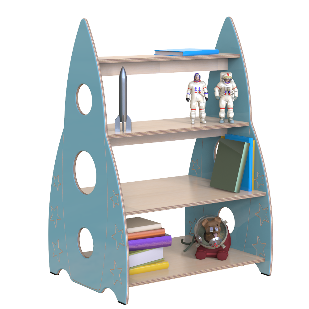 Детский стеллаж для игрушек не только решает вопрос с разгрузкой пространства комнаты от вещей, но и организовывает порядок в комнате, благодаря чему освобождает много места для игр и других занятий. Имеет 4 вместительные полочки. Подходит для размещения книг, игрушек, сувениров, коллекций машинок или кукол и других предметов.Приятное цветовое сочетание элементов и интересный дизайн в виде ракеты не оставит равнодушным ни одного малыша. Модель отлично дополнит разнообразные интерьеры детских комнат или игровых зон в дошкольных учреждениях. Изготовлен из экологически чистых материалов, соответствующих стандартам ГОСТ. Не имеет острых углов, что делает модель полностью безопасной.Основные характеристикиРазмеры детского стеллажа: 780х640х1140 мм.Материал изготовления ? фанера, толщиной 15 мм, покрытая пластиком.Торцы покрыты лаком, что защищает изделие от механических повреждений и влажной среды.Вес модели составляет 35 кг.Конструкция имеет двойные ножки-гвоздики, что защищает пол от повреждений.Гарантийный срок эксплуатации ? 12 месяцев.Как оформить заказ в нашем интернет-магазинеВ нашем интернет-магазине вы можете купить детский стеллаж для игрушек по оптимальной цене, поскольку мы являемся прямым производителем мебели. На ваш выбор представлены удобные варианты оплаты: наличный и безналичный платеж. Стоимость сборки и доставки оплачивается отдельно. На сайте представлены номера телефонов для связи с нашими менеджерами. Для оформления заказа заполните соответствующие поля на сайте.