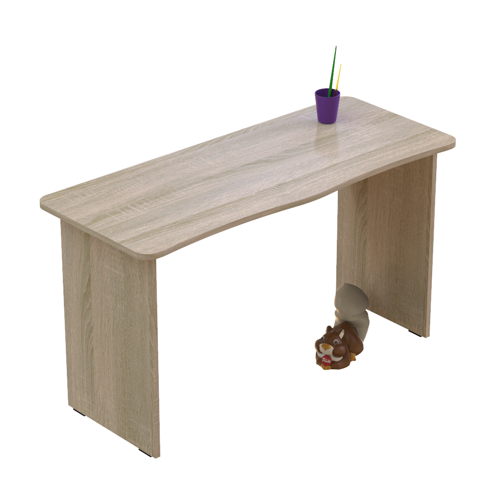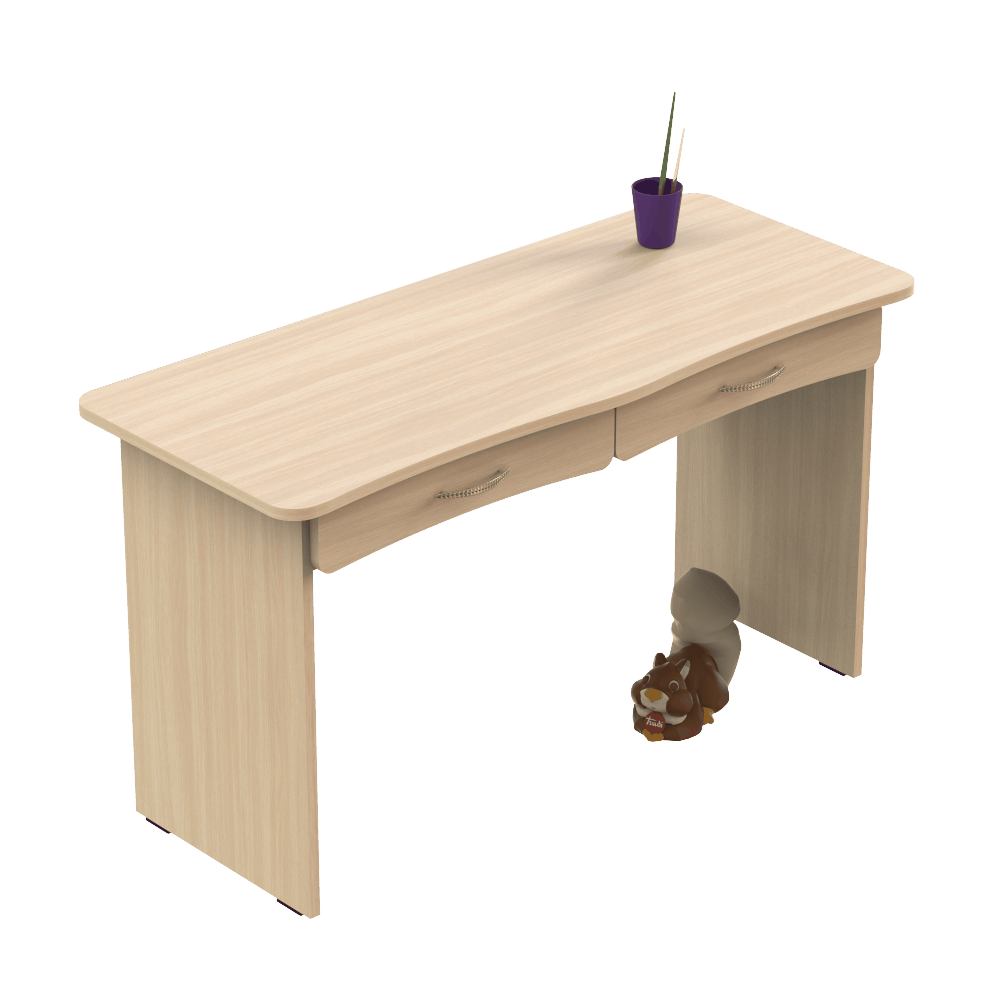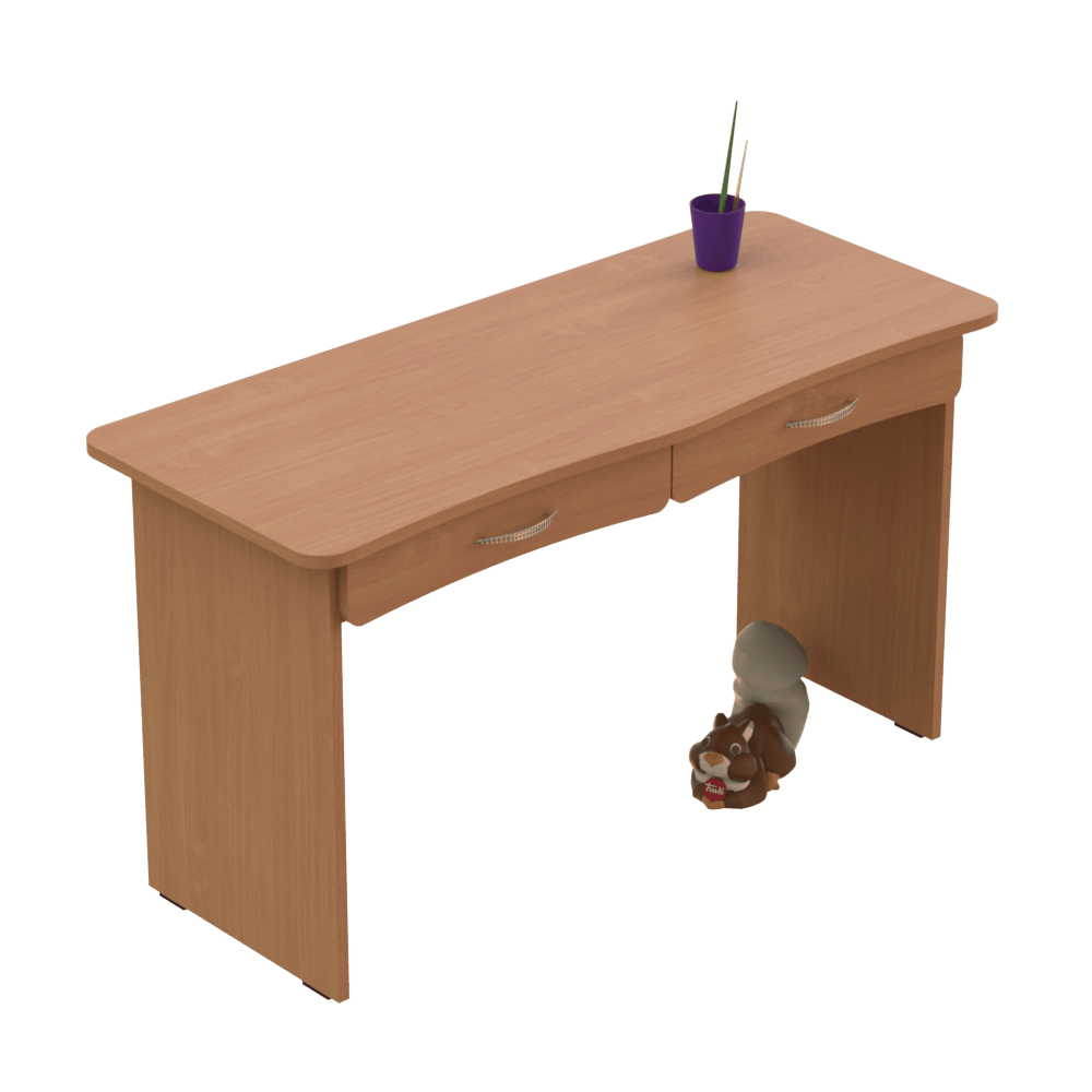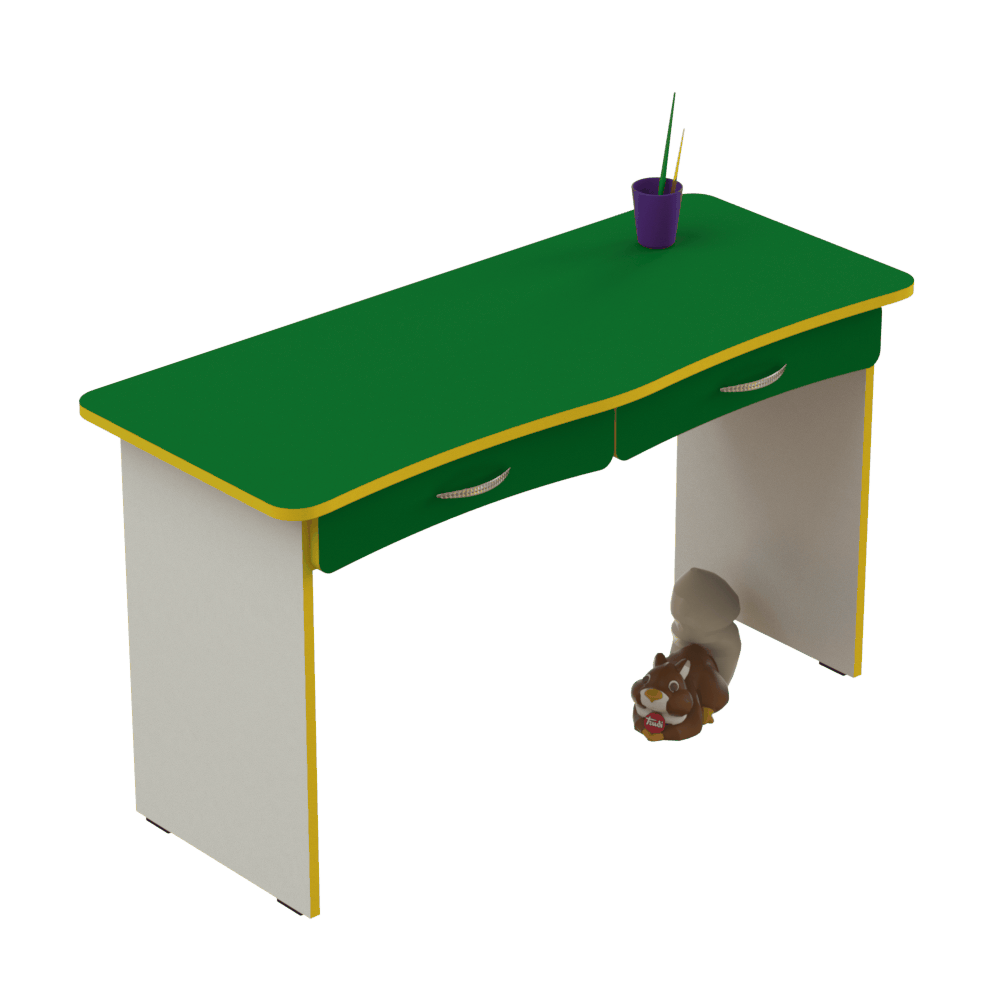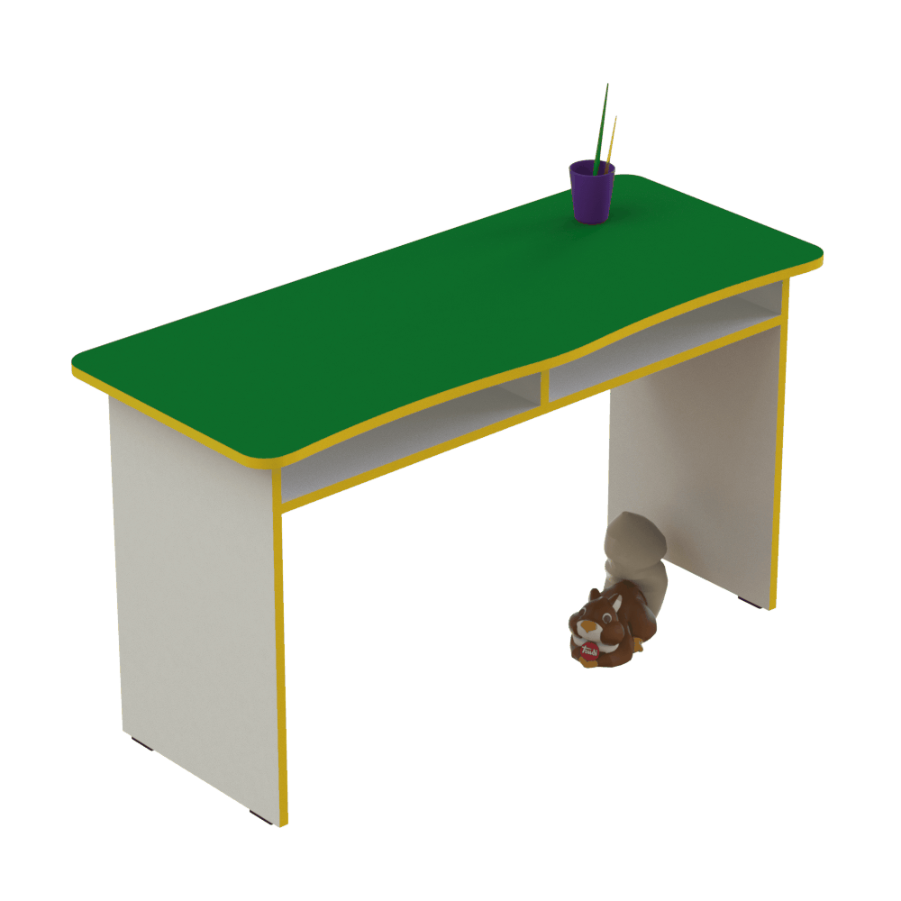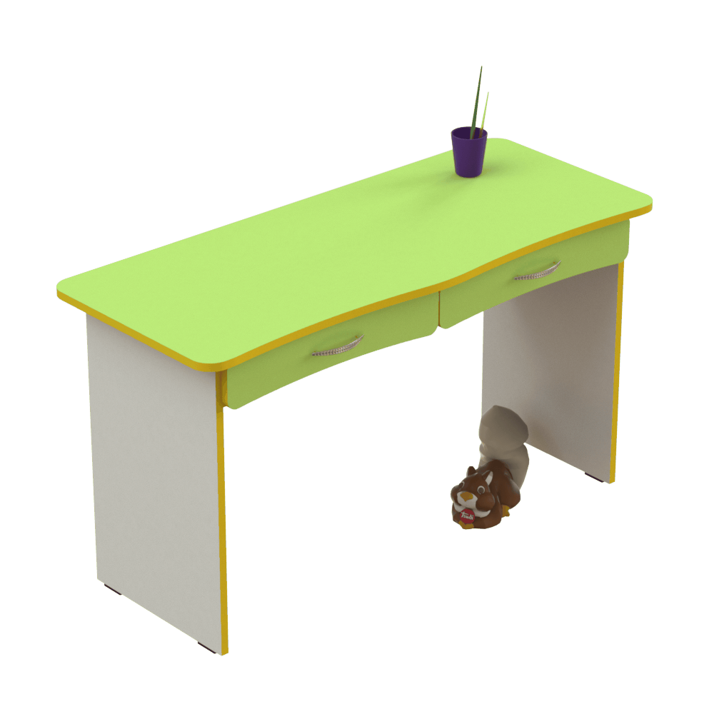Удобная модель для клиентов, которые хотят купить детский столик для двоих, обладающий эргономичной конструкцией. Особенность этой двухместной модели заключается в наличии с той стороны столешницы, с которой сидят дети, эргономичных вырезов, которые способствуют формированию у детей правильной осанки. Снизу конструкция опирается на пластиковые опоры, которые препятствуют повреждениям пола в кабинете или комнате, в которой расположен этот стол.Характеристики изделияЭтот прочный и надёжный детский столик подходит для наполнения качественной мебелью детских садов. Все материалы, которые были использованы для производства этой модели ? безопасные и качественные, разрешённые украинским законодательством и имеющие все подтверждения со стороны государственных контролирующих органов.Основной материал, из которого изготовлено данное изделие ? ламинированная ДСП. Материал имеет класс эмиссии формальдегида Е1, что делает его безопасным для маленьких детей, и толщину 16 мм. Торцы плиты обработана кромкой, изготовленной из ПВХ, толщиной 1 мм для столешницы, и 0,5 мм ? для всех остальных элементов конструкции.Особенности моделиГабаритные размеры столешницы составляют 1100х450 мм. Высота столешницы не регулируется, но изделие можно заказать изготовить нужной Вам высоты, которая может достигать, в зависимости от ростовой группы, следующих значений:400 мм ? для роста 90?100 см,460 мм ? для роста 100?115 см,520 мм ? для роста 115?130 см,580 мм ? для роста свыше 130 см.Масса стола составляет 16 кг и может немного увеличиваться при наличии дополнительных опций. Этот столик для детей может быть дополнительно оборудован полочкой или ящиком, или не иметь данных модификаций. Желаемую расцветку ДСП заказчики могут выбрать из 10 разных вариантов, включая очень яркие и жизнеутверждающие цвета. Если Вы хотите купить детский столик украинского производства ? заказывайте эту модель!Гарантийный срок эксплуатации изделия составляет 12 месяцев.Обратите внимание: стоимость изделия указана без учёта сборки.
