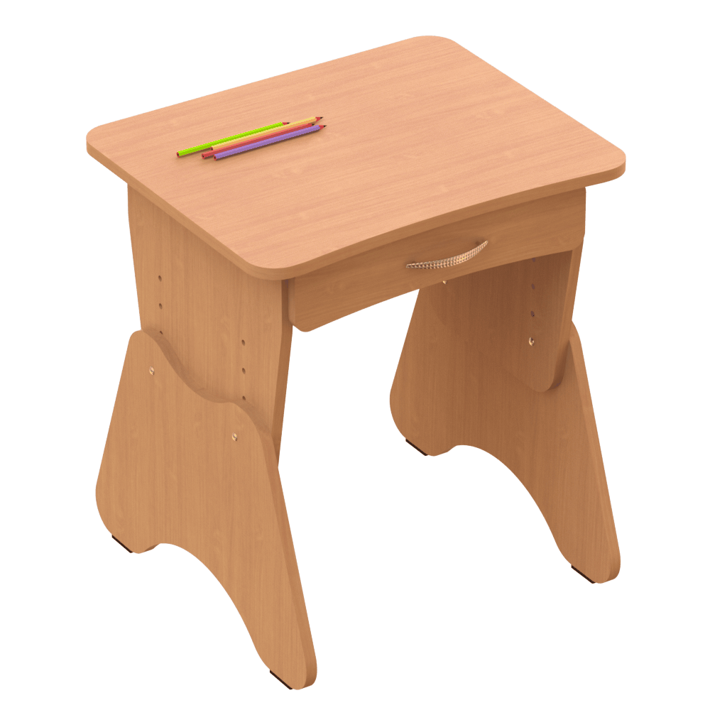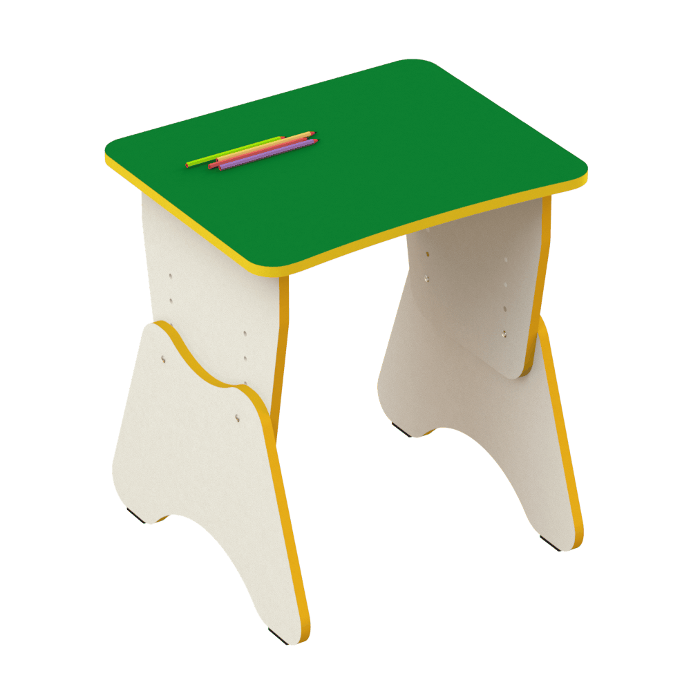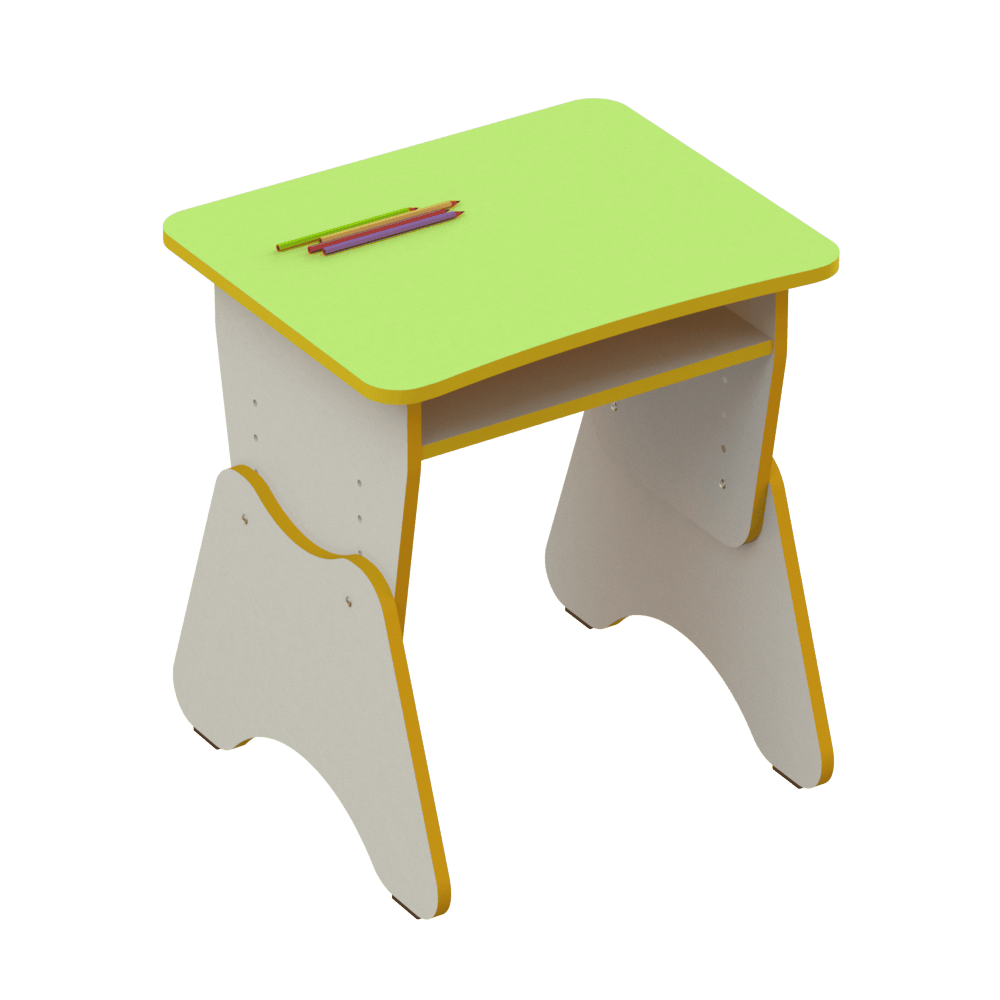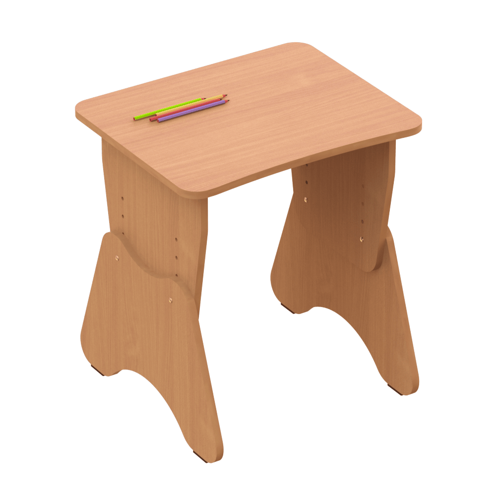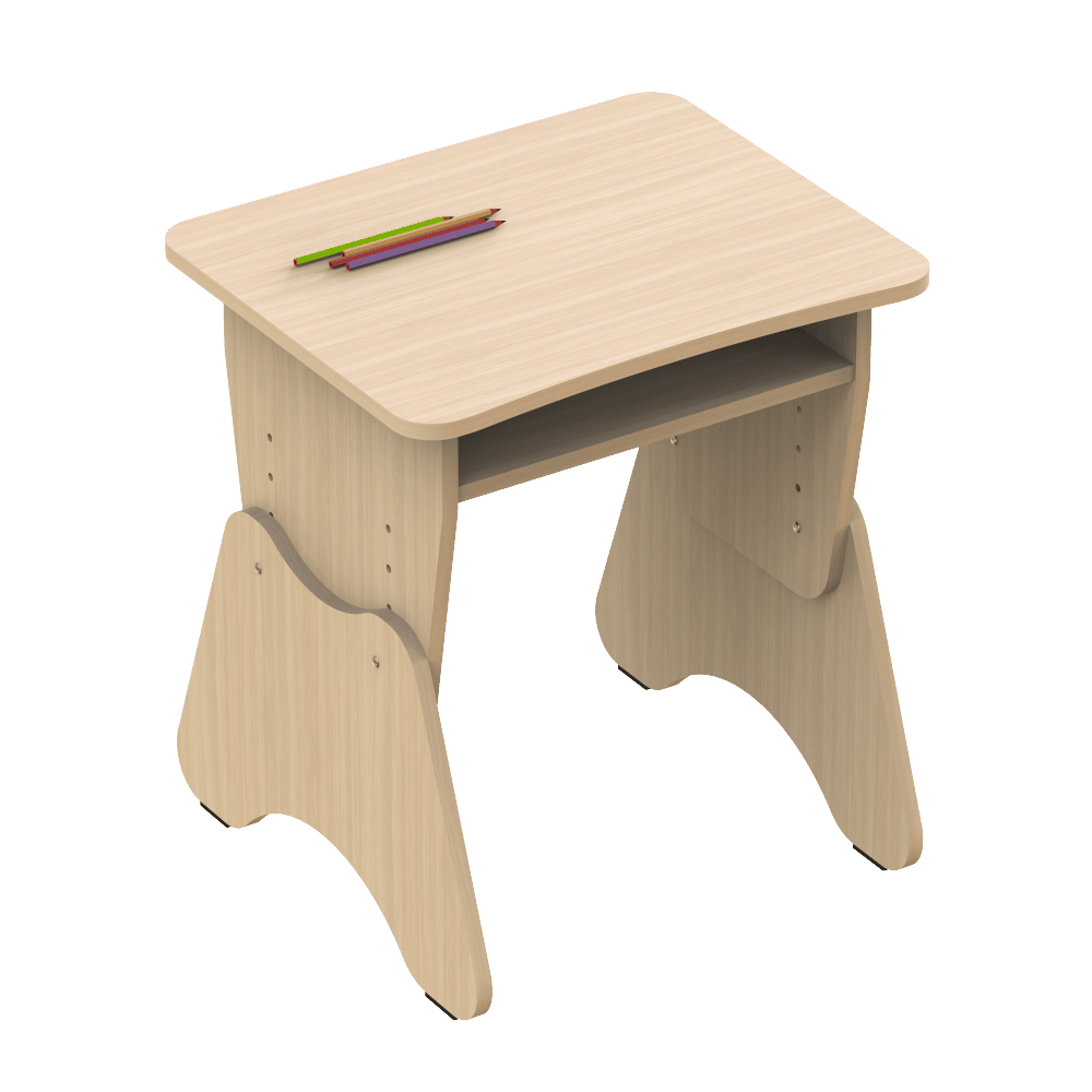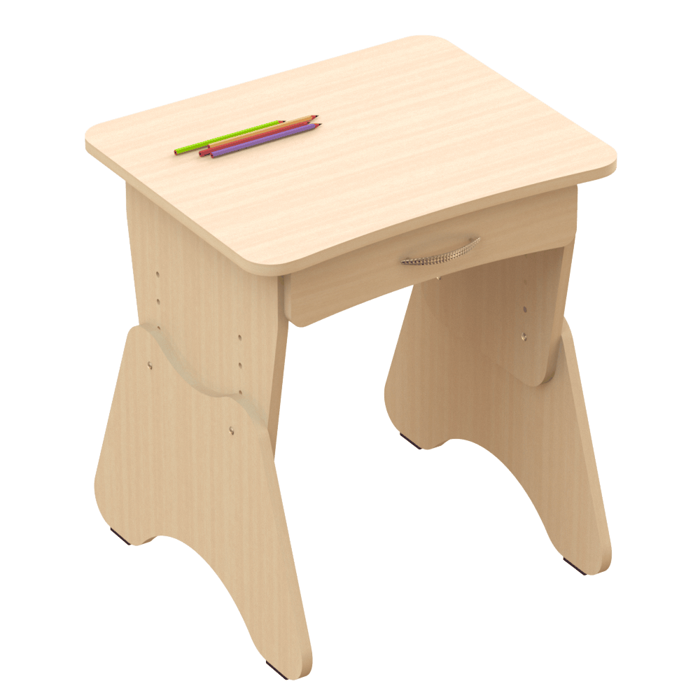 Удобный, прочный детский столик с регулировкой высоты, который предназначен для использования в дошкольных учебных заведениях. Модель изготовлена из ламинированной ДСП класса эмиссии Е1, снизу опирается на пластиковые опоры, которые предотвращают повреждение поверхности пола. Благодаря своему стильному дизайну этот детский столик отлично подходит для самых разнообразных интерьеров.Характеристики изделияДСП, из которой изготовлена данная модель, имеет толщину 16 мм и покрыта с торцов пластиковой кромкой толщиной 0,5 мм. Торцы столешницы обработаны кромкой из ПВХ толщиной 1 мм. Все использованные для производства товара материалы является безопасными для детей и разрешёнными к использованию для производства мебели, с которой они контактируют. Столешница имеет габаритные размеры 550х450 мм.Высоту стола можно регулировать по четырём ростовым группам ? нулевой, первой, второй и третьей соответственно. Высота столешницы будет следующей, в зависимости от роста ребёнка:400 мм для детей ростом 90?100 см,460 мм для детей ростом 100?115 см,520 мм для детей ростом 115?130 см,580 мм для детей ростом свыше 130 см.Вес собранного изделия составляет 10 кг. Высота столешницы регулируется без помощи специалистов, самостоятельно разобраться в конструкции стола и регулировке высоты может любой взрослый человек.Преимущества и особенности моделиКлиенты, которым необходимо купить детский столик, могут смело отдавать предпочтение этой простой и универсальной модели. Наши заказчики могут выбрать один из более чем десяти вариантов расцветки этого изделия.Также покупатели могут выбрать столик для детей с дополнительными опциями ? полочкой и небольшим ящиком, или заказать детский столик без каких-либо модификаций. Срок изготовления необходимой Вам партии этого изделия на заказ, при отсутствии на складе, зависит от текущей загрузки производства и уточняется нашими менеджерами при обработке Вашего заказа.Гарантийный срок эксплуатации изделия составляет 12 месяцев.