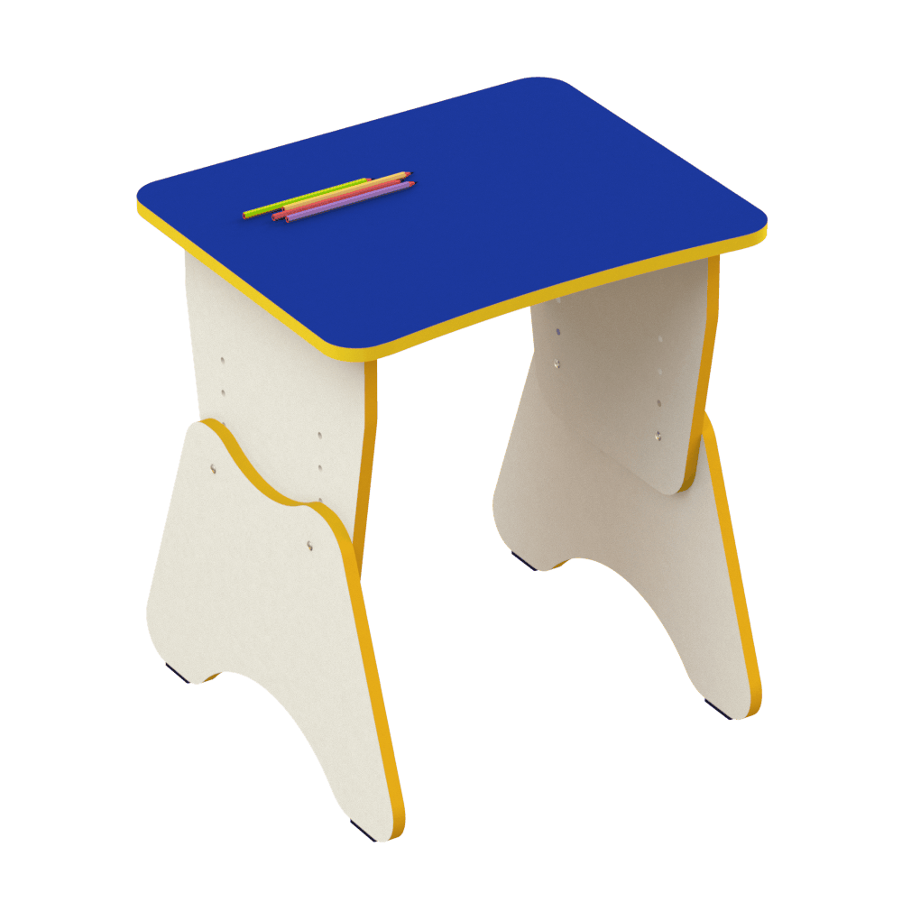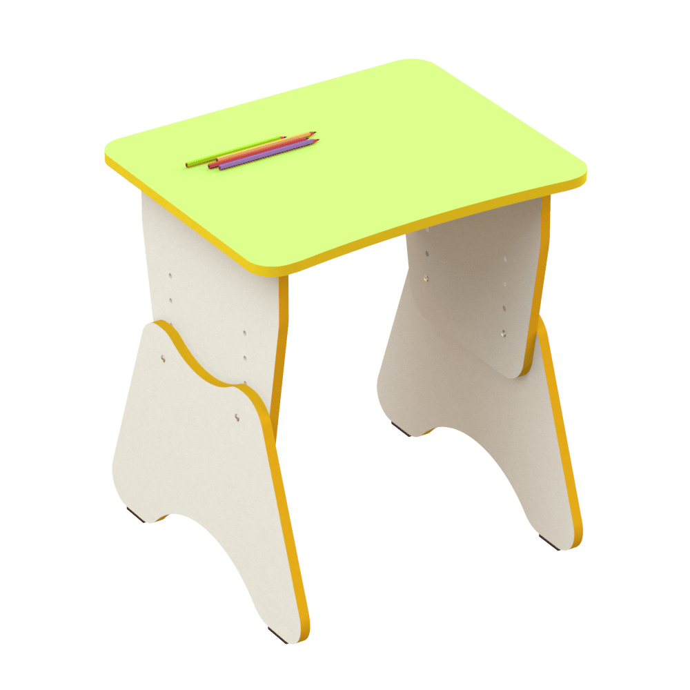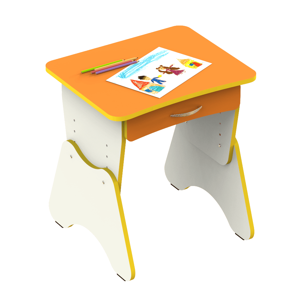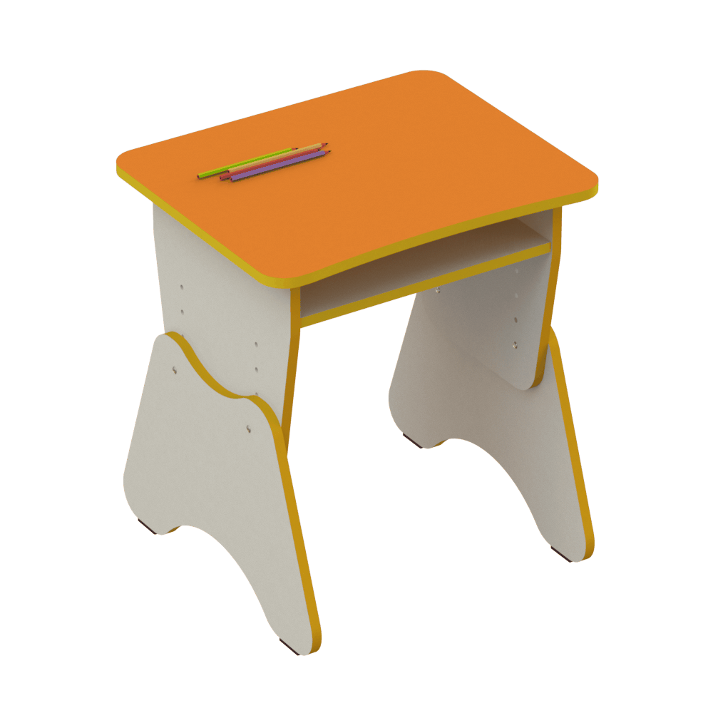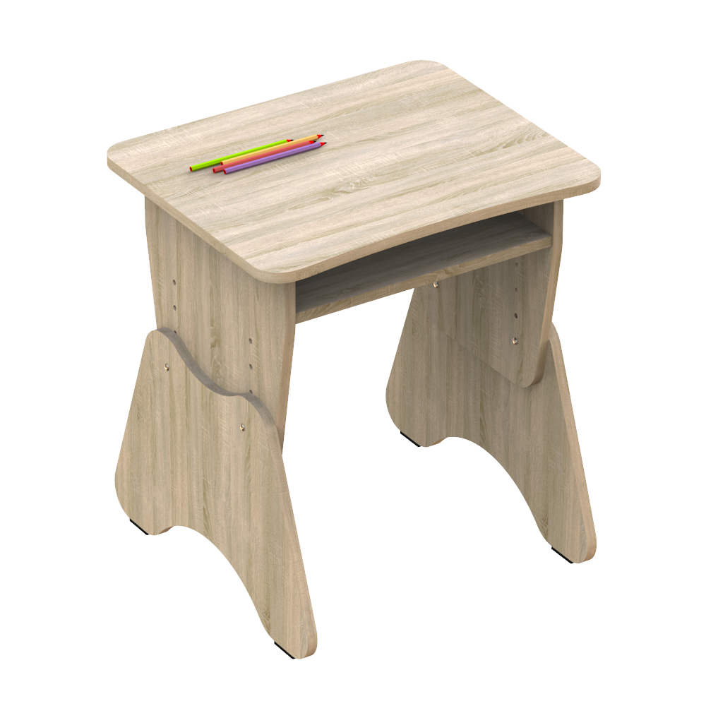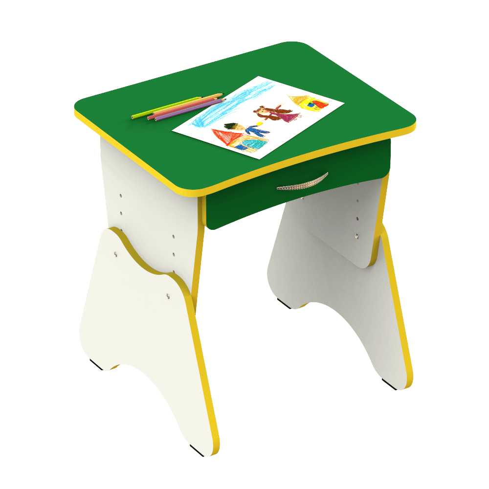 Удобный, прочный детский столик с регулировкой высоты, который предназначен для использования в дошкольных учебных заведениях. Модель изготовлена из ламинированной ДСП класса эмиссии Е1, снизу опирается на пластиковые опоры, которые предотвращают повреждение поверхности пола. Благодаря своему стильному дизайну этот детский столик отлично подходит для самых разнообразных интерьеров.Характеристики изделияДСП, из которой изготовлена данная модель, имеет толщину 16 мм и покрыта с торцов пластиковой кромкой толщиной 0,5 мм. Торцы столешницы обработаны кромкой из ПВХ толщиной 1 мм. Все использованные для производства товара материалы является безопасными для детей и разрешёнными к использованию для производства мебели, с которой они контактируют. Столешница имеет габаритные размеры 550х450 мм.Высоту стола можно регулировать по четырём ростовым группам ? нулевой, первой, второй и третьей соответственно. Высота столешницы будет следующей, в зависимости от роста ребёнка:400 мм для детей ростом 90?100 см,460 мм для детей ростом 100?115 см,520 мм для детей ростом 115?130 см,580 мм для детей ростом свыше 130 см.Вес собранного изделия составляет 10 кг. Высота столешницы регулируется без помощи специалистов, самостоятельно разобраться в конструкции стола и регулировке высоты может любой взрослый человек.Преимущества и особенности моделиКлиенты, которым необходимо купить детский столик, могут смело отдавать предпочтение этой простой и универсальной модели. Наши заказчики могут выбрать один из более чем десяти вариантов расцветки этого изделия.Также покупатели могут выбрать столик для детей с дополнительными опциями ? полочкой и небольшим ящиком, или заказать детский столик без каких-либо модификаций. Срок изготовления необходимой Вам партии этого изделия на заказ, при отсутствии на складе, зависит от текущей загрузки производства и уточняется нашими менеджерами при обработке Вашего заказа.Гарантийный срок эксплуатации изделия составляет 12 месяцев.