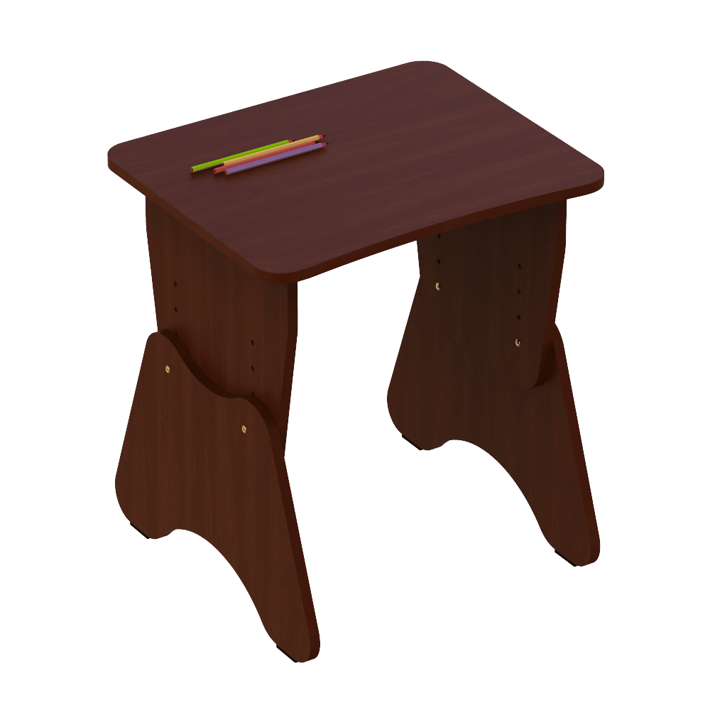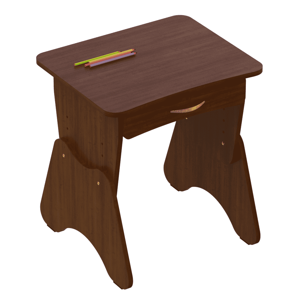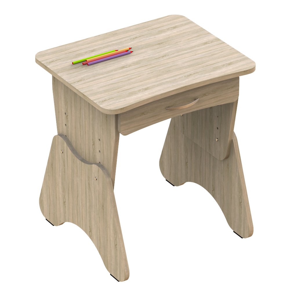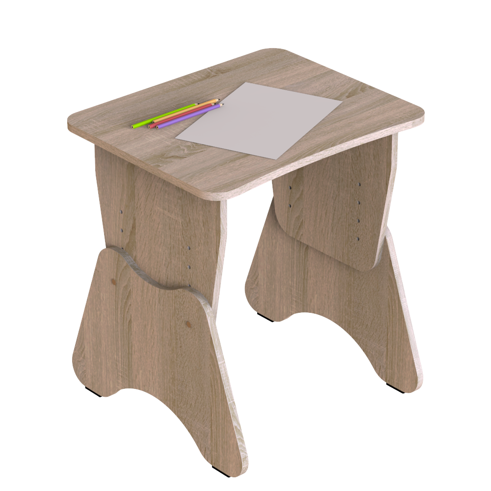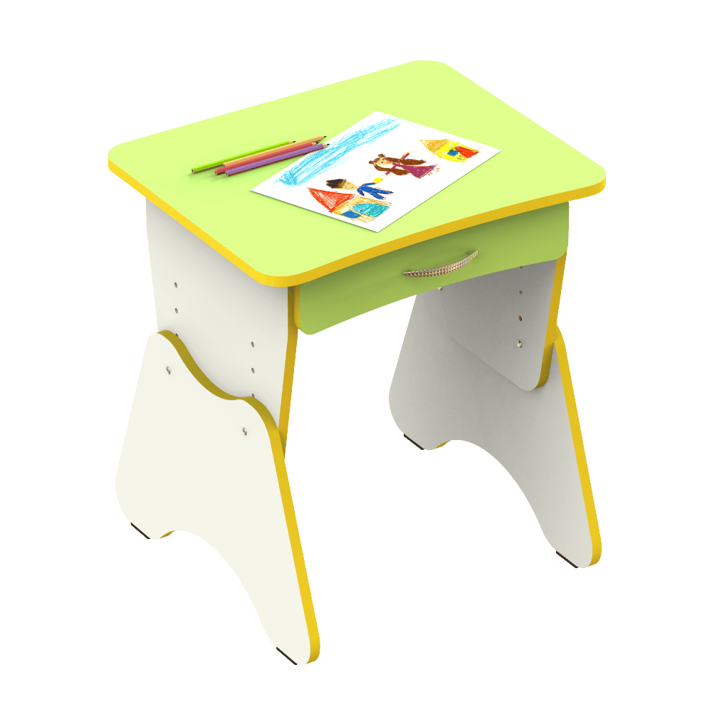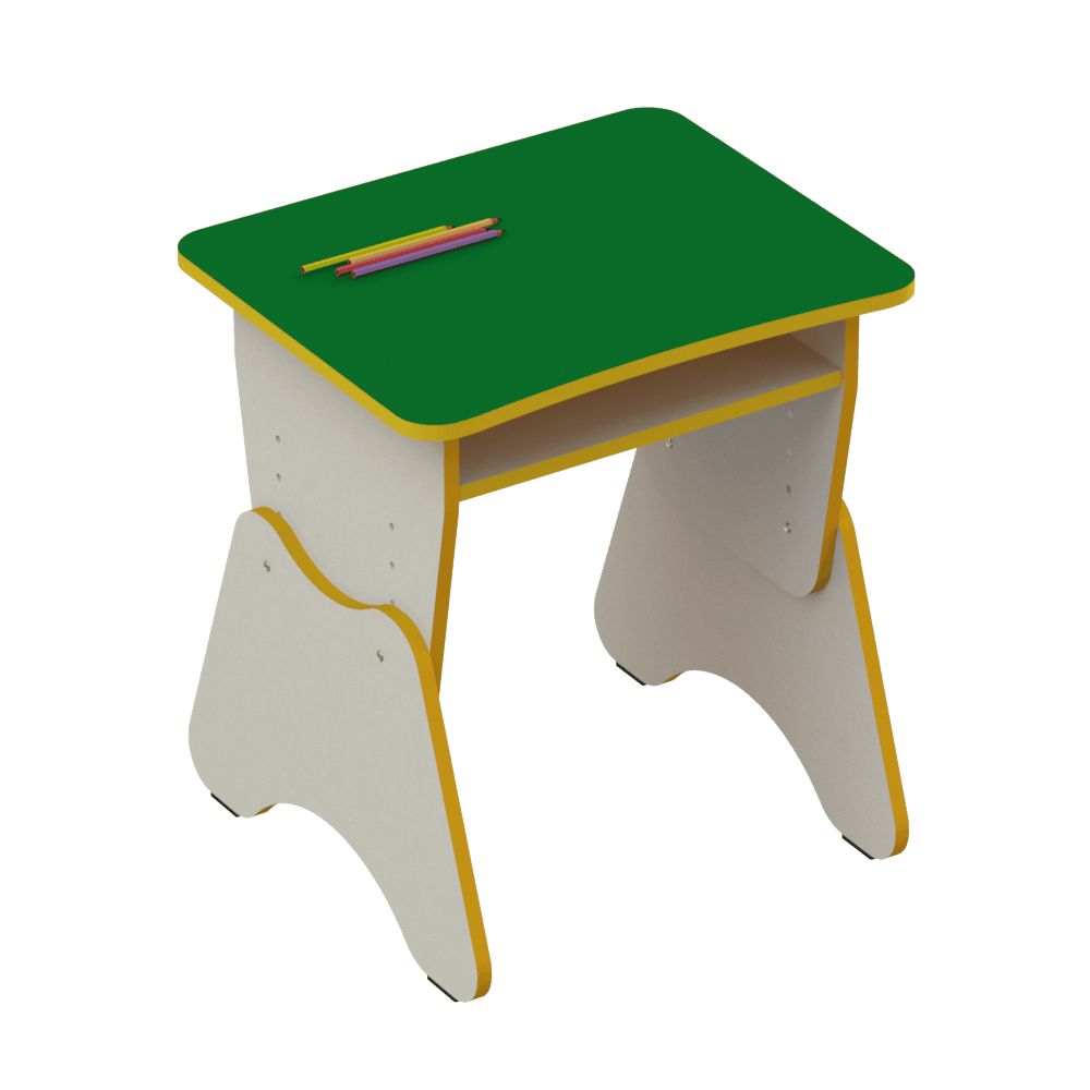 Удобный, прочный детский столик с регулировкой высоты, который предназначен для использования в дошкольных учебных заведениях. Модель изготовлена из ламинированной ДСП класса эмиссии Е1, снизу опирается на пластиковые опоры, которые предотвращают повреждение поверхности пола. Благодаря своему стильному дизайну этот детский столик отлично подходит для самых разнообразных интерьеров.Характеристики изделияДСП, из которой изготовлена данная модель, имеет толщину 16 мм и покрыта с торцов пластиковой кромкой толщиной 0,5 мм. Торцы столешницы обработаны кромкой из ПВХ толщиной 1 мм. Все использованные для производства товара материалы является безопасными для детей и разрешёнными к использованию для производства мебели, с которой они контактируют. Столешница имеет габаритные размеры 550х450 мм.Высоту стола можно регулировать по четырём ростовым группам ? нулевой, первой, второй и третьей соответственно. Высота столешницы будет следующей, в зависимости от роста ребёнка:400 мм для детей ростом 90?100 см,460 мм для детей ростом 100?115 см,520 мм для детей ростом 115?130 см,580 мм для детей ростом свыше 130 см.Вес собранного изделия составляет 10 кг. Высота столешницы регулируется без помощи специалистов, самостоятельно разобраться в конструкции стола и регулировке высоты может любой взрослый человек.Преимущества и особенности моделиКлиенты, которым необходимо купить детский столик, могут смело отдавать предпочтение этой простой и универсальной модели. Наши заказчики могут выбрать один из более чем десяти вариантов расцветки этого изделия.Также покупатели могут выбрать столик для детей с дополнительными опциями ? полочкой и небольшим ящиком, или заказать детский столик без каких-либо модификаций. Срок изготовления необходимой Вам партии этого изделия на заказ, при отсутствии на складе, зависит от текущей загрузки производства и уточняется нашими менеджерами при обработке Вашего заказа.Гарантийный срок эксплуатации изделия составляет 12 месяцев.