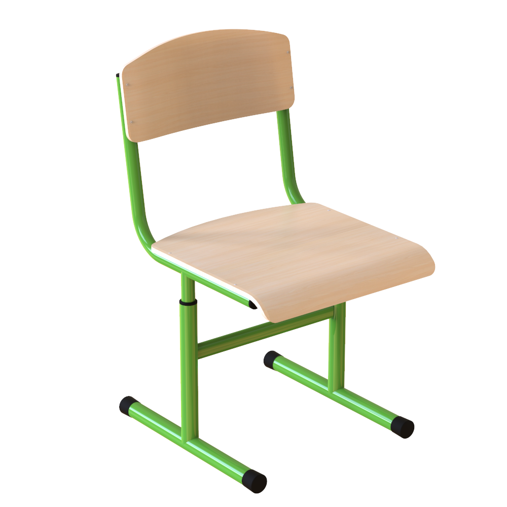 Стул, изготовленный на основе металлической трубы круглого сечения, Т-образной формы. Его высота регулируется по 4, 5 и 6 ростовым группам.Габаритные размеры изделия составляют 391х441х740...820 мм, высота ? 380?460 мм.Размеры спинки стула составляют 380х200 мм, размеры сиденья ? 380х350 мм. Масса полностью собранной конструкции ? 4,57 кг.Материал, из которого сделаны сиденье и спинка стула ? гнутоклееная фанера, толщиной 8?9 мм. Изготовленные из фанеры части конструкции покрыты безопасным, не имеющим специфического запаха бесцветным лаком на водной основе.Чтобы не оставить ребёнку возможности получить ушиб или повредить одежду, зацепившись за острый угол, все углы сидения и спинки закруглены.Металлический каркас этой модели сделан из круглой трубы диаметром 32 и 25 мм, и плоскоовальной трубы размером 30х15 мм. Толщина стенок металлических труб составляет 1,2 мм. Сидения и спинка соединяются с металлическим каркасом при помощи гаек и винтов.Высота изделия регулируется при помощи винтов и отверстий, расположенных по бокам каркаса и ножек. В месте соединения этих элементов расположена переходная втулка, сделанная из пластика.Окончания металлических труб, из которых изготовлен каркас стула, закрыты пластиковыми наконечниками, которые позволяют избежать повреждения одежды, поверхности пола и получения ссадин и ушибов учащимися.