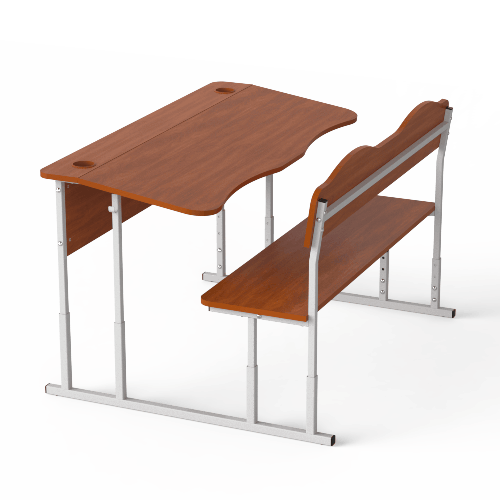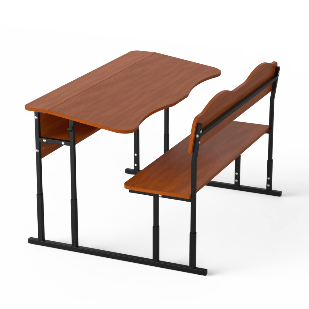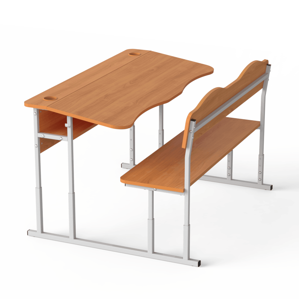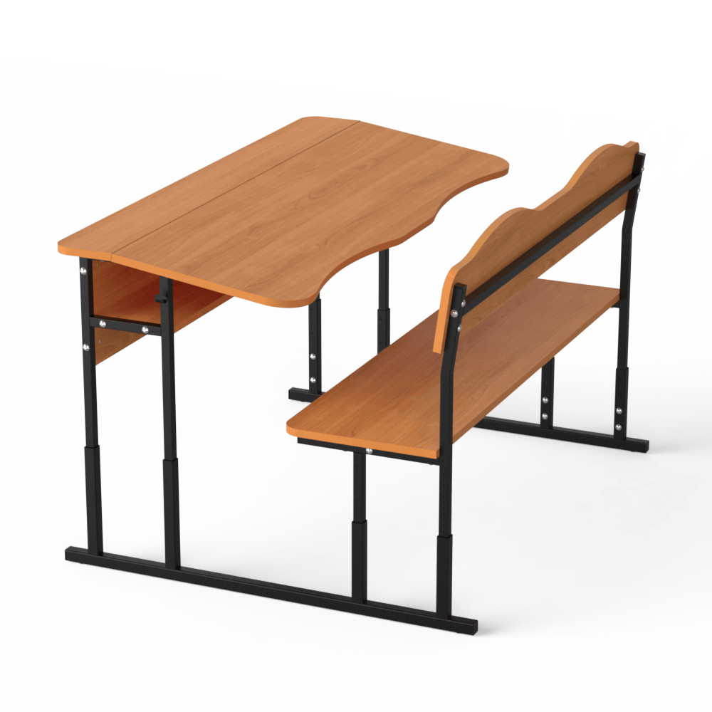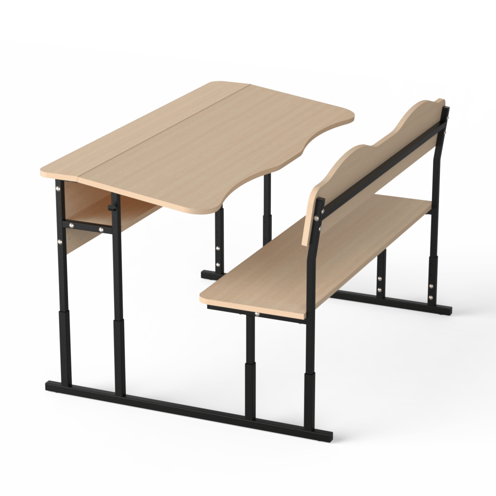 Прочная и удобная двухместная регулируемая школьная парта, которая оснащена двумя эргономичными вырезами, расположенными со стороны учеников. Материалы, из которых сделана эта парта, безопасны и разрешены действующим санитарным законодательством для использования в учебных заведениях.Эта двухместная парта соответствует требованиям к школьной мебели, перечисленным в Методических рекомендациях по организации образовательного пространства Новой украинской школы (Приложение к приказу МОН Украины от 23.03.2018 №283). Характеристики моделиоснова конструкции ? металлический каркас, сделанный из труб квадратного сечения, размером 20х20 и 25х25 мм, с толщиной стенки 1,2 мм,передний экран, столешница, спинка лавки и её сидение изготовлены из ЛДСП толщиной 16 мм, торцы которой покрыты кромкой такого же цвета. Класс эмиссии материала ? Е1,все окончания металлического каркаса имеют пластиковые заглушки,каркас покрыт стойкой порошковой эмалью, которая не имеет специфического запаха, и надёжно защищает металл от коррозии.Преимущества и особенностиизделие соответствует санитарно-гигиеническим нормам, не имеет посторонних запахов,на матовой поверхности столешницы не возникает бликов,со стороны сидящих учеников на столешнице имеются плавные вырезы, которые позволяют детям сохранить хорошую осанку,механизм регулирования позволяет изменять высоту столешницы, поднимая её на 640, 700 и 760 мм или на 380, 420, 460 мм, в зависимости от выбранной заказчиком модели,цвет ЛДСП, как и цвет краски, которой окрашен металлический каркас, заказчик может выбрать из предложенных нами вариантов,по желанию заказчика, парта может иметь полку из ЛДСП, расположенную под столешницей, и вырезы под стаканчики для канцелярских изделий.Эта модель ? хороший вариант для тех, кто хочет купить удобную и функциональную мебель для школы.Оформляйте заказ на двухместную парту ?Монолит? на нашем сайте, или свяжитесь с нашими менеджерами, которые ответят на все Ваши вопросы!