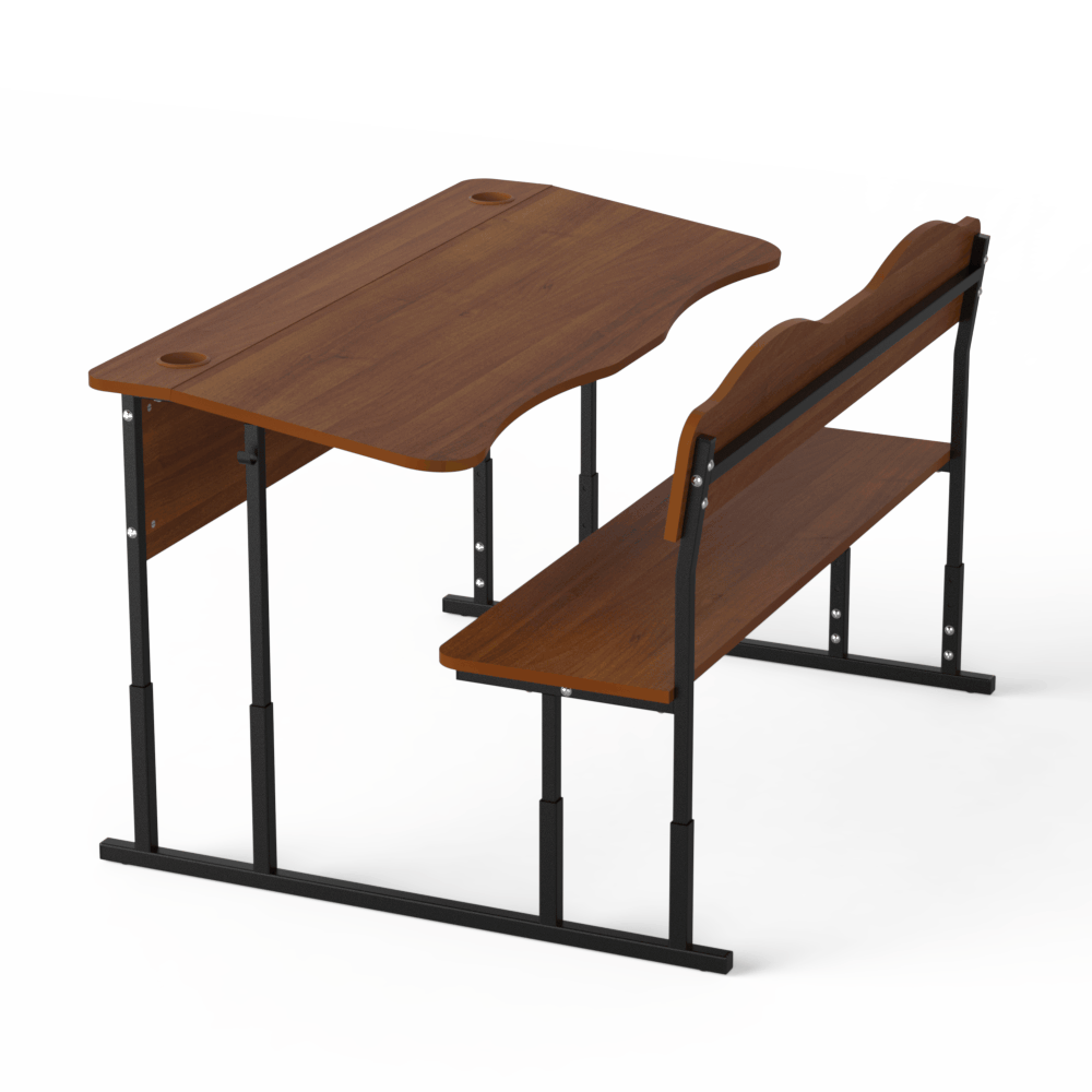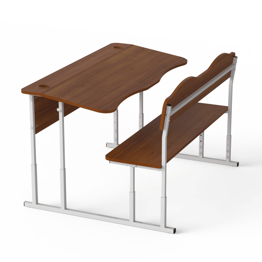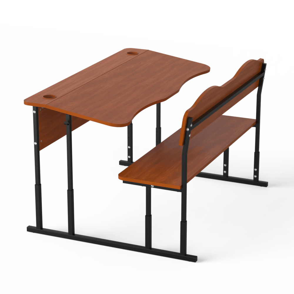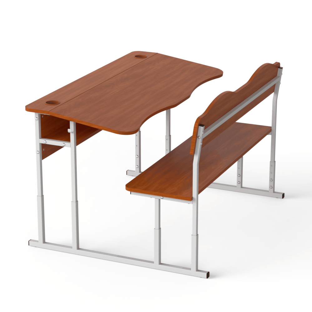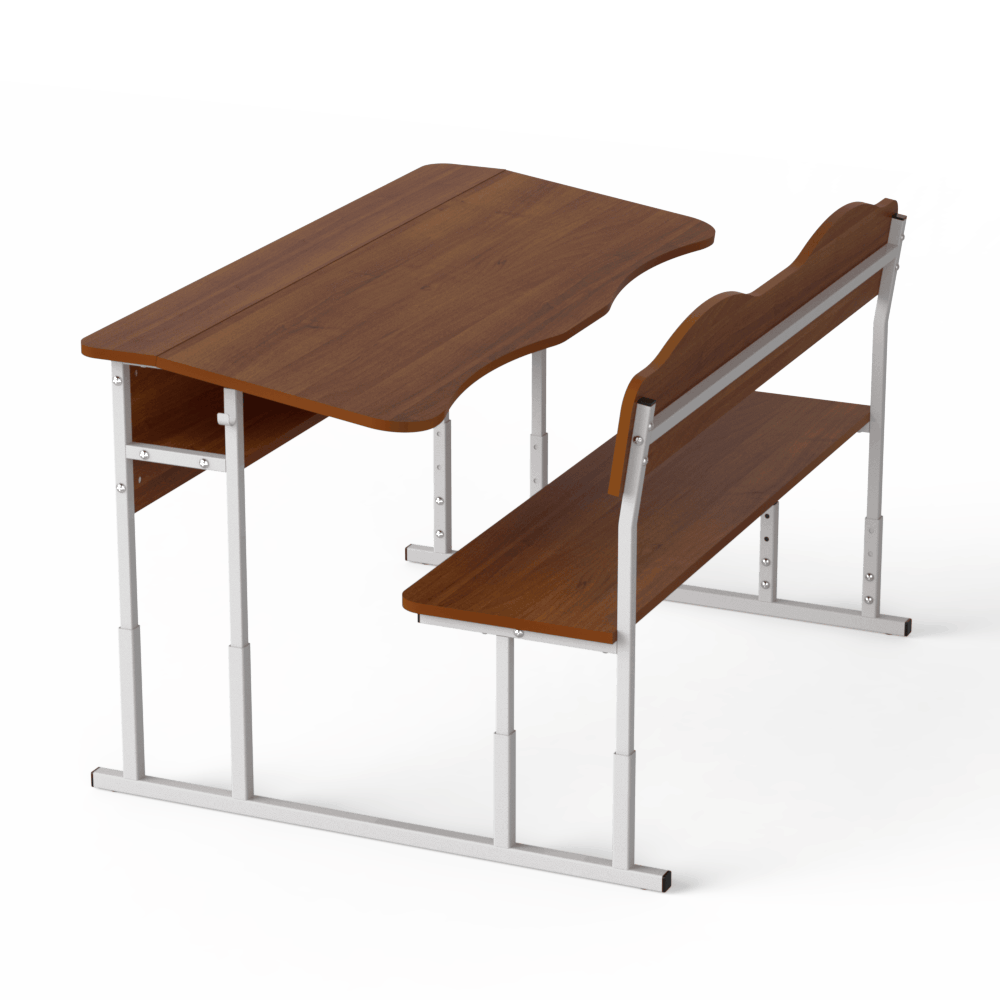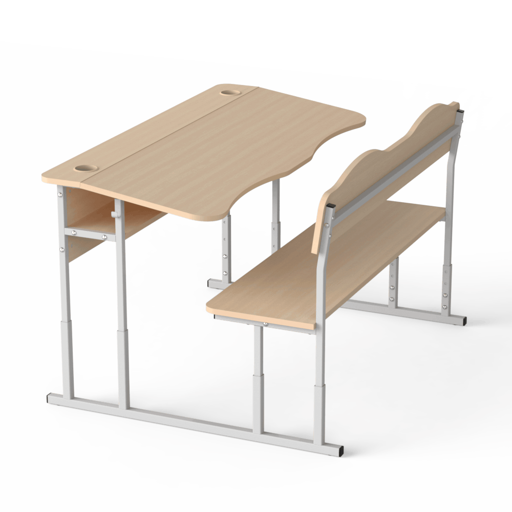 Прочная и удобная двухместная регулируемая школьная парта, которая оснащена двумя эргономичными вырезами, расположенными со стороны учеников. Материалы, из которых сделана эта парта, безопасны и разрешены действующим санитарным законодательством для использования в учебных заведениях.Эта двухместная парта соответствует требованиям к школьной мебели, перечисленным в Методических рекомендациях по организации образовательного пространства Новой украинской школы (Приложение к приказу МОН Украины от 23.03.2018 №283). Характеристики моделиоснова конструкции ? металлический каркас, сделанный из труб квадратного сечения, размером 20х20 и 25х25 мм, с толщиной стенки 1,2 мм,передний экран, столешница, спинка лавки и её сидение изготовлены из ЛДСП толщиной 16 мм, торцы которой покрыты кромкой такого же цвета. Класс эмиссии материала ? Е1,все окончания металлического каркаса имеют пластиковые заглушки,каркас покрыт стойкой порошковой эмалью, которая не имеет специфического запаха, и надёжно защищает металл от коррозии.Преимущества и особенностиизделие соответствует санитарно-гигиеническим нормам, не имеет посторонних запахов,на матовой поверхности столешницы не возникает бликов,со стороны сидящих учеников на столешнице имеются плавные вырезы, которые позволяют детям сохранить хорошую осанку,механизм регулирования позволяет изменять высоту столешницы, поднимая её на 640, 700 и 760 мм или на 380, 420, 460 мм, в зависимости от выбранной заказчиком модели,цвет ЛДСП, как и цвет краски, которой окрашен металлический каркас, заказчик может выбрать из предложенных нами вариантов,по желанию заказчика, парта может иметь полку из ЛДСП, расположенную под столешницей, и вырезы под стаканчики для канцелярских изделий.Эта модель ? хороший вариант для тех, кто хочет купить удобную и функциональную мебель для школы.Оформляйте заказ на двухместную парту ?Монолит? на нашем сайте, или свяжитесь с нашими менеджерами, которые ответят на все Ваши вопросы!