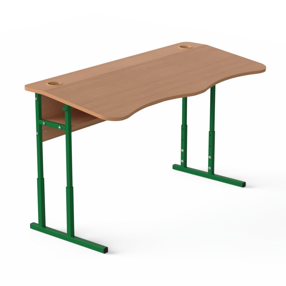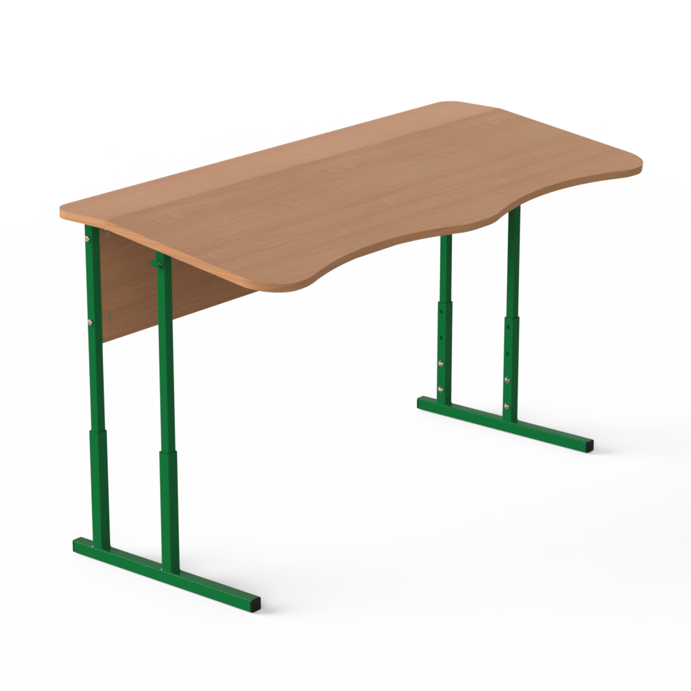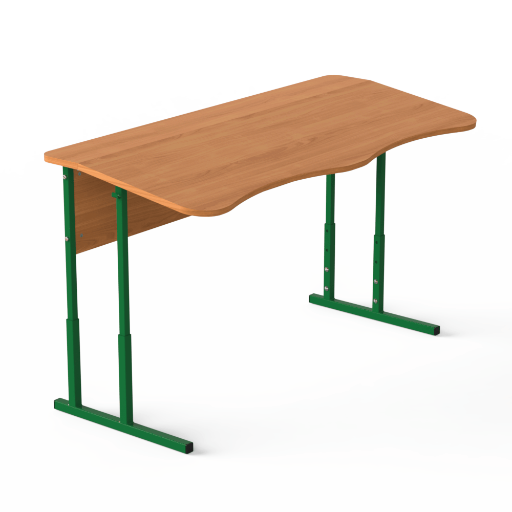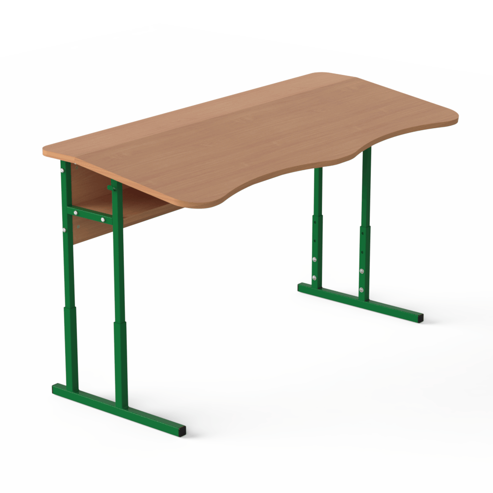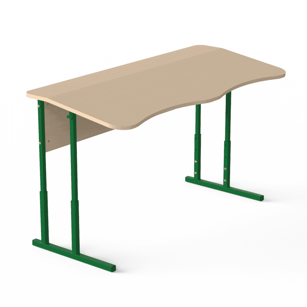 Модель, которая обладает изысканным и стильным минималистичным дизайном, изготовлена из материалов высокого качества, имеющая ряд преимуществ перед похожими изделиями. Мы советуем купить аудиторный стол с регулировкой высоты столешницы и антисколиозными вырезами всем, кто по-настоящему обеспокоен здоровьем и благополучием учеников.Преимущества антисколиозного двухместного столаДва основных преимущества этой модели:форма столешницы, которая имеет антисколиозные вырезы, позволяющие сохранить осанку, и скругленные углы, предотвращающие травмы и повреждения,возможность регулировать высоту стола по трём ростовым группам.Округлая форма столешницы и вырезы, расположенные со стороны учеников, делают стол безопаснее и даёт возможность позаботиться о здоровье учеников. Столешница немного наклонена в сторону ученика, что позволяет ребёнку, сидящему за таким столом, расположиться ещё удобнее.Особенности моделиВысота столешницы от пола регулируется для четвёртой, пятой и шестой ростовых групп, поднимаясь на 640, 700 и 760 мм соответственно. Таким образом, стол, приобретённый для учеников четвёртого класса, может ?подрастать? вместе с ними по мере перехода из класса в класс, и сохранять удобную для посадки учеников высоту.Изготавливая двухместный антисколиозный стол, регулируемый по высоте, мы использовали только качественные материалы, разрешённые действующим украинским законодательством. Все они имеют соответствующие сертификаты, выданные контролирующими санитарными органами.ДСП, из которой изготовлена столешница, относится к материалу класса эмиссии формальдегида Е1. Края ДСП покрыты кромкой из ПВХ такого же цвета, что и поверхность ДСП.Если Вы заботитесь о здоровье учеников и хотите заказать безопасную и удобную мебель для учебного кабинета, оформляйте заказ на эту модель школьного стола!
