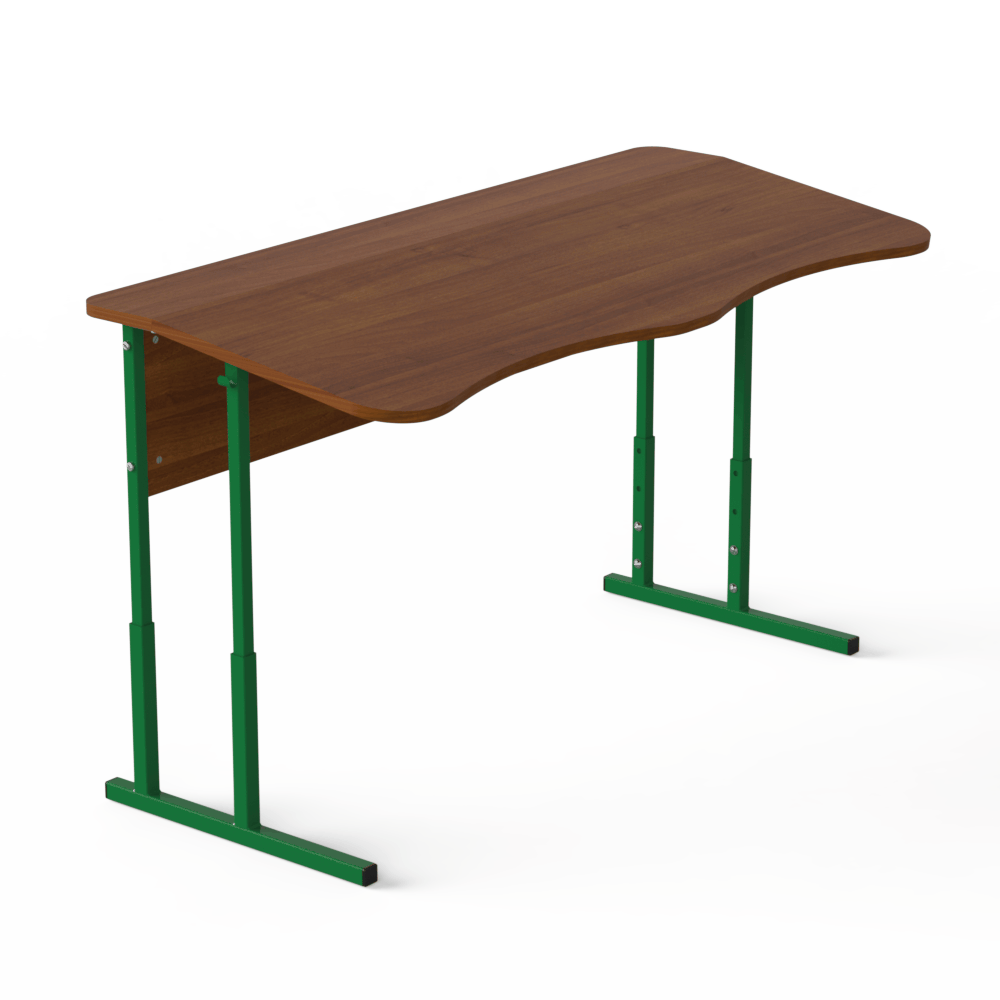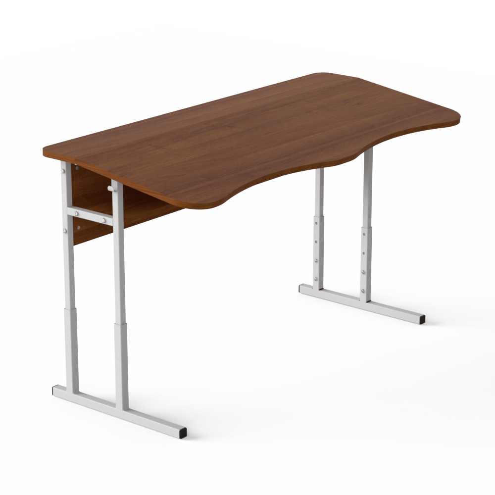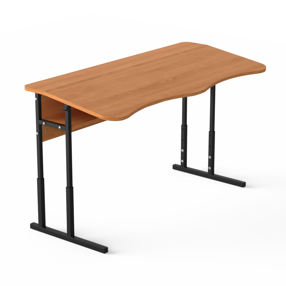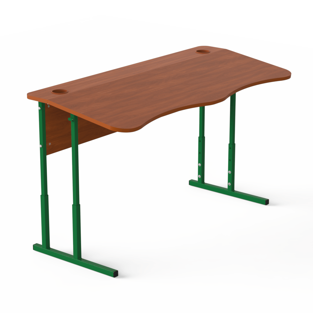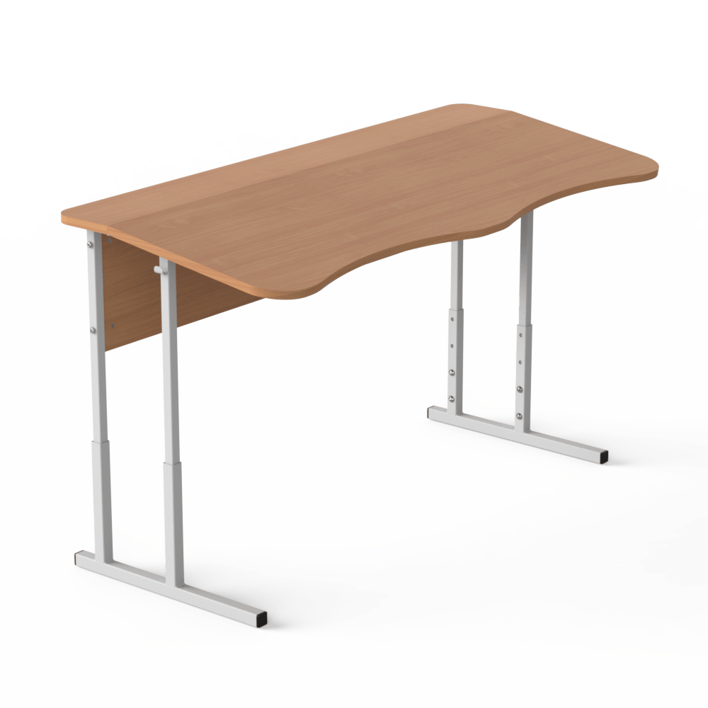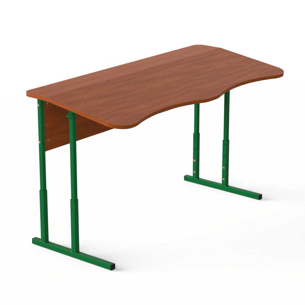 Модель, которая обладает изысканным и стильным минималистичным дизайном, изготовлена из материалов высокого качества, имеющая ряд преимуществ перед похожими изделиями. Мы советуем купить аудиторный стол с регулировкой высоты столешницы и антисколиозными вырезами всем, кто по-настоящему обеспокоен здоровьем и благополучием учеников.Преимущества антисколиозного двухместного столаДва основных преимущества этой модели:форма столешницы, которая имеет антисколиозные вырезы, позволяющие сохранить осанку, и скругленные углы, предотвращающие травмы и повреждения,возможность регулировать высоту стола по трём ростовым группам.Округлая форма столешницы и вырезы, расположенные со стороны учеников, делают стол безопаснее и даёт возможность позаботиться о здоровье учеников. Столешница немного наклонена в сторону ученика, что позволяет ребёнку, сидящему за таким столом, расположиться ещё удобнее.Особенности моделиВысота столешницы от пола регулируется для четвёртой, пятой и шестой ростовых групп, поднимаясь на 640, 700 и 760 мм соответственно. Таким образом, стол, приобретённый для учеников четвёртого класса, может ?подрастать? вместе с ними по мере перехода из класса в класс, и сохранять удобную для посадки учеников высоту.Изготавливая двухместный антисколиозный стол, регулируемый по высоте, мы использовали только качественные материалы, разрешённые действующим украинским законодательством. Все они имеют соответствующие сертификаты, выданные контролирующими санитарными органами.ДСП, из которой изготовлена столешница, относится к материалу класса эмиссии формальдегида Е1. Края ДСП покрыты кромкой из ПВХ такого же цвета, что и поверхность ДСП.Если Вы заботитесь о здоровье учеников и хотите заказать безопасную и удобную мебель для учебного кабинета, оформляйте заказ на эту модель школьного стола!