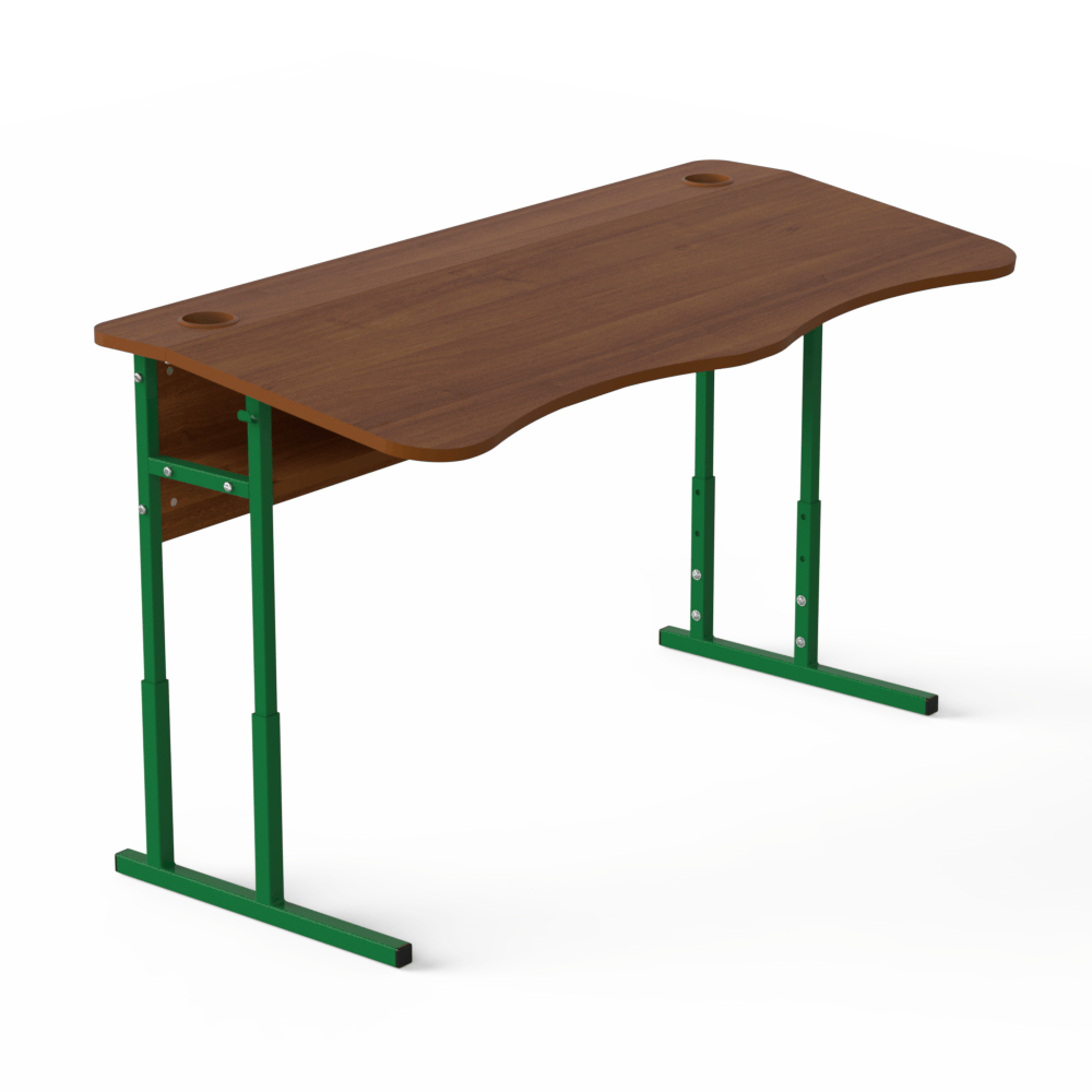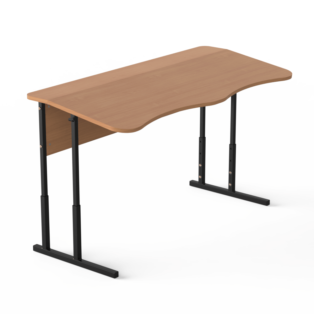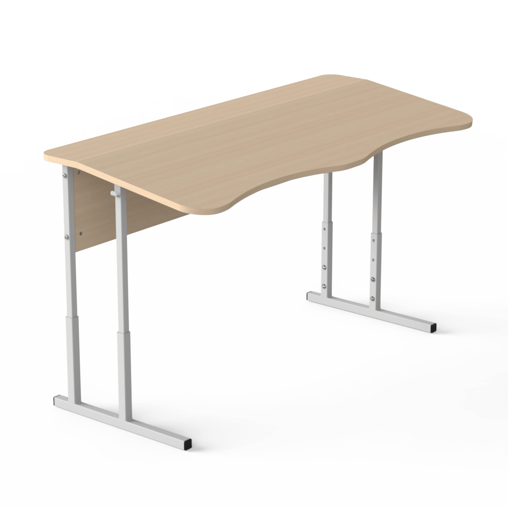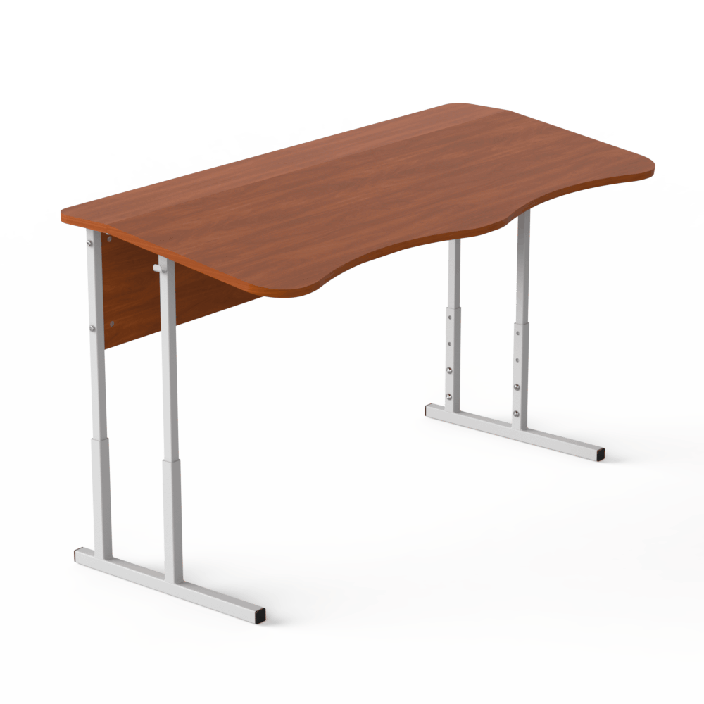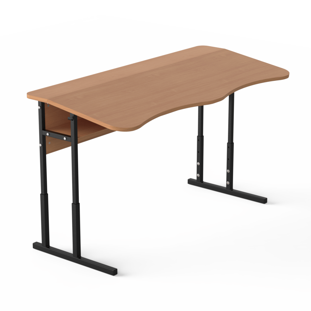 Модель, которая обладает изысканным и стильным минималистичным дизайном, изготовлена из материалов высокого качества, имеющая ряд преимуществ перед похожими изделиями. Мы советуем купить аудиторный стол с регулировкой высоты столешницы и антисколиозными вырезами всем, кто по-настоящему обеспокоен здоровьем и благополучием учеников.Преимущества антисколиозного двухместного столаДва основных преимущества этой модели:форма столешницы, которая имеет антисколиозные вырезы, позволяющие сохранить осанку, и скругленные углы, предотвращающие травмы и повреждения,возможность регулировать высоту стола по трём ростовым группам.Округлая форма столешницы и вырезы, расположенные со стороны учеников, делают стол безопаснее и даёт возможность позаботиться о здоровье учеников. Столешница немного наклонена в сторону ученика, что позволяет ребёнку, сидящему за таким столом, расположиться ещё удобнее.Особенности моделиВысота столешницы от пола регулируется для четвёртой, пятой и шестой ростовых групп, поднимаясь на 640, 700 и 760 мм соответственно. Таким образом, стол, приобретённый для учеников четвёртого класса, может ?подрастать? вместе с ними по мере перехода из класса в класс, и сохранять удобную для посадки учеников высоту.Изготавливая двухместный антисколиозный стол, регулируемый по высоте, мы использовали только качественные материалы, разрешённые действующим украинским законодательством. Все они имеют соответствующие сертификаты, выданные контролирующими санитарными органами.ДСП, из которой изготовлена столешница, относится к материалу класса эмиссии формальдегида Е1. Края ДСП покрыты кромкой из ПВХ такого же цвета, что и поверхность ДСП.Если Вы заботитесь о здоровье учеников и хотите заказать безопасную и удобную мебель для учебного кабинета, оформляйте заказ на эту модель школьного стола!