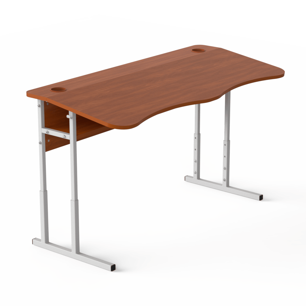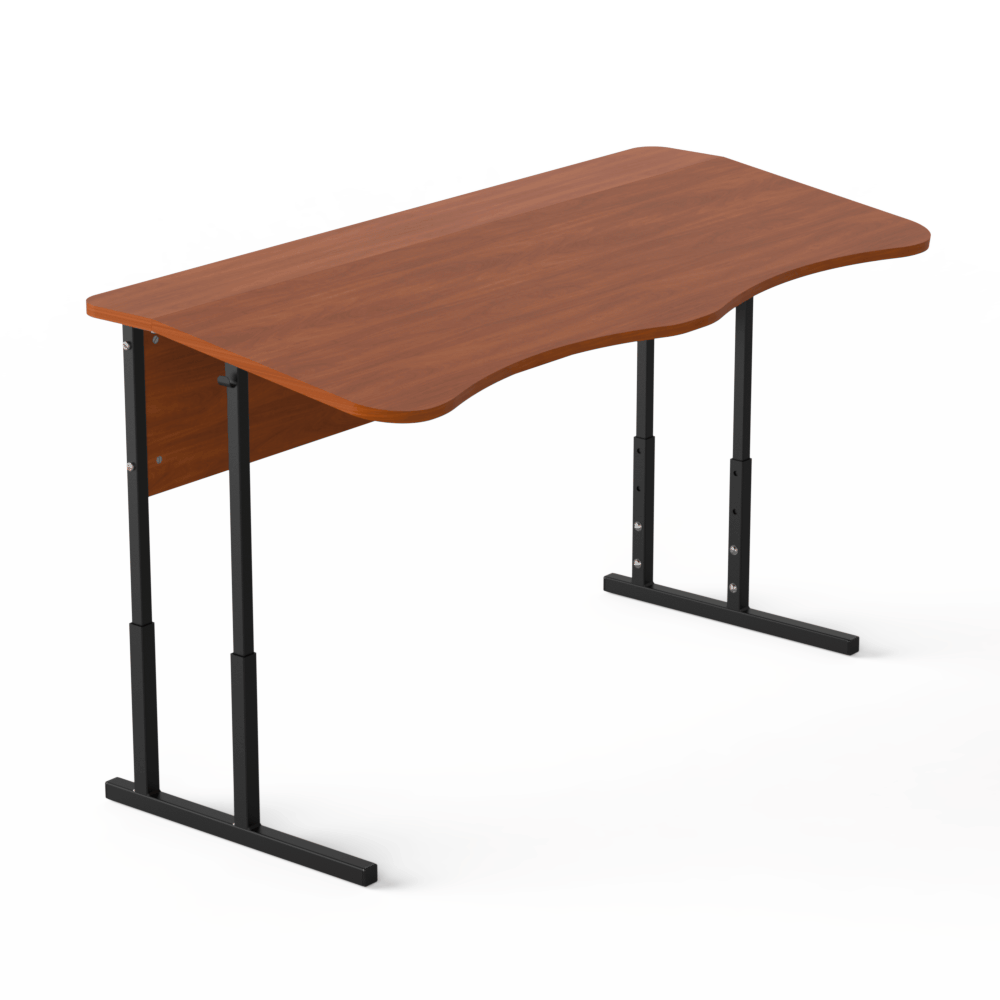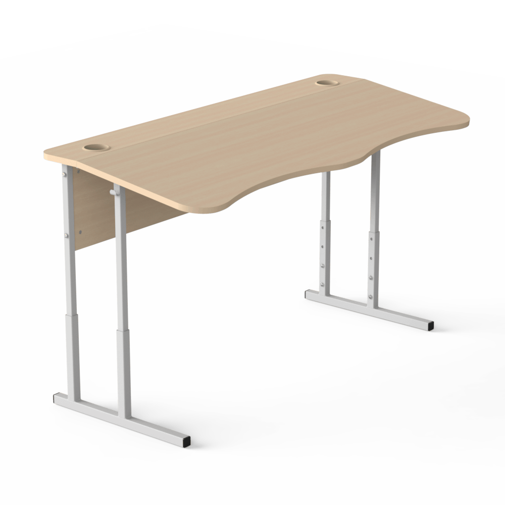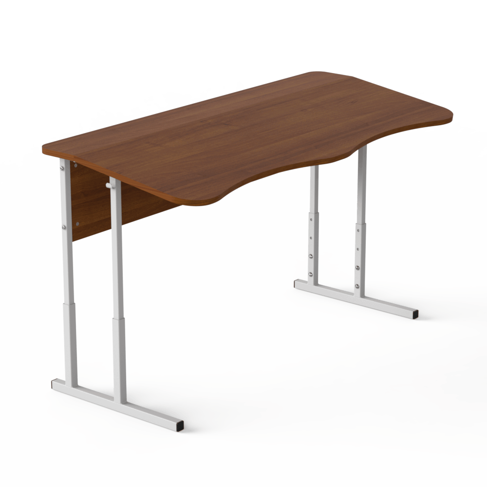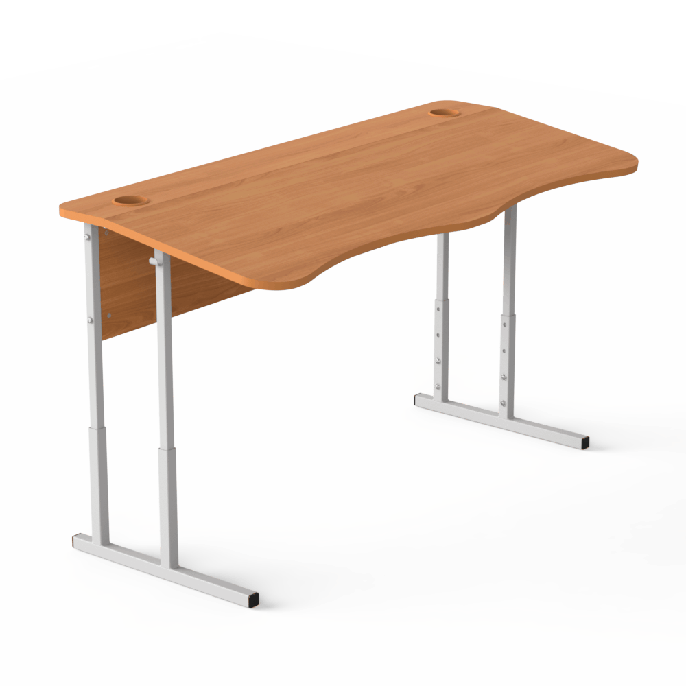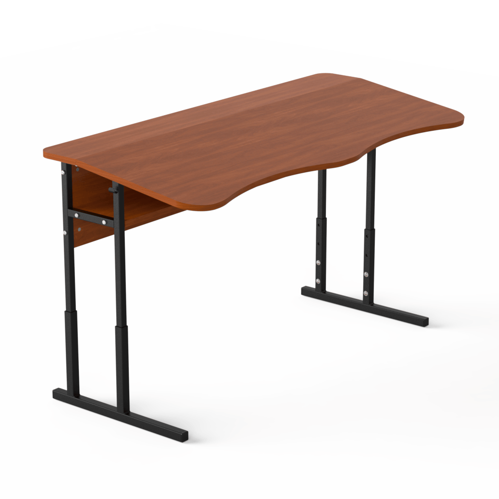 Модель, которая обладает изысканным и стильным минималистичным дизайном, изготовлена из материалов высокого качества, имеющая ряд преимуществ перед похожими изделиями. Мы советуем купить аудиторный стол с регулировкой высоты столешницы и антисколиозными вырезами всем, кто по-настоящему обеспокоен здоровьем и благополучием учеников.Преимущества антисколиозного двухместного столаДва основных преимущества этой модели:форма столешницы, которая имеет антисколиозные вырезы, позволяющие сохранить осанку, и скругленные углы, предотвращающие травмы и повреждения,возможность регулировать высоту стола по трём ростовым группам.Округлая форма столешницы и вырезы, расположенные со стороны учеников, делают стол безопаснее и даёт возможность позаботиться о здоровье учеников. Столешница немного наклонена в сторону ученика, что позволяет ребёнку, сидящему за таким столом, расположиться ещё удобнее.Особенности моделиВысота столешницы от пола регулируется для четвёртой, пятой и шестой ростовых групп, поднимаясь на 640, 700 и 760 мм соответственно. Таким образом, стол, приобретённый для учеников четвёртого класса, может ?подрастать? вместе с ними по мере перехода из класса в класс, и сохранять удобную для посадки учеников высоту.Изготавливая двухместный антисколиозный стол, регулируемый по высоте, мы использовали только качественные материалы, разрешённые действующим украинским законодательством. Все они имеют соответствующие сертификаты, выданные контролирующими санитарными органами.ДСП, из которой изготовлена столешница, относится к материалу класса эмиссии формальдегида Е1. Края ДСП покрыты кромкой из ПВХ такого же цвета, что и поверхность ДСП.Если Вы заботитесь о здоровье учеников и хотите заказать безопасную и удобную мебель для учебного кабинета, оформляйте заказ на эту модель школьного стола!